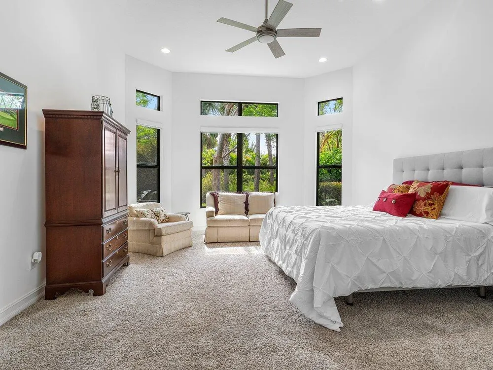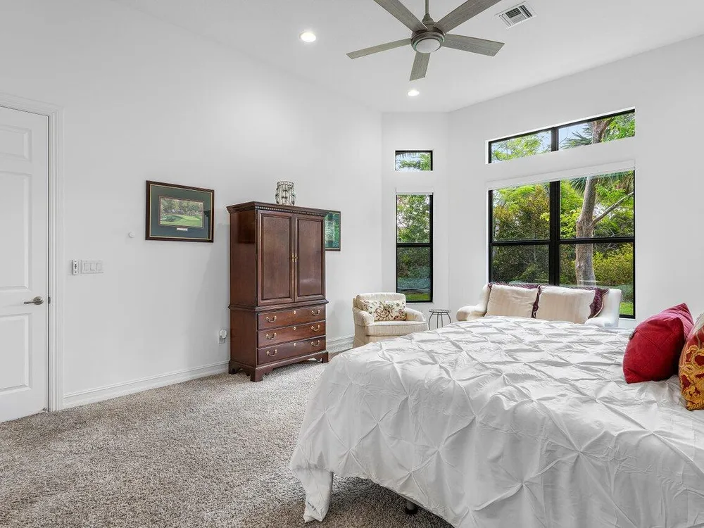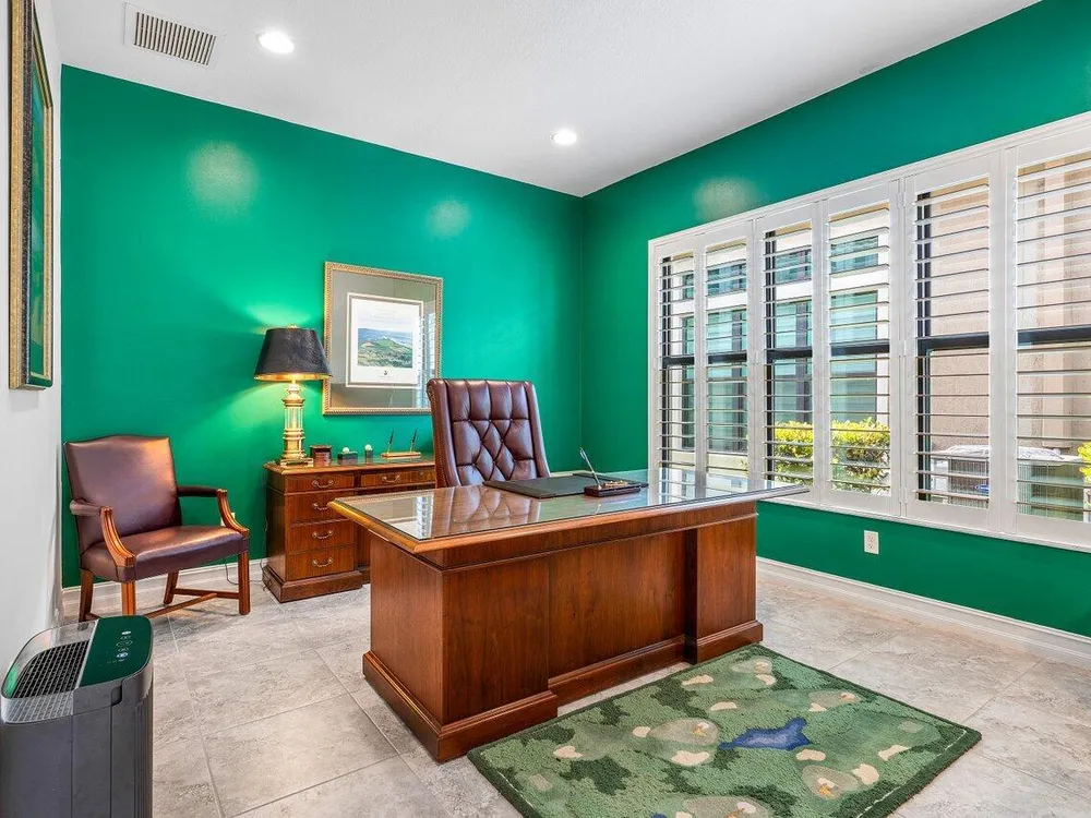 - Entrance Foyer, Kitchen Island, Pantry, Split Bedrooms, High Ceilings, Walk-In Closet(s), Home Office, Blinds, Plantation Shutters, Dual Sinks