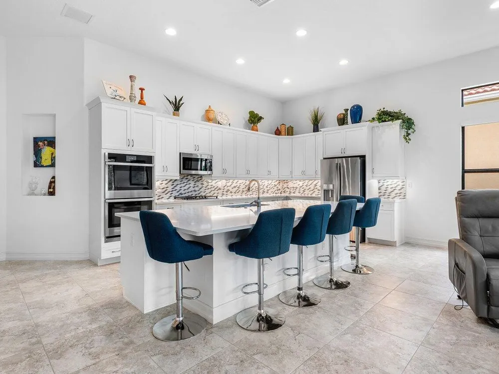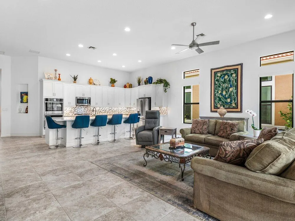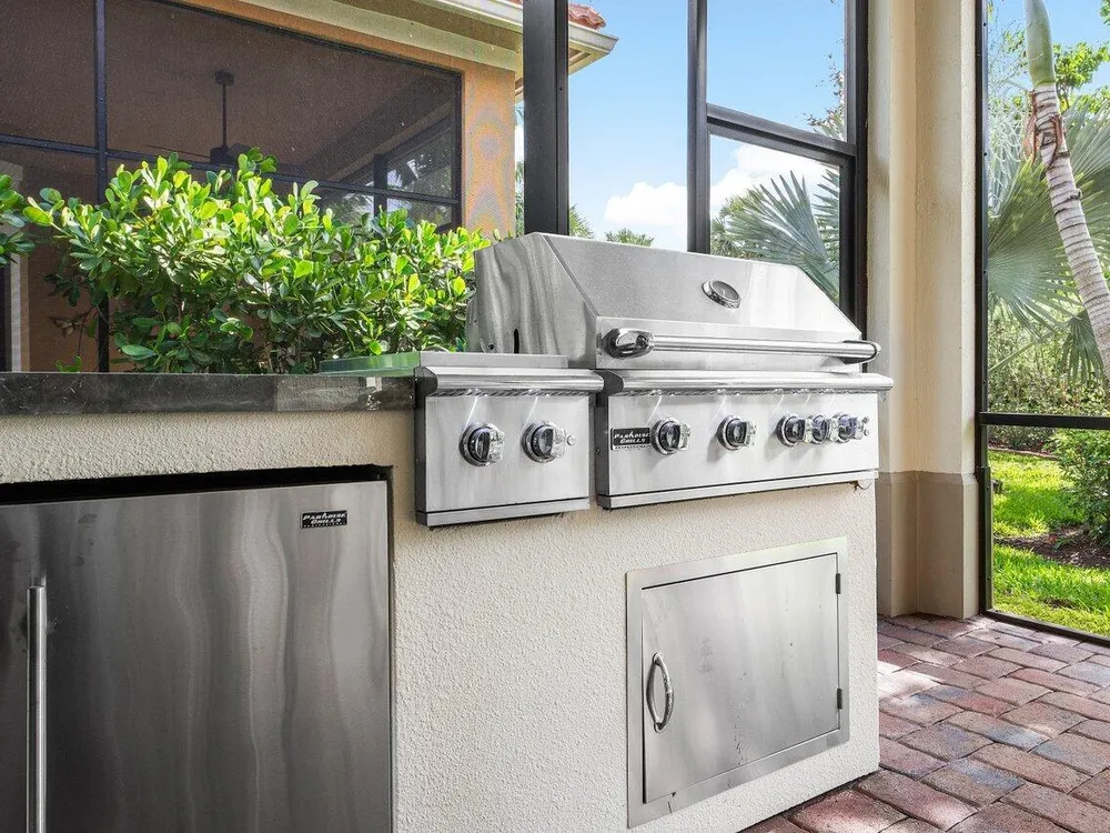 Welcome to Four Seasons at Parkland, South Florida's premier 55+ gated community, where elegance meets an active lifestyle. This stunning Flora model offers 2,610 sq. ft. of thoughtfully designed living space, featuring 2 bedrooms, 2.5 bathrooms, a versatile bonus room, and a perfect blend of indoor comfort and outdoor enjoyment.The heart of the home is the spacious chef's kitchen, complete with premium appliances, a large center island, and generous cabinetry--ideal for entertaining and everyday living. The open-concept design flows effortlessly into the great room and out through expansive glass doors to the screened-in lanai.Step outside and experience your own private outdoor oasis featuring a fully equipped summer kitchen (see more)