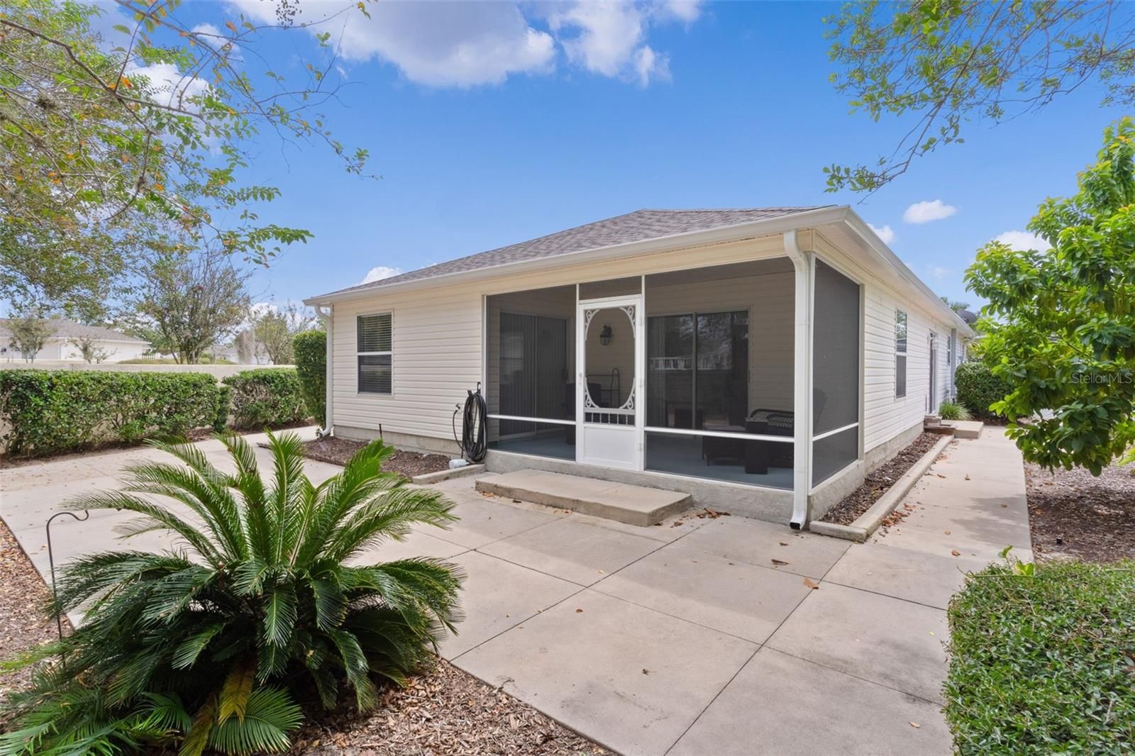 ~NO BOND~ ~2020 ROOF~ ~2023 HVAC~ ~2022 DEFENDER HOT WATER HEATER~ ~RARE VILLA WITH GATE ON BOTH SIDES~ Welcome to this Charming 2/2 MARATHON COURTYARD VILLA in the Village of SPRINGDALE, FAIRLAWN VILLAS! Perfect for an investment property or to make your own - it is perfectly situated on a desirable CORNER LOT with an exceptionally LARGE YARD, OWNING BOTH SIDES OF THE VILLA - a rare find in The Villages! Step inside the beautiful LEADED GLASS FRONT DOOR and you’ll appreciate the bright, OPEN CONCEPT living and dining areas, featuring a ceiling fan for comfort in the living room, and LAMINATE flooring throughout the main living areas. The kitchen is designed for convenience with a DEEP CLOSET PANTRY, ideal for extra storage, laminate countertops, and blinds. The primary suite has luxury vinyl flooring, ceiling fan, OVERSIZED WALK-IN CLOSET, and sliding doors that open to the lanai. The ensuite bath offers a TILED WALK-IN SHOWER with updated PEBBLE FLOORING, pedestal sink with shelving, and tile flooring for a modern touch. The guest bedroom also features luxury vinyl floors, ceiling fan, and built-in closet, while the guest bath provides a tub/shower combo, MARBLE countertop, linen closet, and tile flooring. Enjoy Florida living at its best on the screened lanai with concrete flooring, overlooking the EXPANSIVE BACKYARD—perfect for relaxing or entertaining. The 1-1/2 car garage has a laundry tub, painted floors, work bench, and a SAMSUNG washer and dryer. This villa offers comfort, convenience, and plenty of outdoor space in a prime location. Minutes from Nancy Lopez Country Club, Glenview Country Club, First Responders Rec Center, Mulberry Rec Center and the popular Savannah Rec Center. Also close to the Mulberry Grove Shopping Center for shopping, dining, medical (including a VA Center) and more!