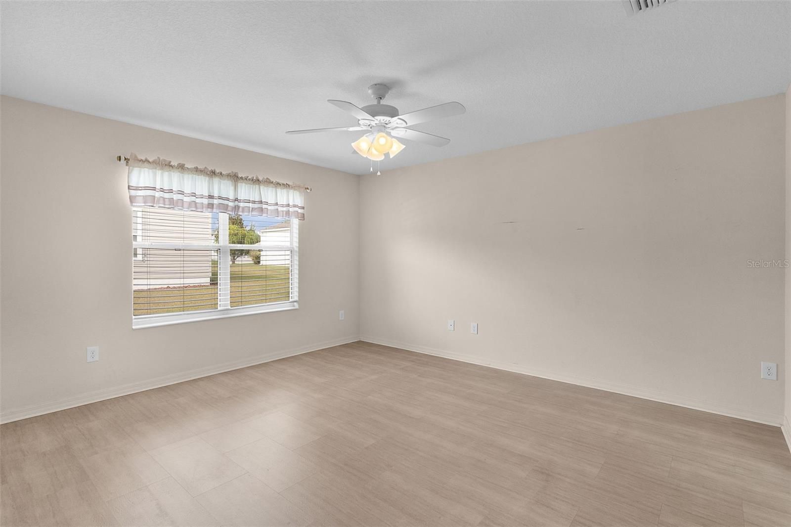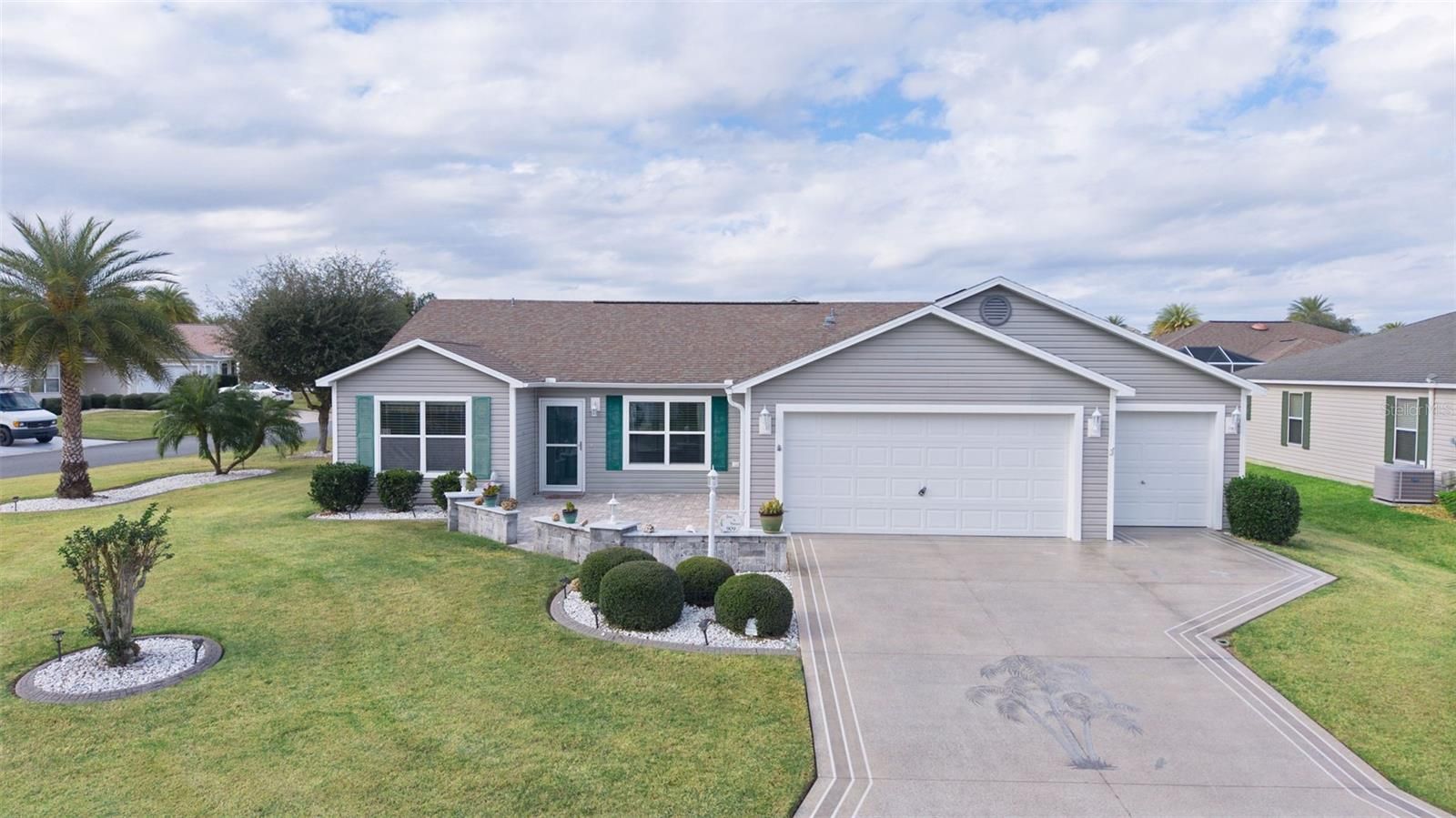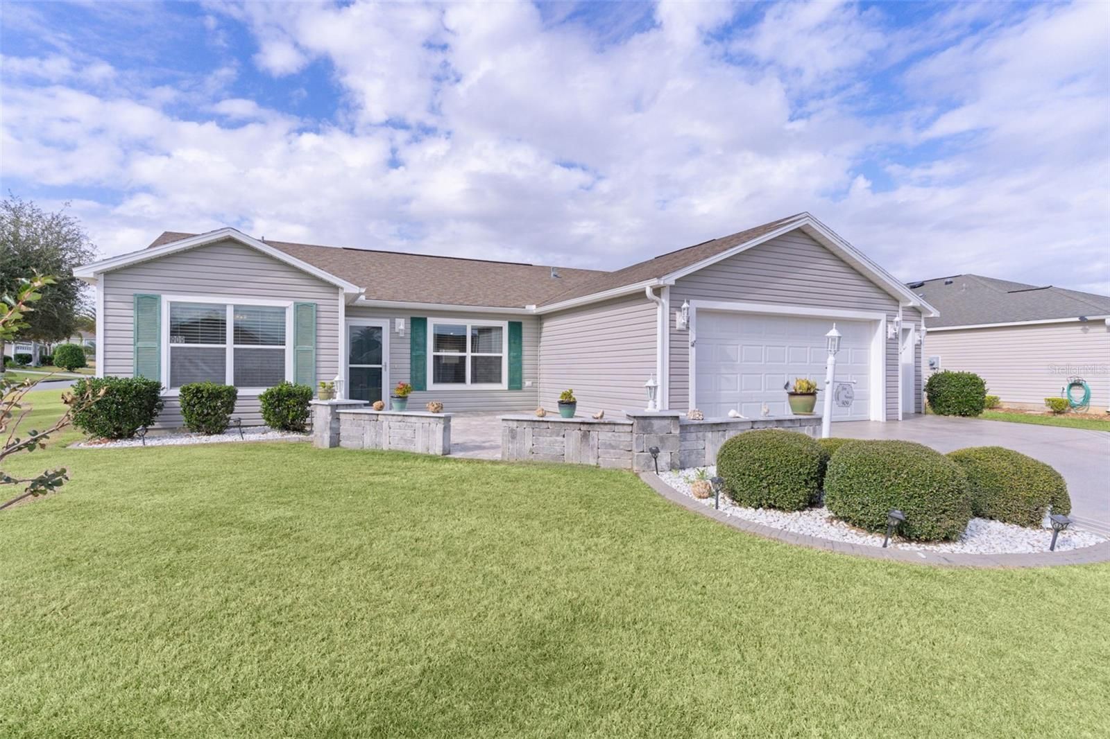 ~CORNER LOT~ ~BRICK & PAVER FRONT PORCH~ ~2021 HVAC AIR HANDLER~ ~EPOXY DRIVEWAY~ Welcome to this beautifully maintained SUN KISSED model located in the sought-after Village of SANIBEL! Perfectly positioned on a CORNER LOT, this home makes a striking first impression with a LARGE BRICK and PAVER FRONT PORCH and an eye-catching EPOXY-COATED driveway featuring a custom palm tree design. Step inside to find HIGH VAULTED knockdown ceilings and an open, light-filled living space. The living and dining rooms feature LAMINATE flooring, enhanced by a SOLAR tube that fills the area with natural light. The kitchen boasts LUXURY VINYL flooring, HIGH-DEFINITION countertops, STAINLESS STEEL appliances, TILE backsplash, bottom cabinet rollouts, and a CLOSET PANTRY, making it both stylish and functional. The primary suite offers LUXURY VINYL flooring, a ceiling fan, updated lighting, and a spacious WALK-IN CLOSET. The primary bath includes double sinks, an ONYX WALK-IN SHOWER, HIGH ONYX COUNTERTOPS, and a linen closet. One guest bedroom features LUXURY VINYL flooring and the other LAMINATE flooring, both have ceiling fans, and built-in closets. The guest bath includes a fiberglass shower/tub combo, and HIGH laminate countertops. The INDOOR LAUNDRY ROOM has LUXURY VINYL flooring, a laundry tub, and shelving for added convenience. Enjoy year-round relaxation in the GLASS ENCLOSED LANAI UNDER HEAT and AIR featuring CERAMIC TILE flooring, blinds, and a ceiling fan. There is also a grilling area located directly outside of the lanai for additional entertainment space. An exterior sunshade on the west wall adds extra comfort and energy efficiency. The 2-car plus GOLF CART GARAGE is a standout, offering an INSULATED garage door, attic stairs with attic decking, and EPOXY FLOORING—ideal for storage and hobbies. The Roof and Hot Water Heater are 2012. This home is a perfect blend of curb appeal, thoughtful upgrades, and comfortable Florida living—ready for you to move in and enjoy everything in The Villages! The location is ideal, being close to CR 466A which provides access to shopping including Colony Plaza and the Walmart Neighborhood Market, dining and medical services. Also close to the Bonifay Country Club, the Captiva Pool and Charlotte Pool as well as numerous Executive Golf Courses.