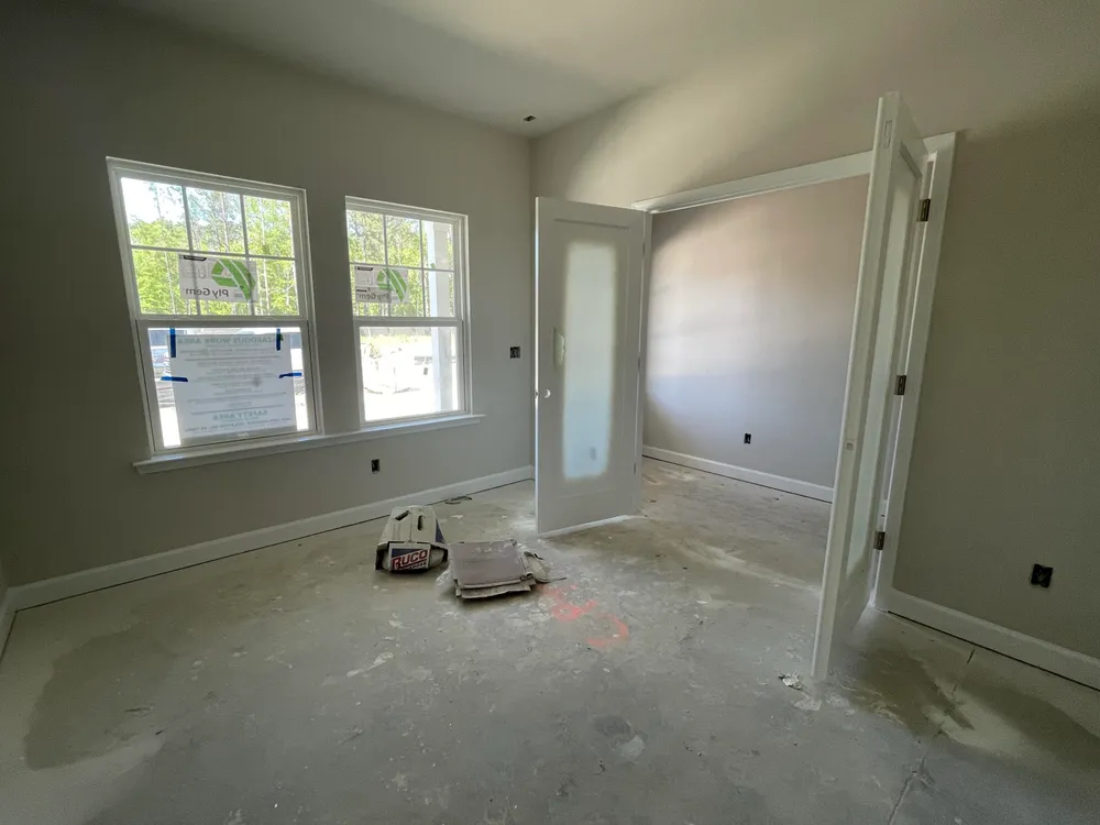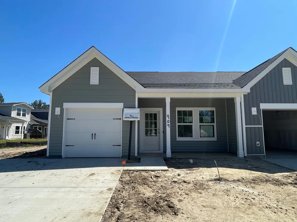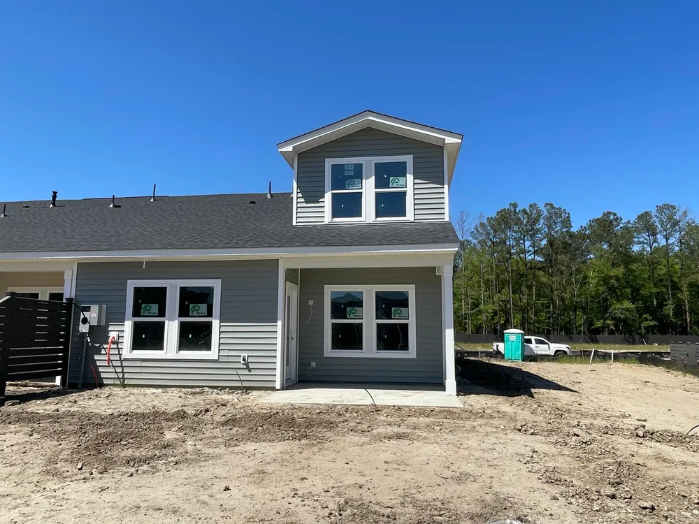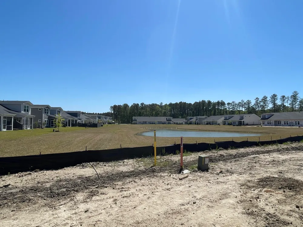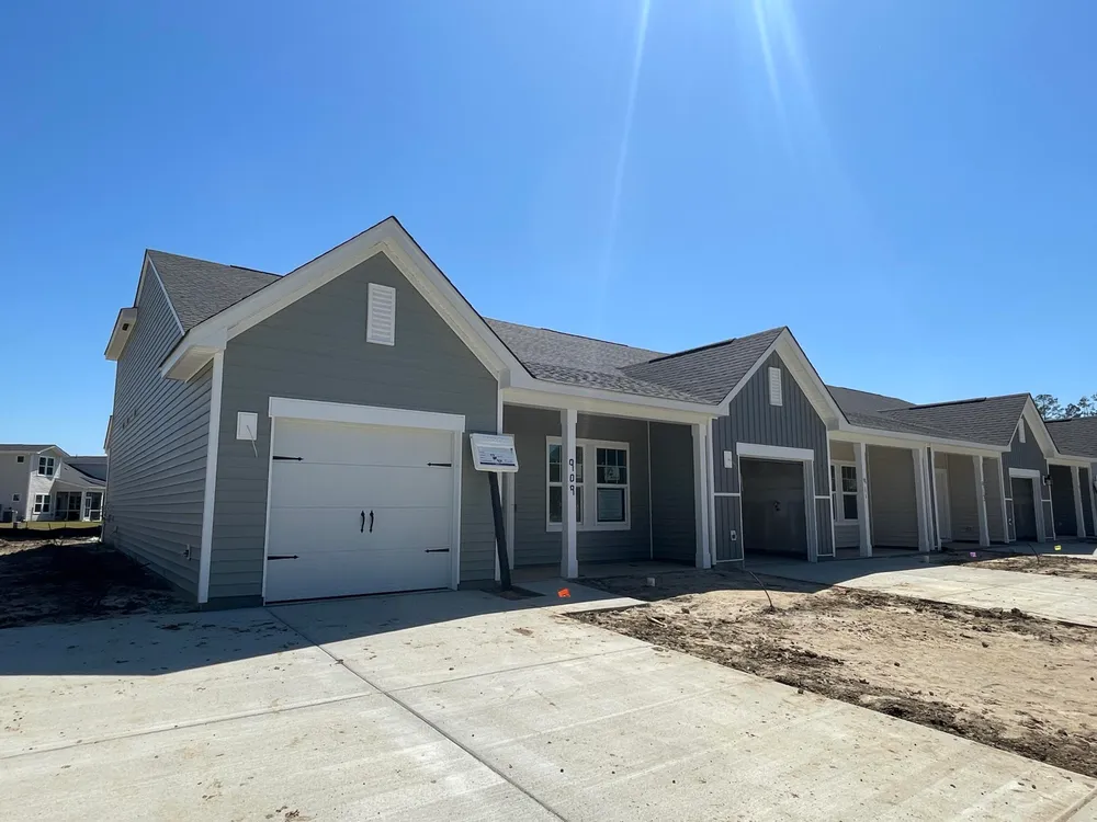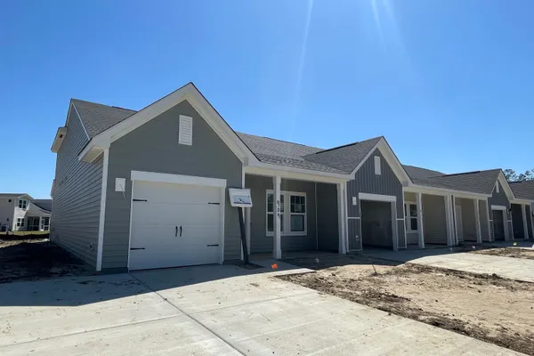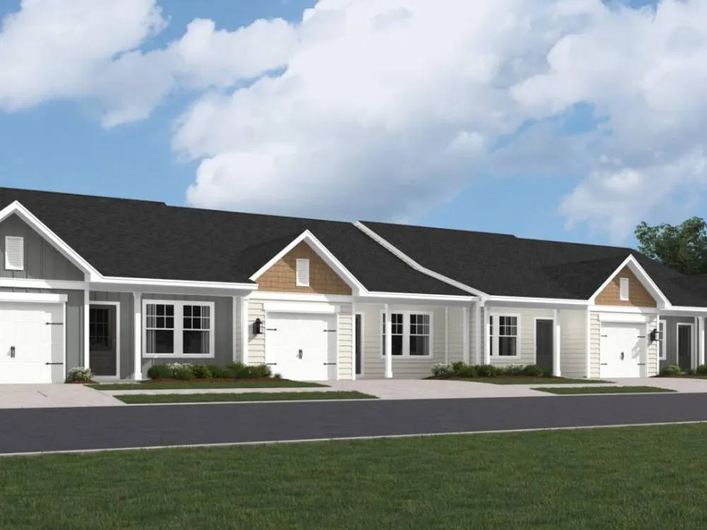 This quadplex villa backs to the main pond in the community and is adorned with beautiful designer upgrades. A downstairs study with glass french doors welcome you into the foyer, and the open living and kitchen area, as well as the primary bedroom, all look out to the pond outdoors. The kitchen holds white shaker cabinets, quartz countertops, and designer herringbone backsplash. The primary bathroom has a tile shower, dual vanities, and quartz tops. The upstairs holds a loft area, full bathroom, bedroom, and large attic storage space. Ready to close this spring!