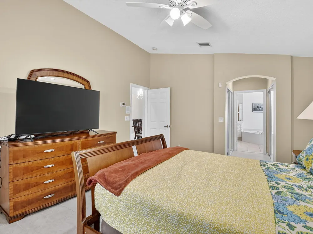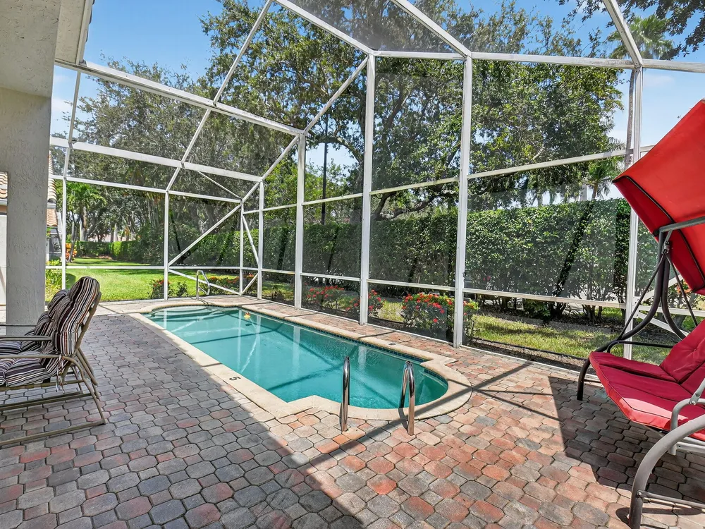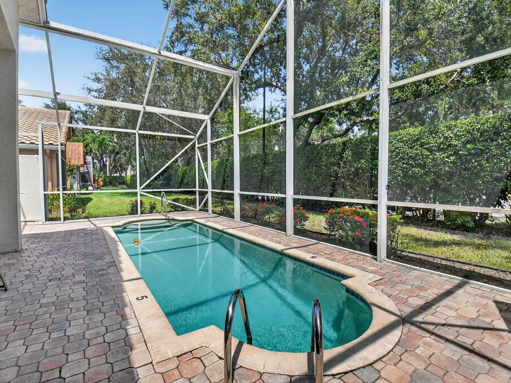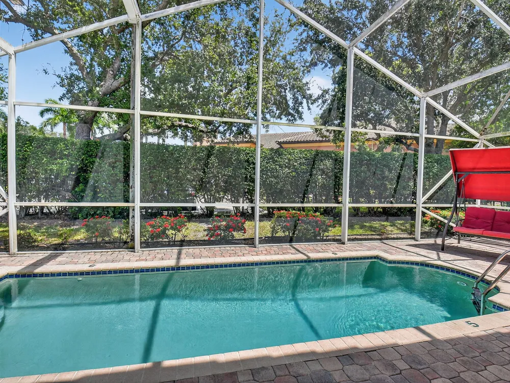 Stunning 3 bedroom,2 bathroom single-family home in the desirable 55+ community of Ponte Vecchio with 24-hour manned gate. This home features a spacious split-bedroom floor plan, granite kitchen with custom cabinets, stainless steel appliances, and a separate laundry room. Enjoy the screened-in pool and beautiful patio, perfect for relaxing or entertaining. Additional highlights include a 2-car garage and complete hurricane shutters for peace of mind. A must-see in a premier community offering resort-style amenities! The clubhouse features a billiard room and tournaments, a heated outdoor pool, a hot tub, a library, tennis, and an array of social clubs to choose from.