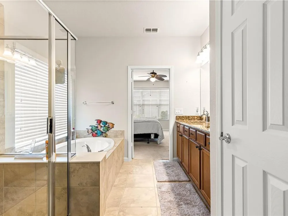 - Ceiling Fan(s), Eat-in Kitchen, Main Level Primary, Split Bedrooms, Walk-In Closet(s)