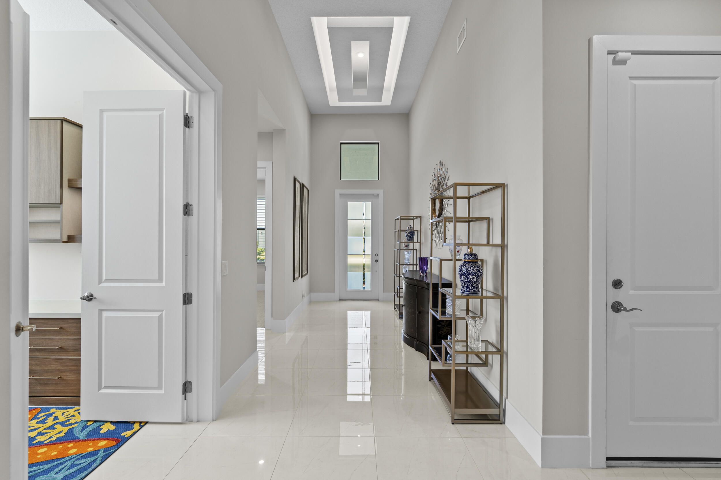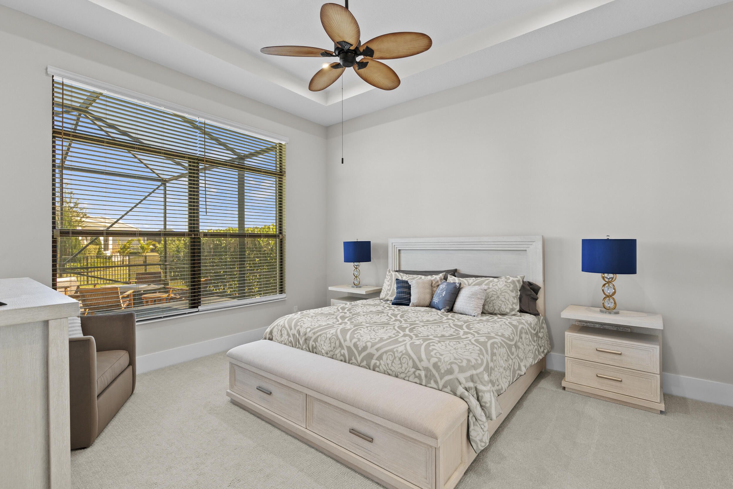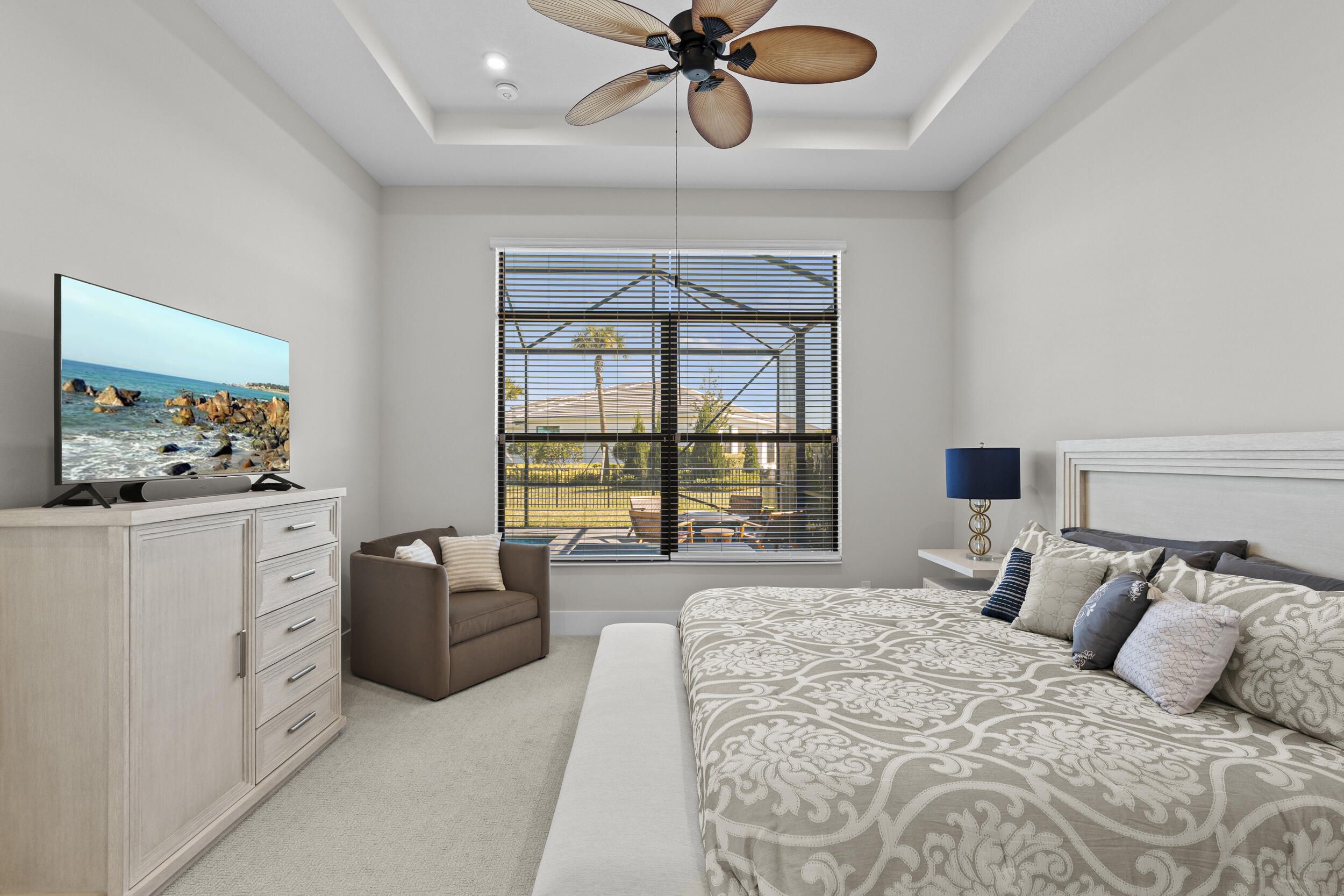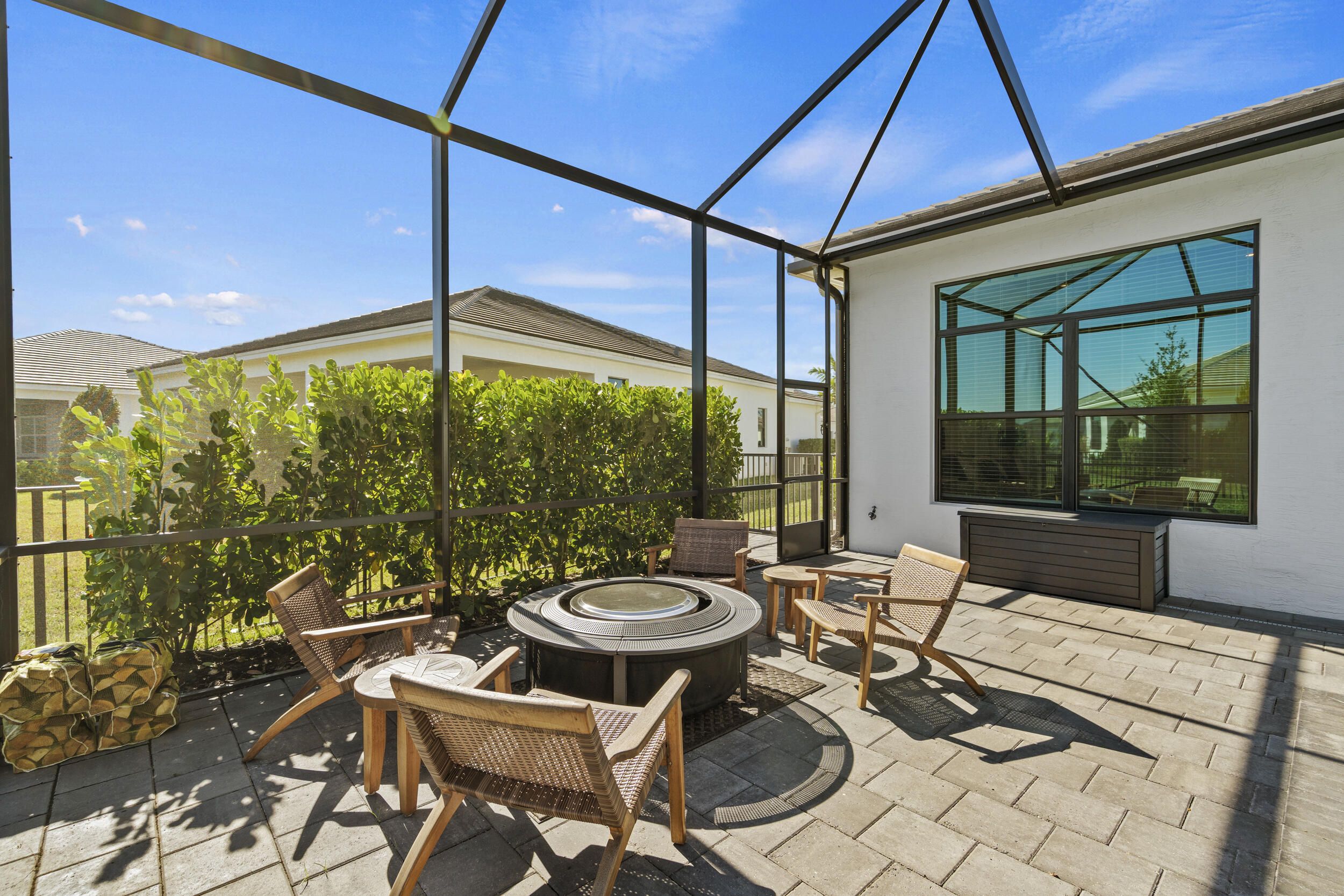 Stunning ''Paige Model'' from the Hepburn Collection at Verano PGA Village. Like New home shows like a MODEL! Contemporary design features CBS Construction, Flat tile roof, paver driveway, Hurricane Impact Windows & fabulous screen enclosed pool with fenced in yard offering tropical setting on spacious lot. Hosts 3 BR's, 3 BA's, Office/den with custom built-in's & 3 Car Garage. Foyer entrance, gorgeous porcelain tile, Plantation Shutters, Split Floor Plan, volume ceilings with custom trays & wonderful Open Floor Plan. Gourmet Kitchen boasts quartz countertops, glass backsplash, stainless steel appliances, hood, cooktop stove, wall oven & walk in pantry w/wood shelves. Grand Master Suite w/ natural lighting, LG walk in closet with custom built-in's & Bath includes LG shower & dual sinks. Exceptional outside area with sliding glass doors to covered patio, beautiful salt, electric heated pool with screened enclosure lanai 46 x 24, is perfect to entertain. HOA includes: Recreation clubhouse Talavera, lawn care, exterior pest control, cable, high speed internet, alarm monitoring & manned gated security. PGA Verano is a resort style community with 27 pickle ball courts, tennis courts, fitness centers with state of the art equipment, indoor and outdoor pools, saunas, and dog park. Exceptional Talavera Social Club 19,000 sq ft offers something for everyone! There is a golf cart path to the PGA Golf Club which offers 3 Public Championship Golf Courses and Private Course (membership optional). Located minutes from Shopping, Restaurants, Activities, Entertainment & Even Home of the New York Mets Spring Training. Only 45 Minutes from Palm Beach Airport and a growing area. The Treasure Coast has beautiful Waterways for the Beach, Fishing & Boating. Due to the location of the Treasure Coast the Weather is delightful! Schedule your private showing today- this gem won't last!