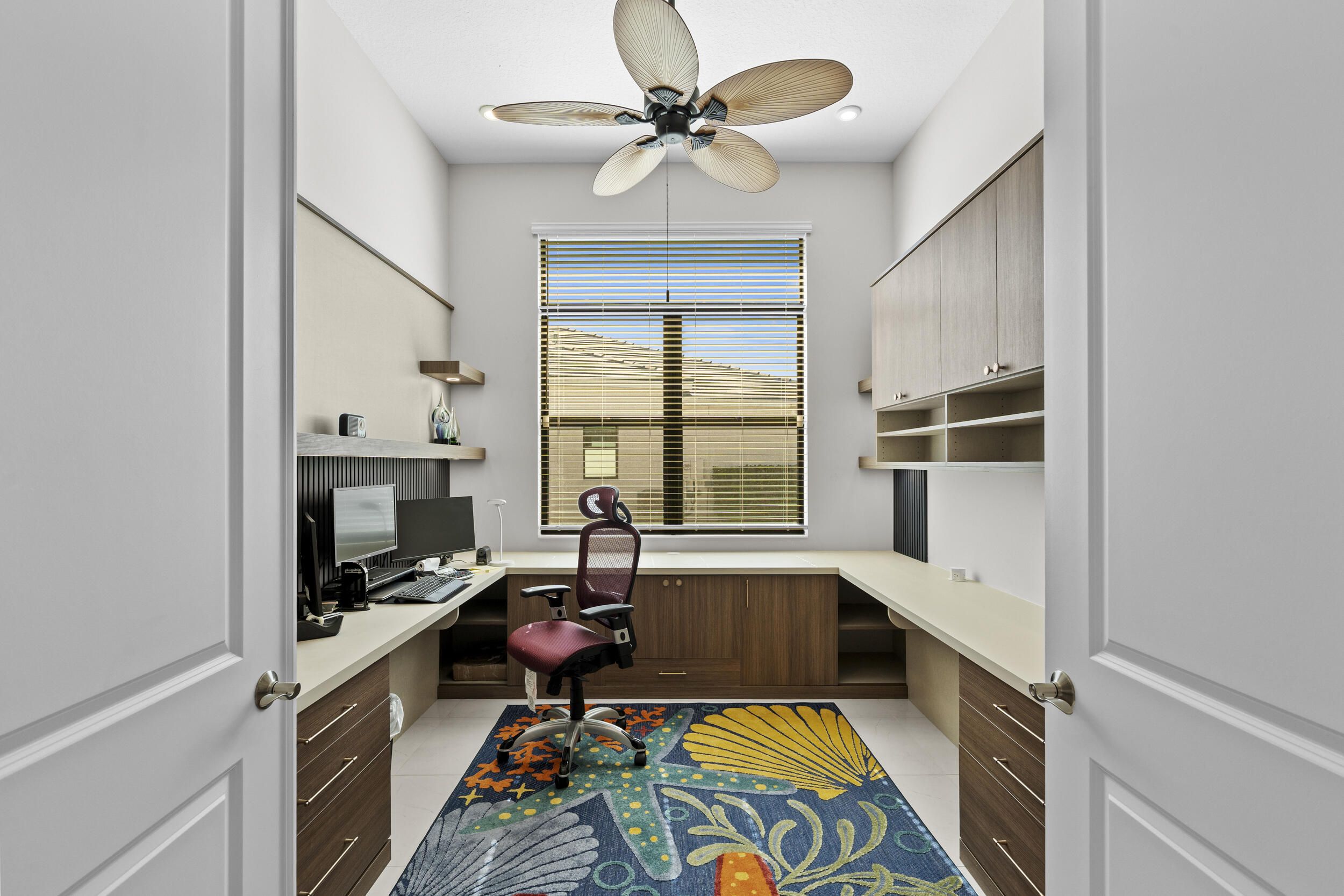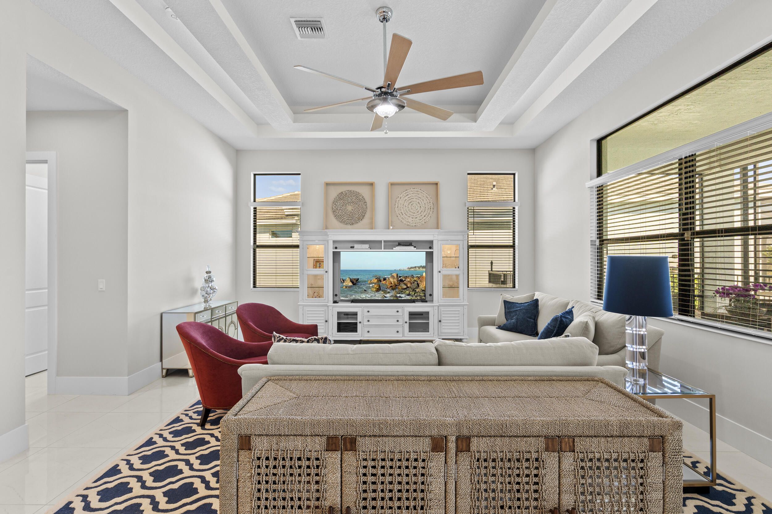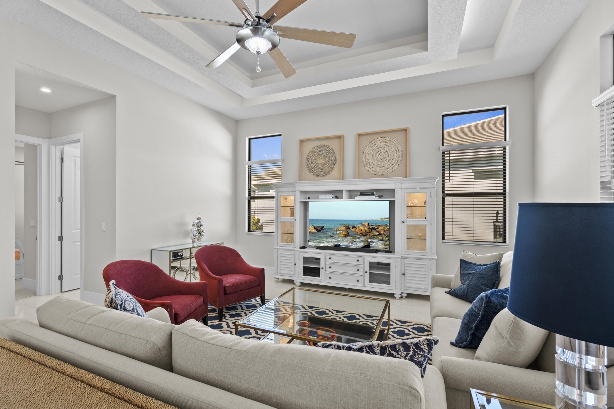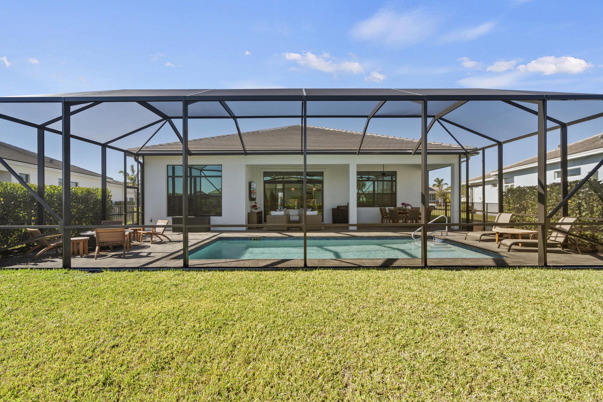 Stunning ''Paige Model'' from the Hepburn Collection at Verano PGA Village. Like New home shows like a MODEL! Contemporary design features CBS Construction, Flat tile roof, paver driveway, Hurricane Impact Windows & fabulous screen enclosed pool with fenced in yard offering tropical setting on spacious lot. Hosts 3 BR's, 3 BA's, Office/den with custom built-in's & 3 Car Garage. Foyer entrance, gorgeous porcelain tile, Plantation Shutters, Split Floor Plan, volume ceilings with custom trays & wonderful Open Floor Plan. Gourmet Kitchen boasts quartz countertops, glass backsplash, stainless steel appliances, hood, cooktop stove, wall oven & walk in pantry w/wood shelves. Grand Master Suite w/ natural lighting, LG walk in closet with custom built-in's & Bath includes LG shower & dual sinks. Exceptional outside area with sliding glass doors to covered patio, beautiful salt, electric heated pool with screened enclosure lanai 46 x 24, is perfect to entertain. HOA includes: Recreation clubhouse Talavera, lawn care, exterior pest control, cable, high speed internet, alarm monitoring & manned gated security. PGA Verano is a resort style community with 27 pickle ball courts, tennis courts, fitness centers with state of the art equipment, indoor and outdoor pools, saunas, and dog park. Exceptional Talavera Social Club 19,000 sq ft offers something for everyone! There is a golf cart path to the PGA Golf Club which offers 3 Public Championship Golf Courses and Private Course (membership optional). Located minutes from Shopping, Restaurants, Activities, Entertainment & Even Home of the New York Mets Spring Training. Only 45 Minutes from Palm Beach Airport and a growing area. The Treasure Coast has beautiful Waterways for the Beach, Fishing & Boating. Due to the location of the Treasure Coast the Weather is delightful! Schedule your private showing today- this gem won't last!