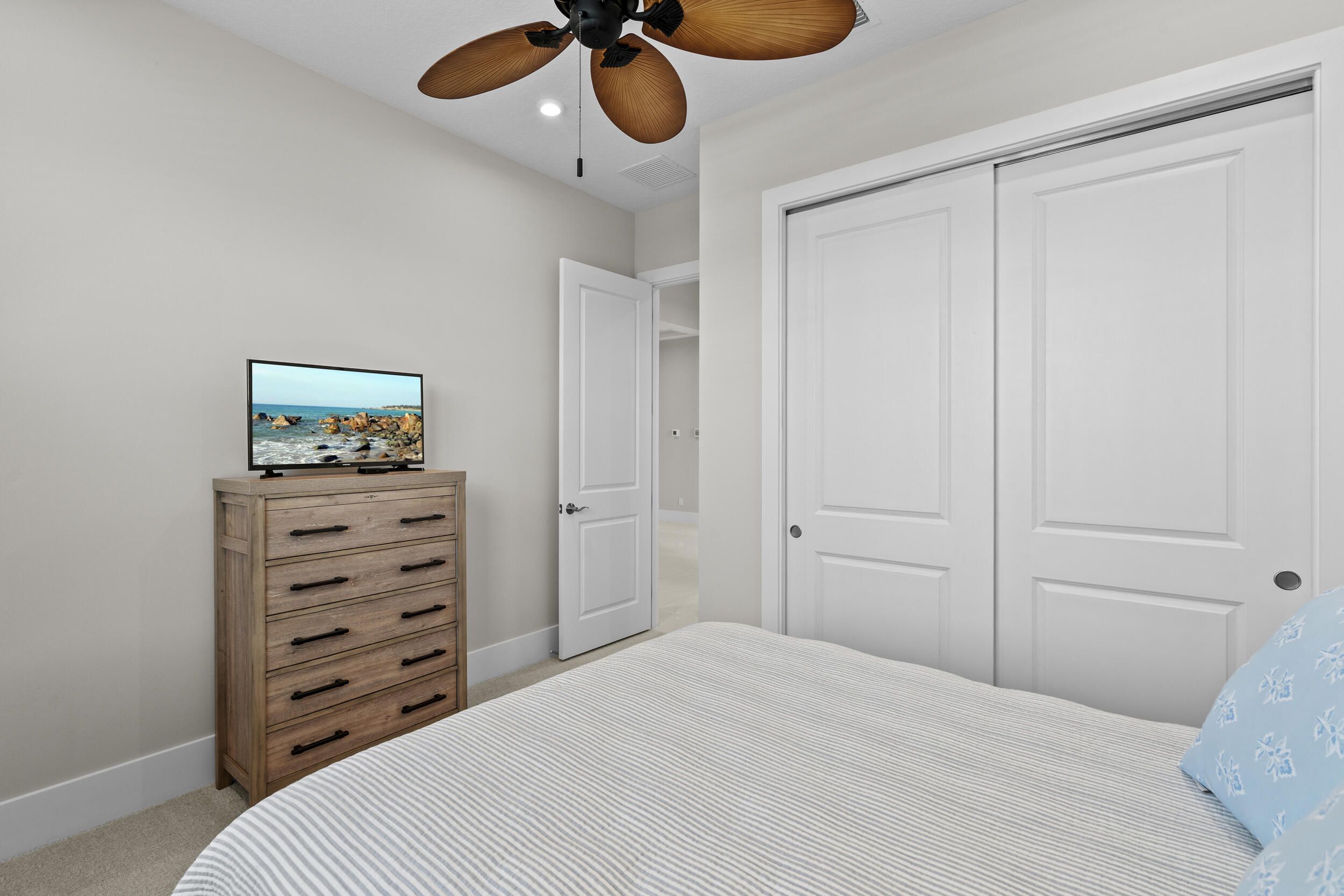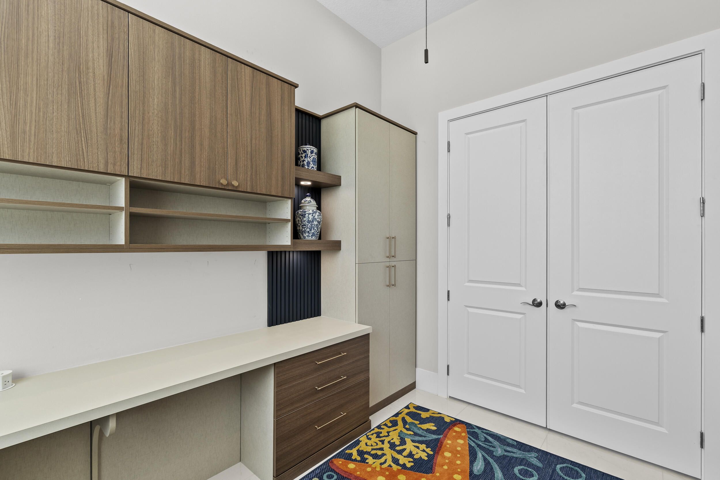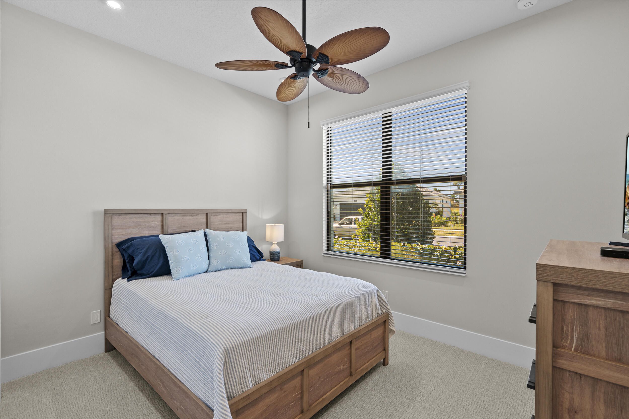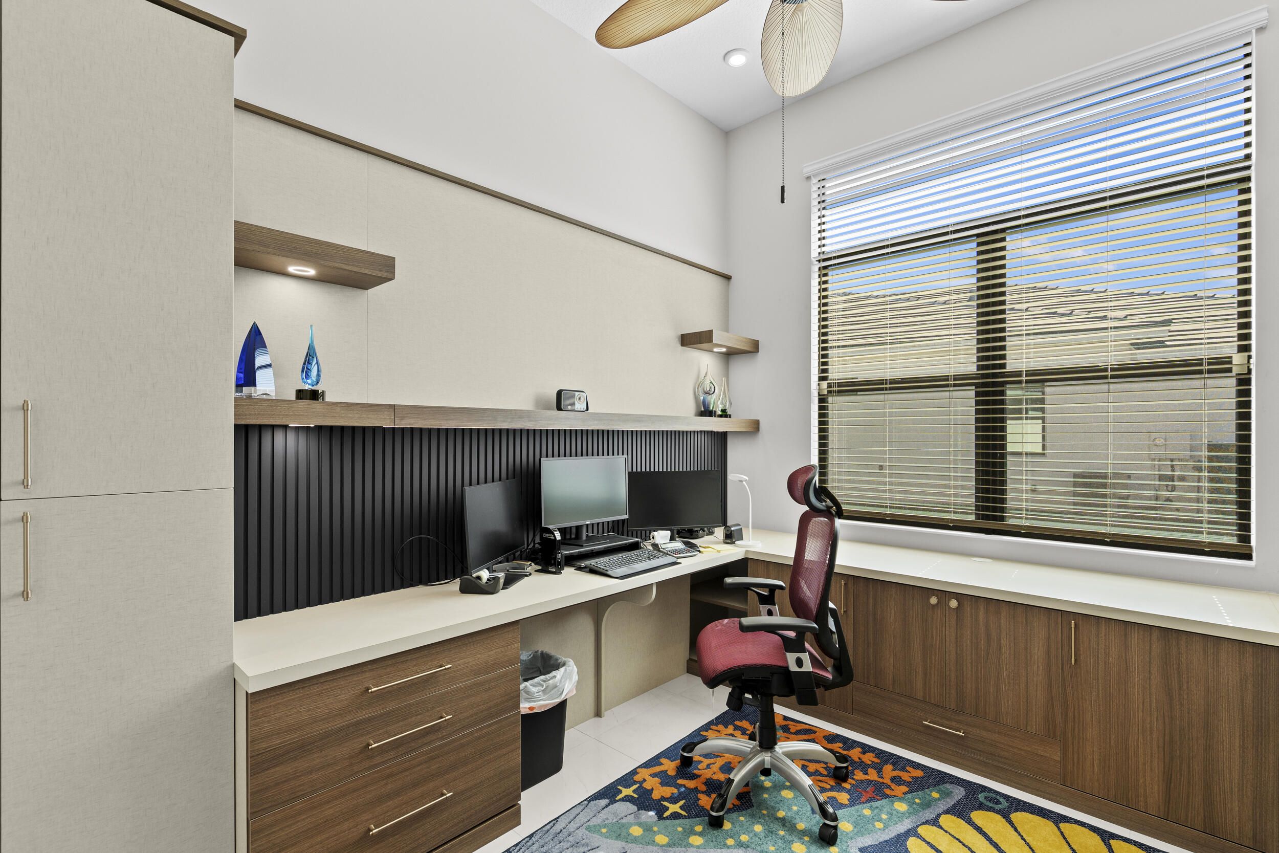 Stunning ''Paige Model'' from the Hepburn Collection at Verano PGA Village. Like New home shows like a MODEL! Contemporary design features CBS Construction, Flat tile roof, paver driveway, Hurricane Impact Windows & fabulous screen enclosed pool with fenced in yard offering tropical setting on spacious lot. Hosts 3 BR's, 3 BA's, Office/den with custom built-in's & 3 Car Garage. Foyer entrance, gorgeous porcelain tile, Plantation Shutters, Split Floor Plan, volume ceilings with custom trays & wonderful Open Floor Plan. Gourmet Kitchen boasts quartz countertops, glass backsplash, stainless steel appliances, hood, cooktop stove, wall oven & walk in pantry w/wood shelves. Grand Master Suite w/ natural lighting, LG walk in closet with custom built-in's & Bath includes LG shower & dual sinks. Exceptional outside area with sliding glass doors to covered patio, beautiful salt, electric heated pool with screened enclosure lanai 46 x 24, is perfect to entertain. HOA includes: Recreation clubhouse Talavera, lawn care, exterior pest control, cable, high speed internet, alarm monitoring & manned gated security. PGA Verano is a resort style community with 27 pickle ball courts, tennis courts, fitness centers with state of the art equipment, indoor and outdoor pools, saunas, and dog park. Exceptional Talavera Social Club 19,000 sq ft offers something for everyone! There is a golf cart path to the PGA Golf Club which offers 3 Public Championship Golf Courses and Private Course (membership optional). Located minutes from Shopping, Restaurants, Activities, Entertainment & Even Home of the New York Mets Spring Training. Only 45 Minutes from Palm Beach Airport and a growing area. The Treasure Coast has beautiful Waterways for the Beach, Fishing & Boating. Due to the location of the Treasure Coast the Weather is delightful! Schedule your private showing today- this gem won't last!