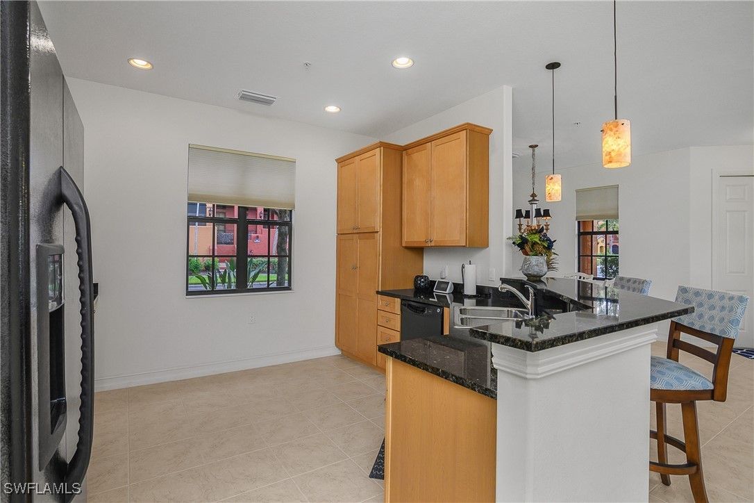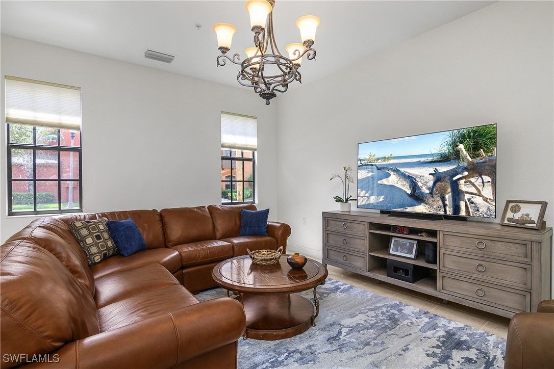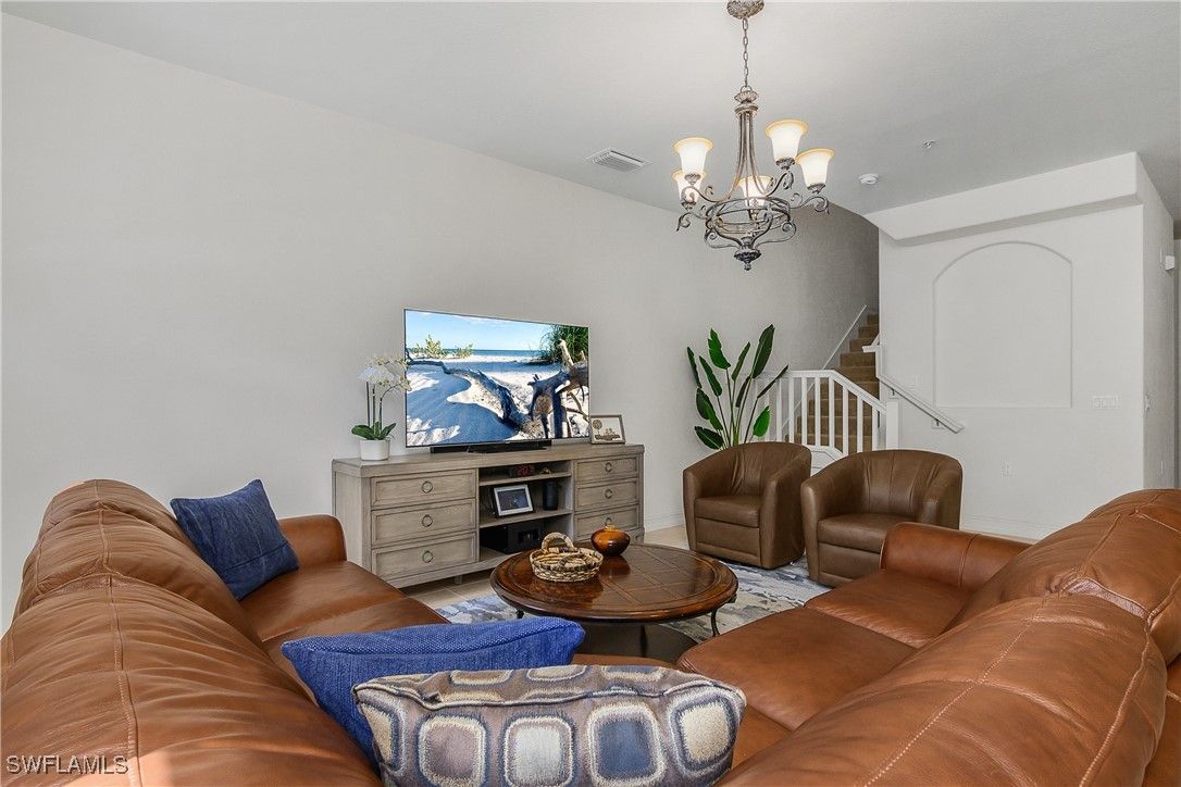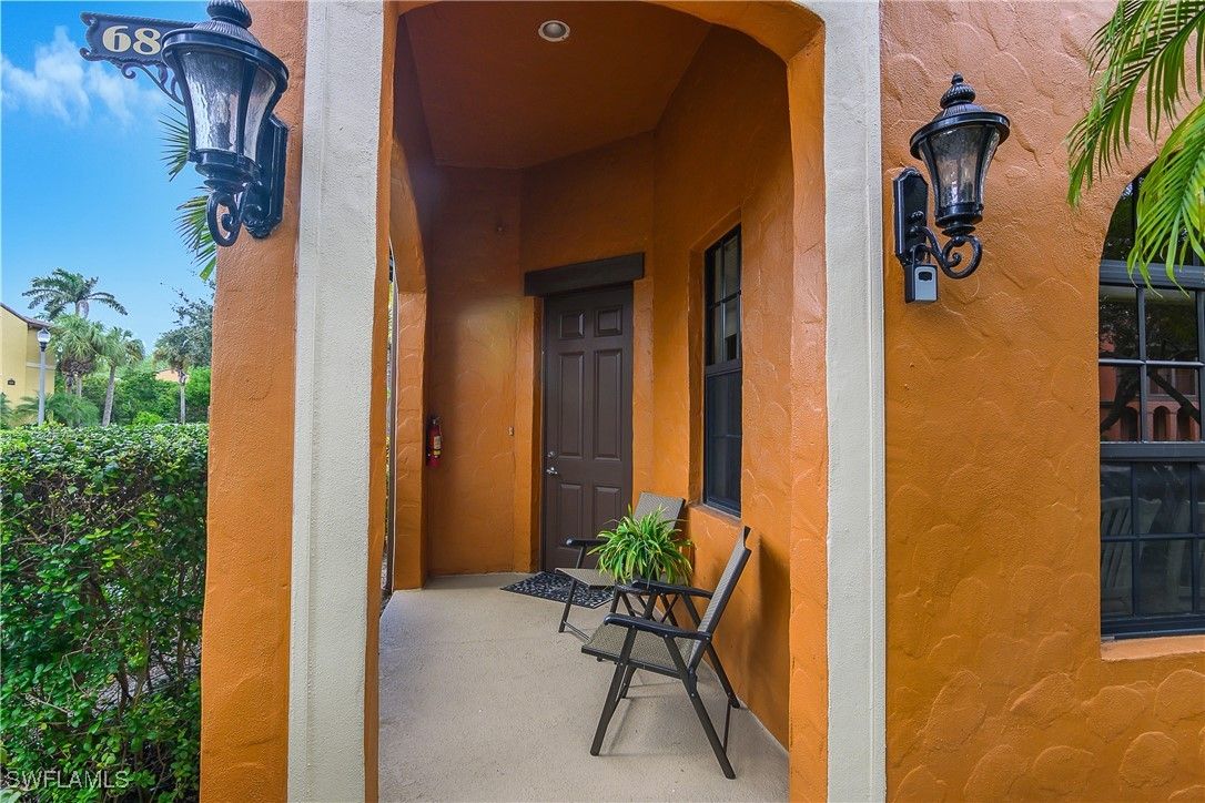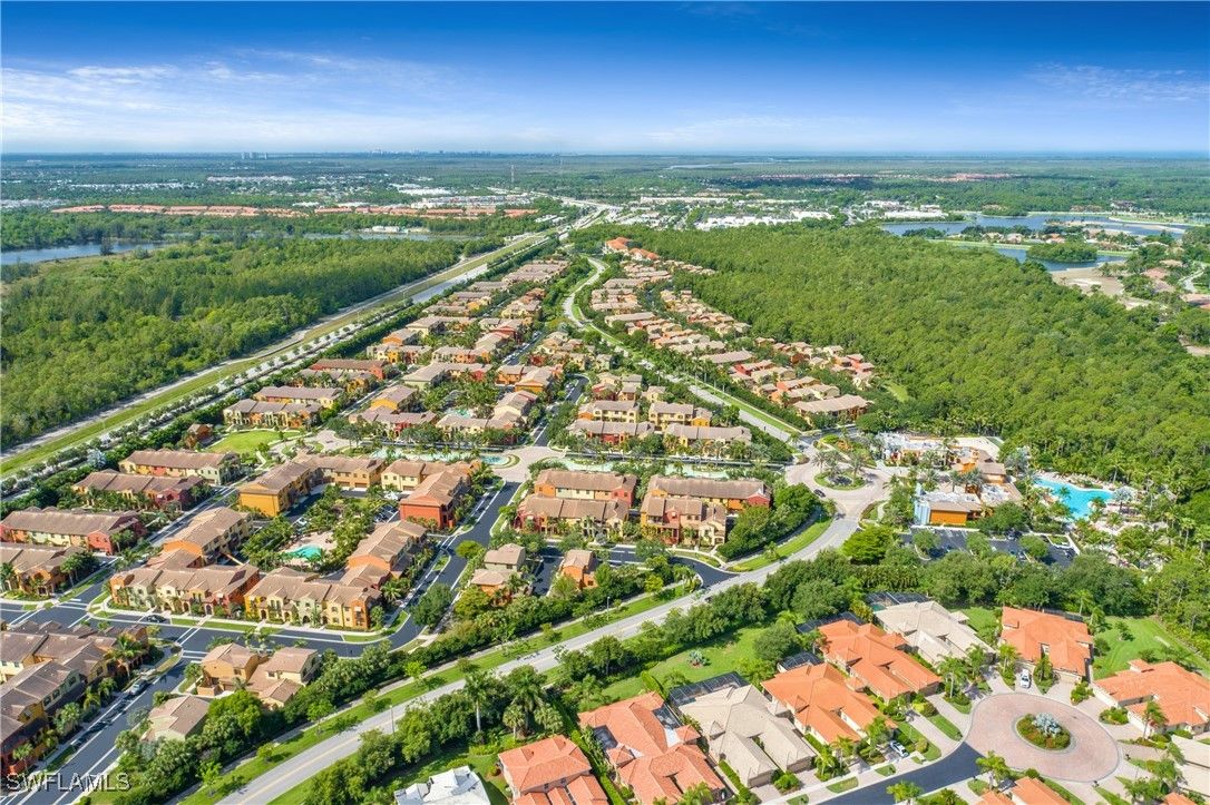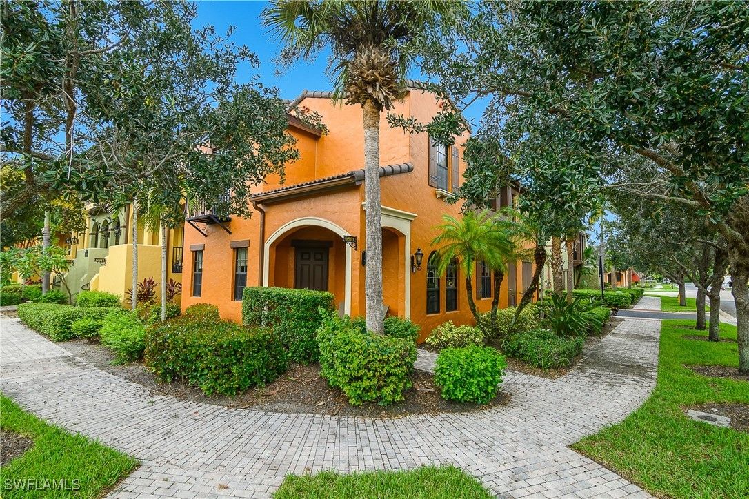 Lovely Santa Rosa townhouse features three bedrooms and a den. Corner unit allows for windows on each side of the home for a lighter and brighter interior. This floor plan is one of the largest in Ole' with 2084 sq. ft. First floor offers a generous great room, kitchen with granite counters, dining room, convenient powder room and walk-in pantry. The second floor provides three bedrooms, two full baths, generous family gathering area and balcony. Second floor also includes a loft stye area for office with built in desk. Corner unit with foliage on both sides. Private entrance to the two car garage. Hurricane level windows and doors for storm protection. The Village Center is conveniently located one block away from this home. The Village Center is ideal for relaxation or socializing with friends and neighbors. Center provides resort style pool, kiddie pool, spa, volleyball, bocce, fitness center, pickleball, basketball, tennis, movie theatre, and on site pub and ice cream parlor. A short drive to stunning beaches, amazing restaurants, unique shopping and many cultural activities. Multiple golf courses nearby. Ole' at Lely Resort offers the ultimate Florida Lifestyle!