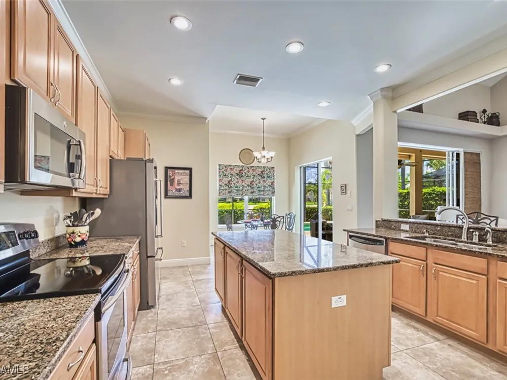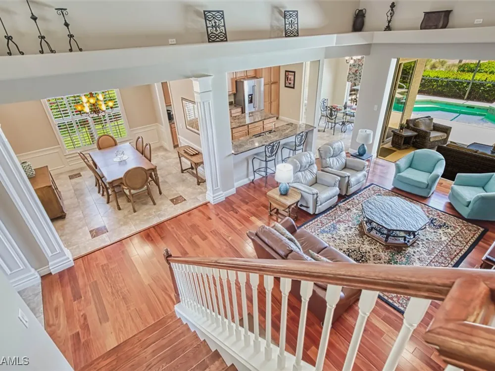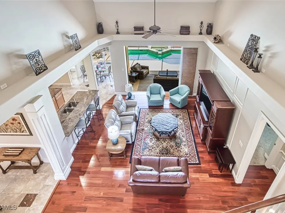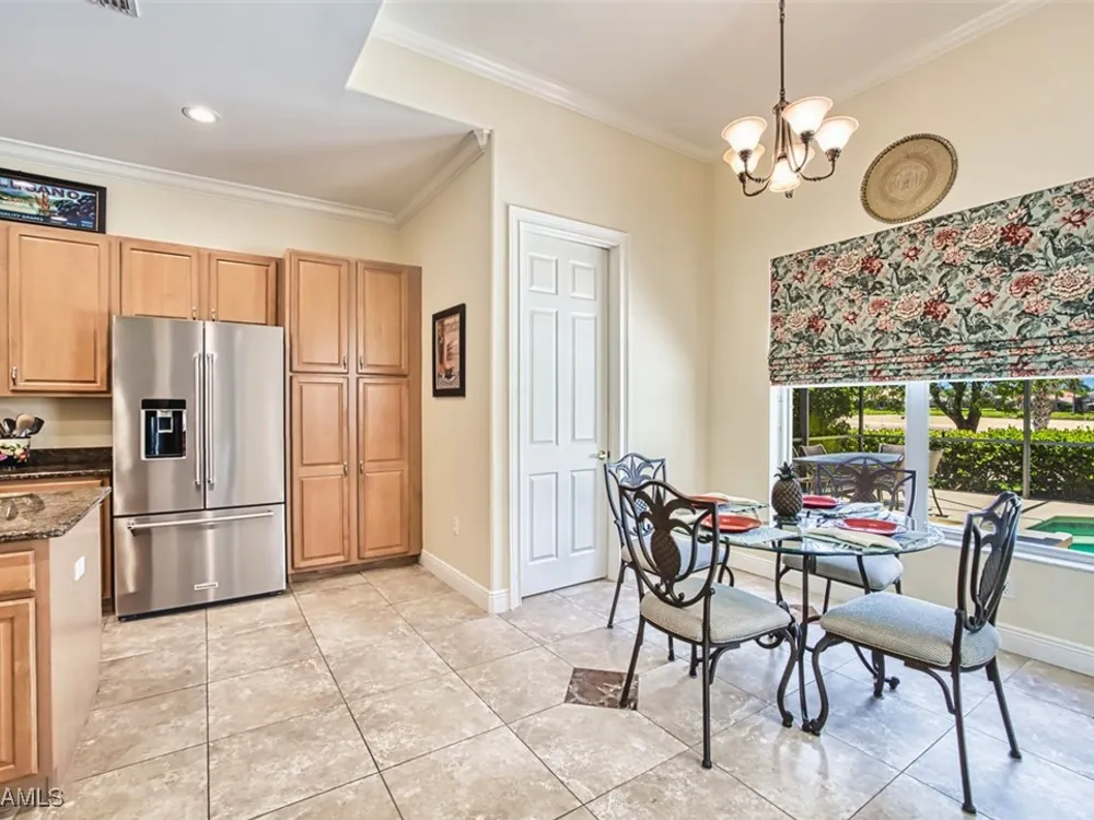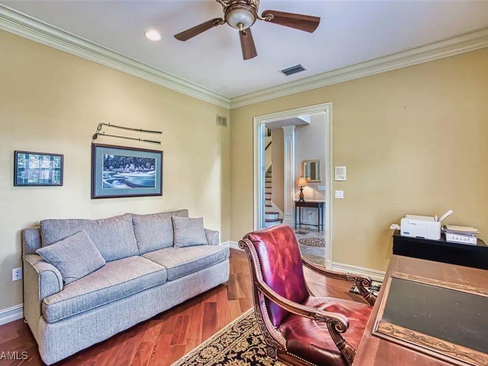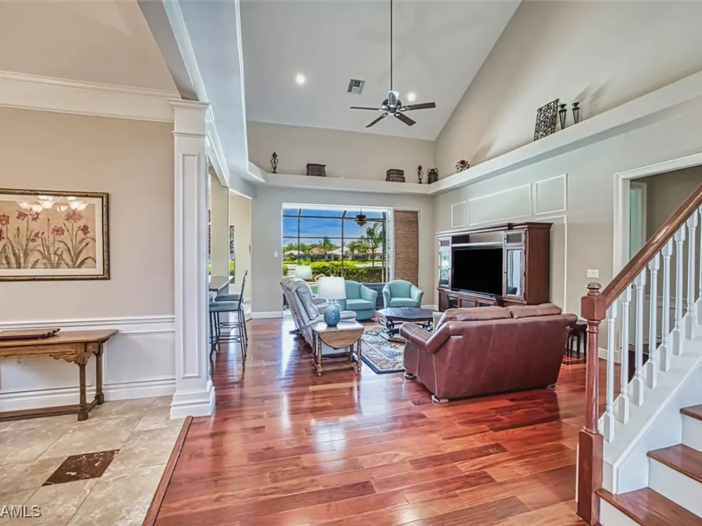 Welcome to your dream home in the prestigious Colonial Country Club! This stunning single family home boasts 3 bedrooms, 2.5 bathrooms, and a plethora of luxurious features that will make you never want to leave. NO FLOOD INSURANCE REQUIRED! This home comes with a FULL GOLF MEMBERSHIP to a Gordon Lewis designed championship golf course which is being renovated so you will have a brand new golf course in December. Reciprocals are set up for play through November. Step inside and be greeted by custom tile and elegant mahogany floors creating a warm and inviting atmosphere throughout. The gourmet kitchen is a chef's delight, with granite counters, stainless steel appliances, and a newer refrigerator and garbage disposal. The spacious office provides the perfect space for working from home or unwinding with a good book. The real showstopper of this home is the in-ground pool with spa that overlooks the 10th hole, perfect for relaxing and entertaining guests year-round. With newer accordion and electric hurricane shutters, Aqua Pod pool control, a newer air conditioning compressor and hot water heater, and a newer pool heater, you can rest easy knowing that this home is not only beautiful but also well-maintained and ready for you to move in and start enjoying the Florida lifestyle .The award-winning Colonial Country Club offers resort-style living with amenities like bundled golf, tennis, pickleball, a fitness center, miles of walking trails and bocce ball. The on-site restaurant and bar offers a place to socialize with friends and neighbors Colonial Country Club has won the Distinguished Club Award as one of only two clubs in Fort Myers and in the top 4% of clubs globally, Colonial proudly upholds the esteemed Distinguished Club Award, a testament to its steadfast dedication to excellence in service, facilities, and the overall member experience. Handpicked through a meticulous evaluation process by BoardRoom magazine's industry specialists, this award solidifies its standing among the world's most esteemed private clubs. Don't miss out on this incredible opportunity to own a piece of paradise in Colonial Country Club!