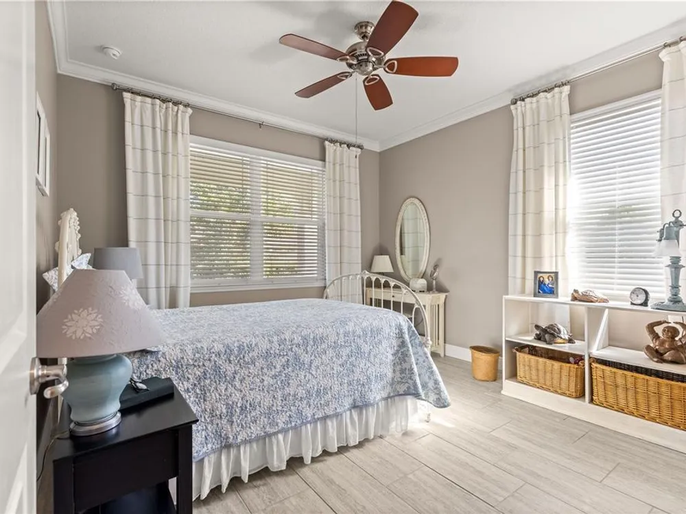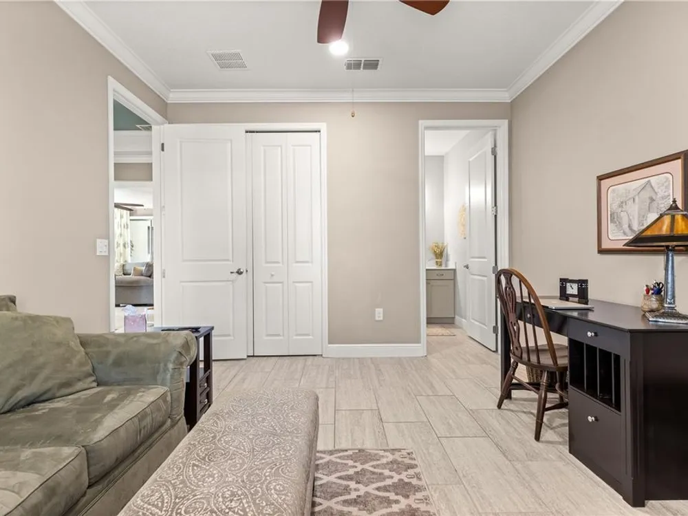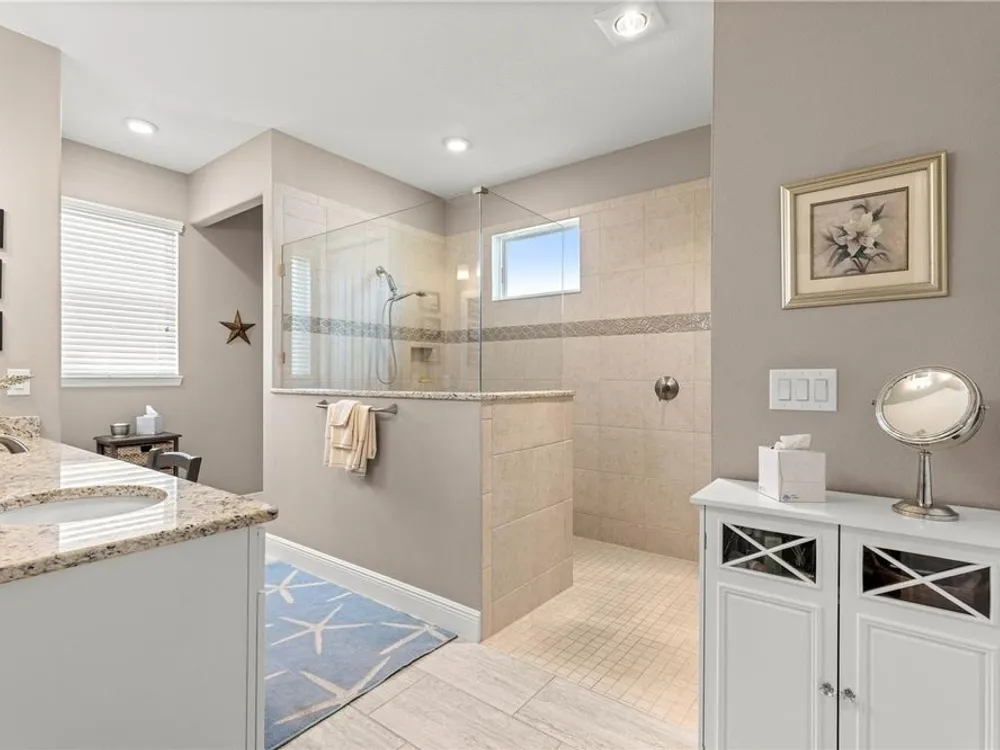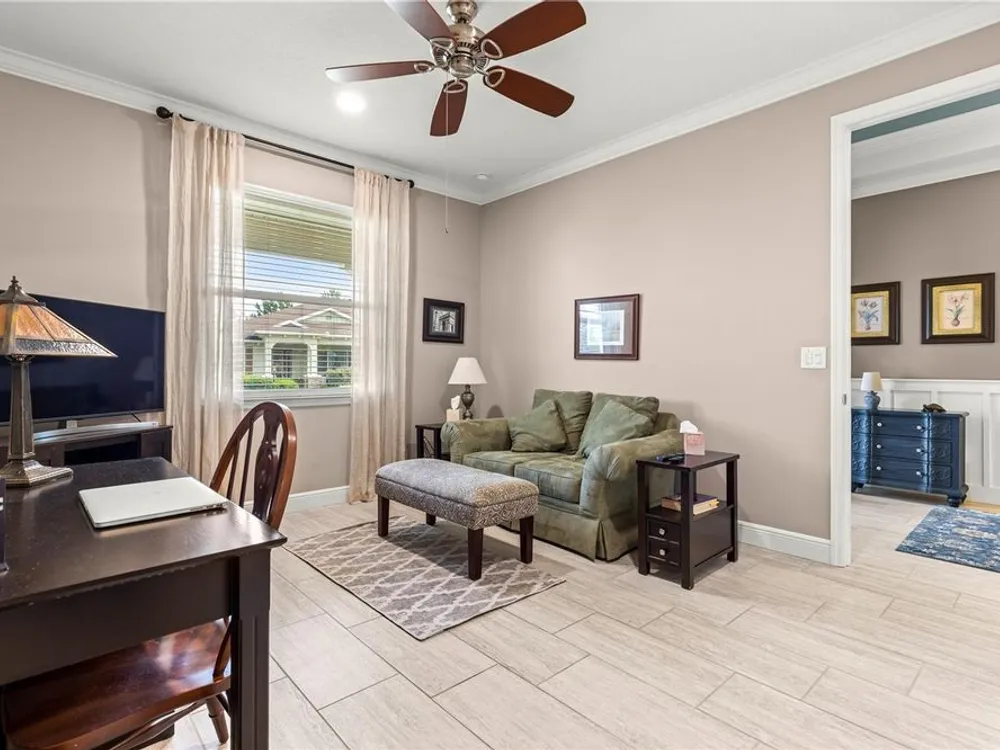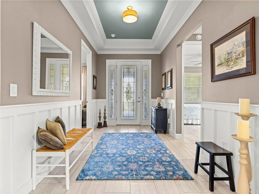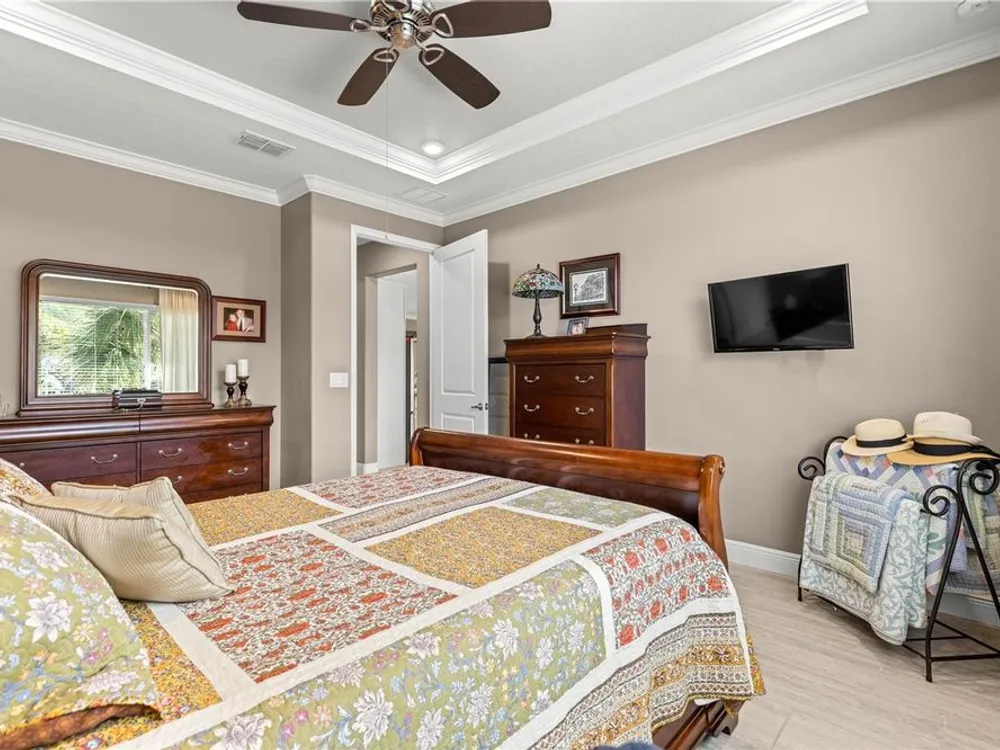 - Ceiling Fan(s), Crown Molding, Eat-in Kitchen, High Ceilings, Kitchen/Family Room Combo, Living/Dining Room, Open Floorplan, Main Level Primary, Smart Home, Stone Counters, Thermostat, Tray Ceiling(s), Walk-In Closet(s), Window Treatments
