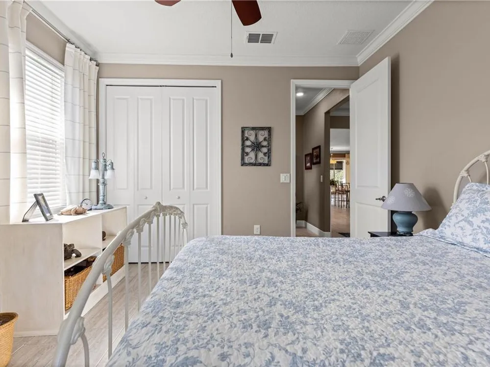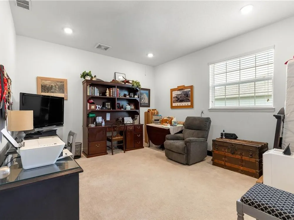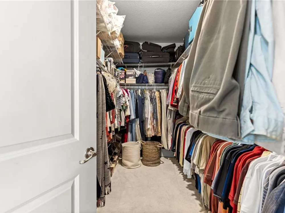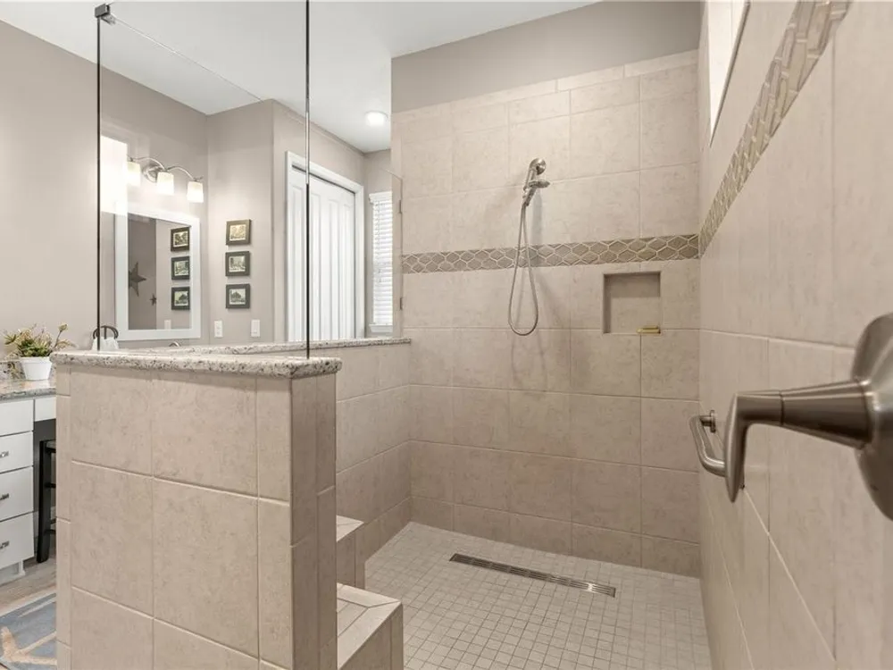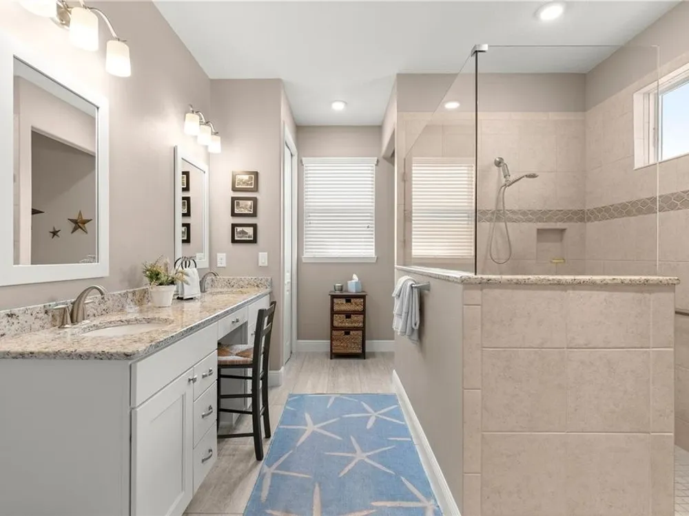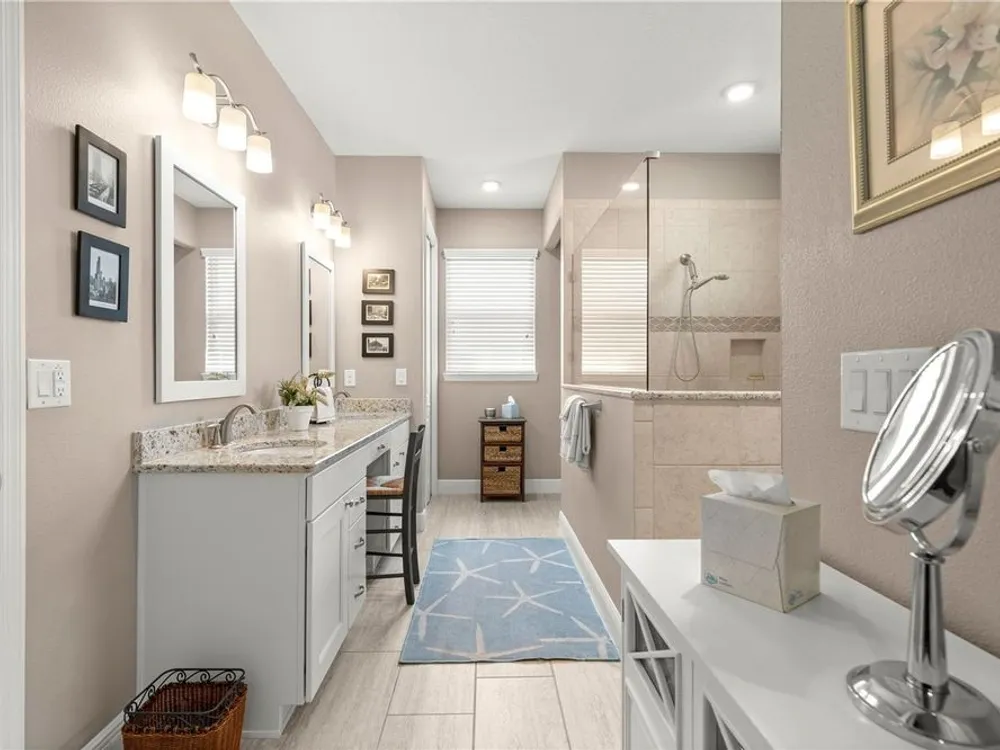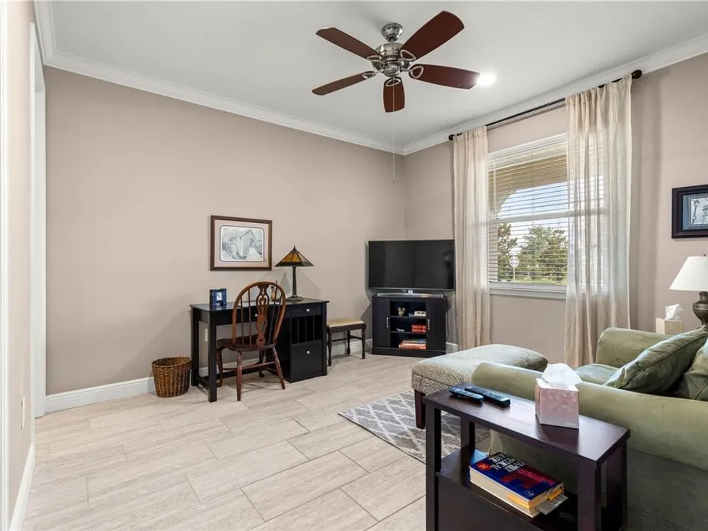 - Ceiling Fan(s), Crown Molding, Eat-in Kitchen, High Ceilings, Kitchen/Family Room Combo, Living/Dining Room, Open Floorplan, Main Level Primary, Smart Home, Stone Counters, Thermostat, Tray Ceiling(s), Walk-In Closet(s), Window Treatments