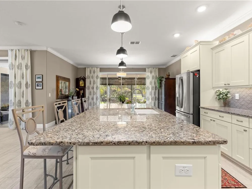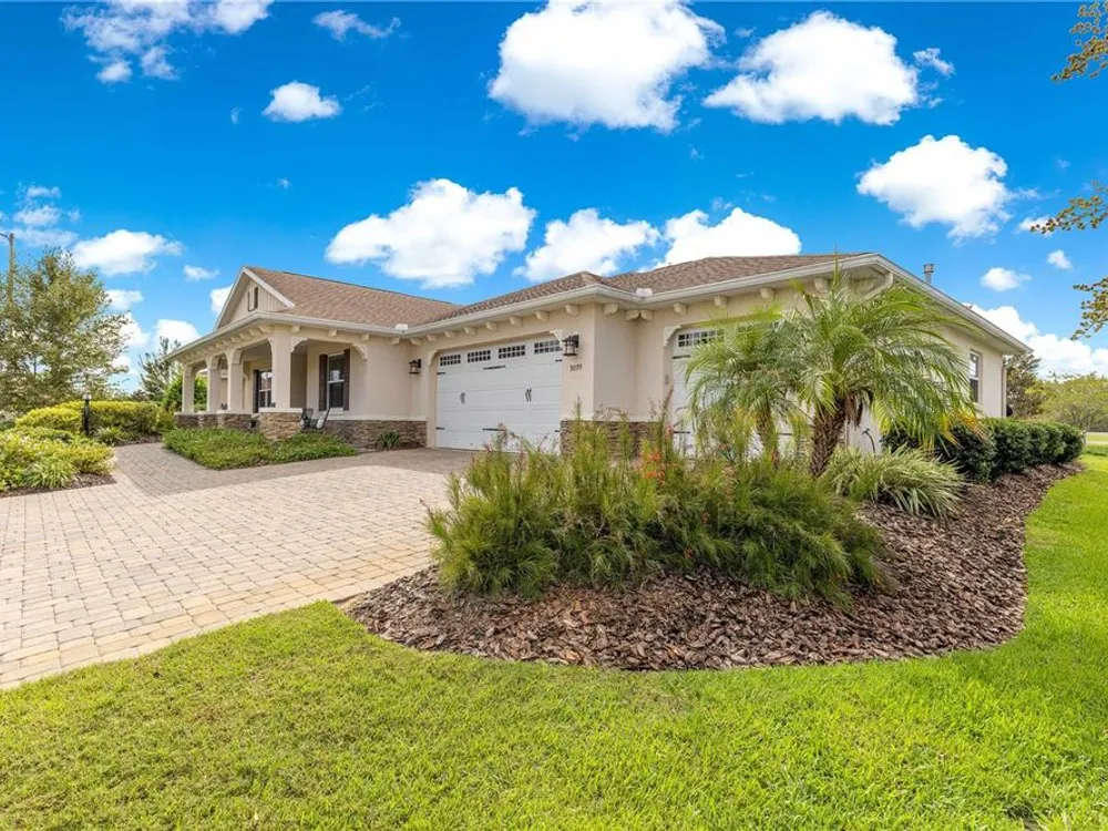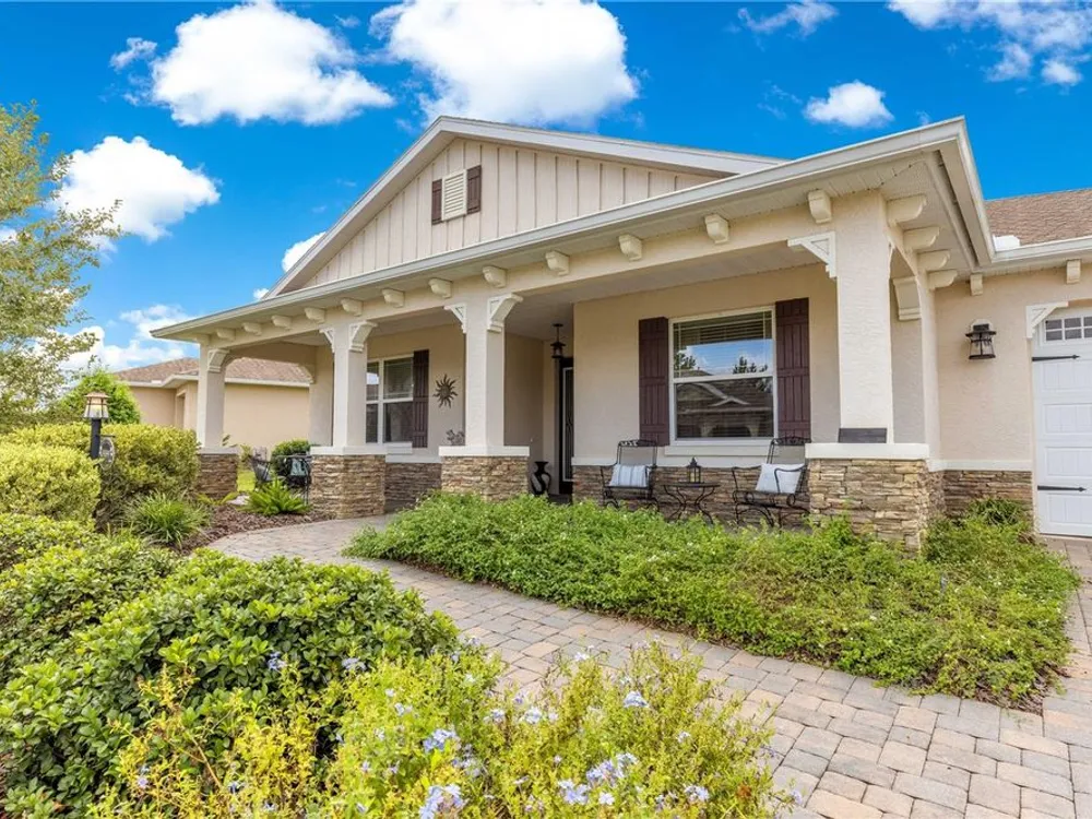 RARE Argyll model on the GOLF COURSE! Welcome to this exquisitely appointed 3-bedroom, 3-bath home in prestigious Candler Hills. This home has that WOW factor from the moment you pull up to the curb. With an upgraded, stone-accented, arts and crafts architectural style, and a large, brick-paver front porch, this home will set the scene for what to expect when you walk in the door. Through the leaded glass front door, you will find an elegant foyer featuring tray ceilings with double crown molding, porcelain tile and wainscoting. This open floor plan is a perfect venue in which to entertain. The light and bright kitchen with a large central granite island is well suited for prep work or breakfast at the counter. The island even has built-in cabinets for additional storage. A Puronics water filtration and softening system ensure the best quality water at your faucets. One of the guest bedrooms features an ensuite, making it ideal for use as an in-law suite or to give your guests the ultimate in privacy. The spacious primary bedroom features a tray ceiling, and the primary bath features a large walk-in shower and dual sinks. The large garage gives you ample room for all your toys. There is even an air-conditioned and heated 210 sq ft office/den/workshop off the garage, making this space suit you no matter what your needs are. The large L-shaped lanai with automatic screens makes the lanai comfortable no matter the weather. The added brick patio outside the lanai is perfect for grilling or enjoying a quiet evening taking in the view. Speaking of the view...this home backs up to the Tortoise and Hare Golf Course, giving you great views and the best in privacy. Whether you are looking for features in the home or location...you can't go wrong with this home. Schedule your private viewing today!