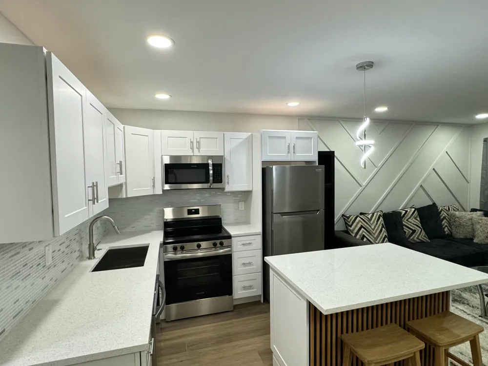 Look no further. YOu will not find a better unit than this one. Completely updated- all new open ktichen with island, custom cabinets with quartz countertops, totally remodeled bathroom, new flooring and paint, new fans, new recessed lighting, new doors, hardware, baseboards, outlets, absolutely immaculate,... This is a must see.