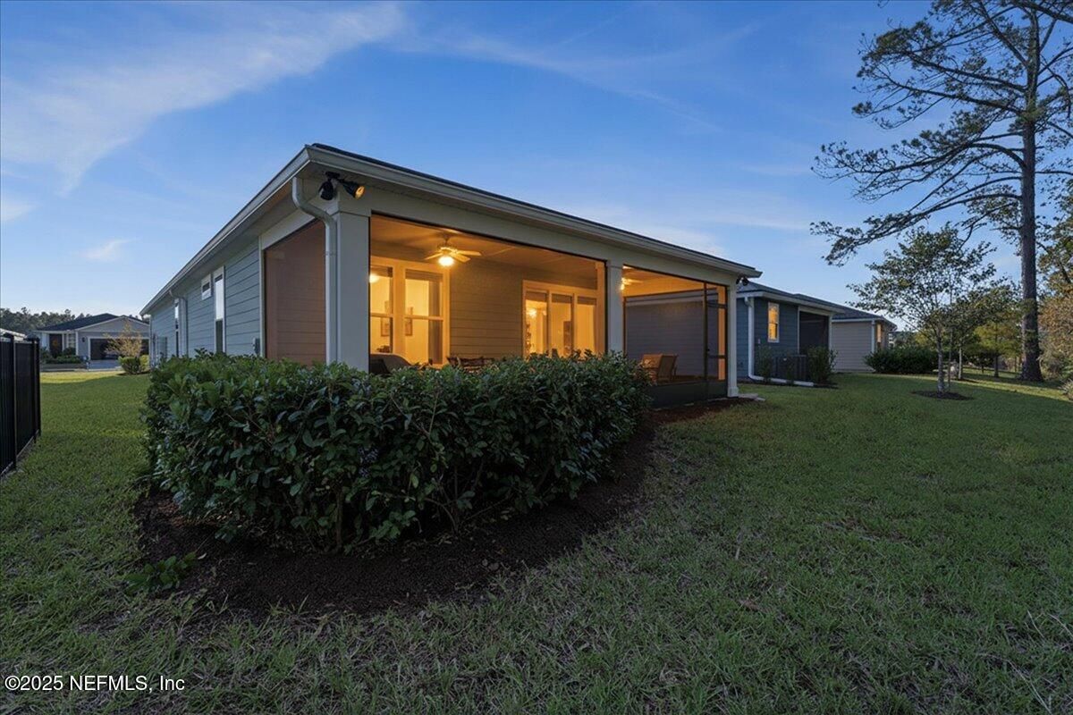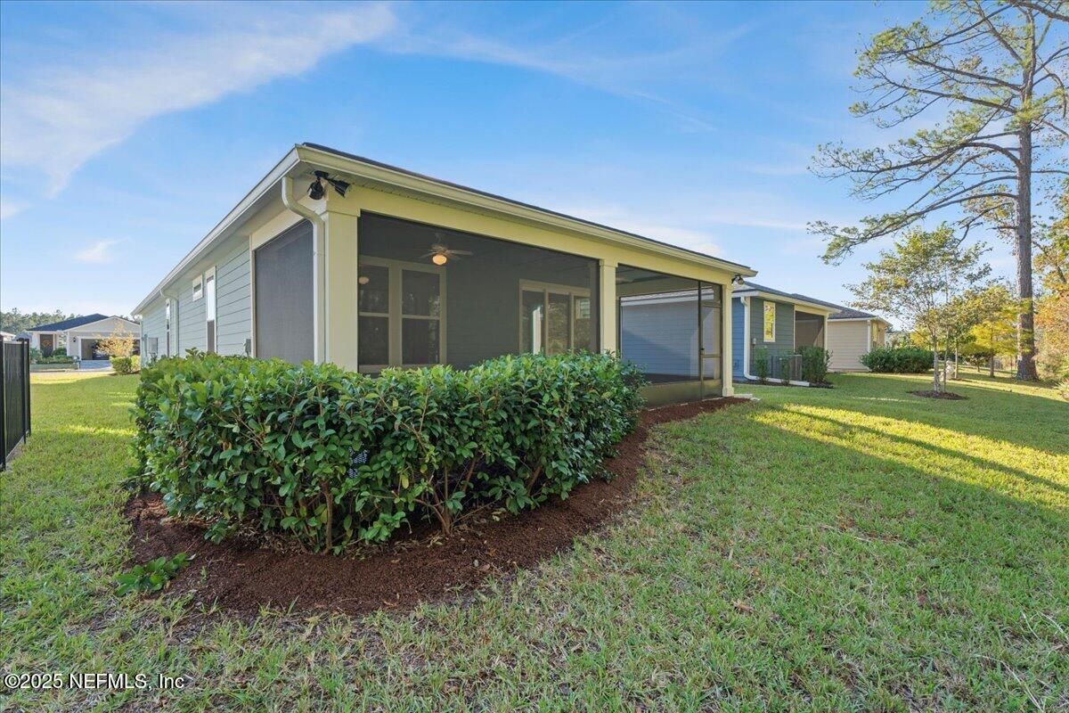 Welcome to luxurious resort-style living in Summer Bay at Grand Oaks, an exclusive 55+ gated community. This nearly new home is perfectly situated on a premium preserve lot, offering privacy, tranquility, and a beautiful natural backdrop. The seller is offering a 1% closing cost incentive with an acceptable offer. Thoughtfully designed with extensive upgrades, this residence blends modern elegance, smart home technology, and exceptional outdoor living. The inviting open floor plan features two bedrooms, two baths, and a versatile flex room ideal for a home office or creative space. The gourmet kitchen is a chef's dream with 42-inch soft-close cabinetry, rollout trash bins, quartz countertops, and stainless steel appliances. Adjacent to the kitchen, the spacious living and dining areas flow seamlessly to an extended screened lanai overlooking the peaceful preserve—perfect for relaxing or entertaining. The owner's suite offers a spa-inspired bath with a step-down frameless glass shower, bench seating, dual showerheads including a handheld option, upgraded cabinetry with soft-close drawers, and dual undermount sinks. The second bath features similar high-end finishes with a frameless glass shower. The flex room is designed for comfort and productivity with insulated interior walls, solid double doors, LED lighting, and media outlets. Additional highlights include a four-foot extended two car garage with fluorescent lighting and keyless entry, a smart home security system, a water softener system, whole house gutters, in-wall TV chase tubing in the living room and primary suite, a built-in pest control system, and full irrigation with a Wi-Fi-enabled controller, Irrigation water is drawn from the lake so unmetered and no cost. The laundry room comes complete with a washer and dryer, along with an optional gas hookup for the dryer. Residents of Summer Bay enjoy world-class amenities designed for active adults, including a clubhouse with entertainment and fitness facilities, a resort-style heated pool and spa, pickleball and bocce courts, a firepit, dog park, walking trails, and community garden plots available for leaseperfect for growing your own vegetables and flowers. Residents also have access to the master community amenities, which include a clubhouse, fitness facilities, resort style pool, pickle ball and bocce ball courts, large dog park, activities lawn, walking trails, fire pit, and much more! Current taxes are not yet homesteaded. This home is conveniently located just minutes from historic downtown St. Augustine, the pristine beaches, I-95, shopping, and top-rated medical facilities.