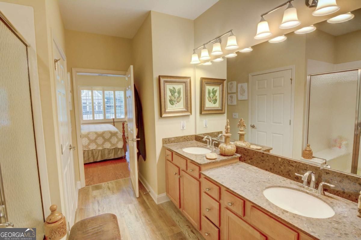 NEW LISTING in The Orchards of Brannon Oak over 55+ Active Adult Community- Forsyth Taxes. 3 Bedrooms, 3 Baths, Open Floor Plan, Hardwood loors Main Level, Guest Bedroom & Primary on Main, Great Room, Sunroom, Kitchen with Large Walk-in Pantry, Laundry Room & Dining Area. Upstairs offers Bedroom w/ Sitting ARea, Closet, Full Bath & Walk-in Attic. Plantation Shutters throughout. 2 Car Garage & Laundry Room w/ Sink. Walk to Mailbox. Clubhouse. Close to GA 400, Collection, Shopping, Restaurants, & Medical/Hospital.