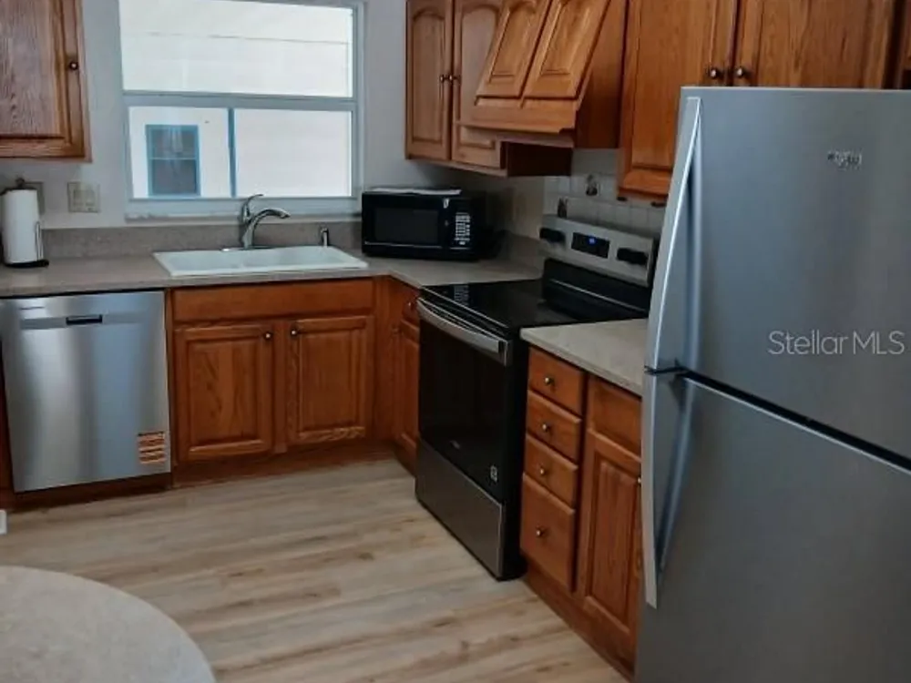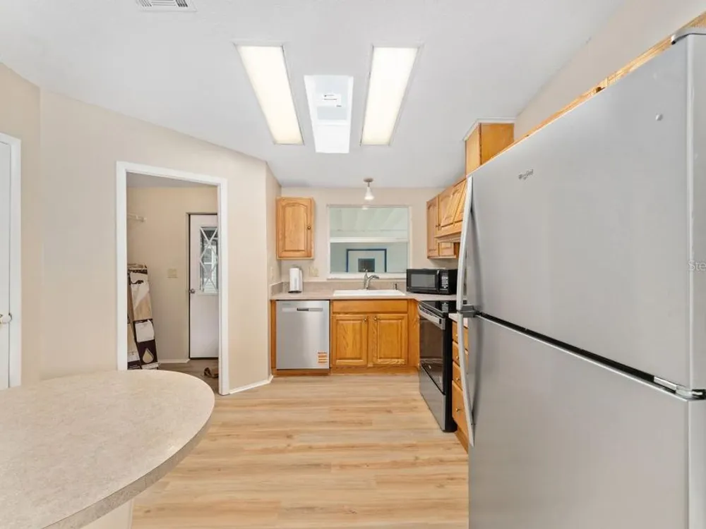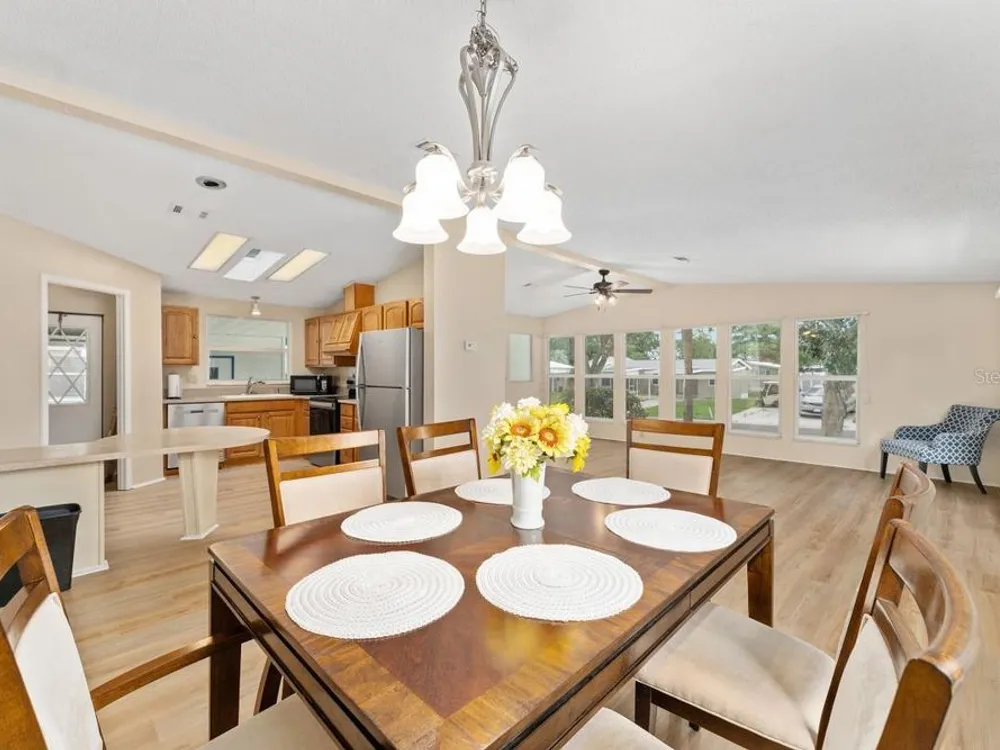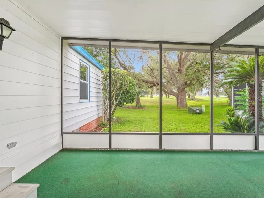 Lowest renovated golf course home in The Villages! Lovely 2 bedroom 2 bath manufactured home situated on Hole 12 of the Orange Blossom Gardens Golf Course offering stunning views and direct access for golf enthusiasts. Home features new roof, new vinyl plank flooring, new carpeting in bedrooms, new toilets, new ceiling fans, interior painting and new washer and dryer 2025. A/C 2016 and newer windows so you can be worry free for years to come! No bond! Excellent location. Close to shopping, restaurants and hospital. Must see!!! All brand new stainless steel appliances in the kitchen. New sprinkler system. Move in ready...just bring your toothbrush!