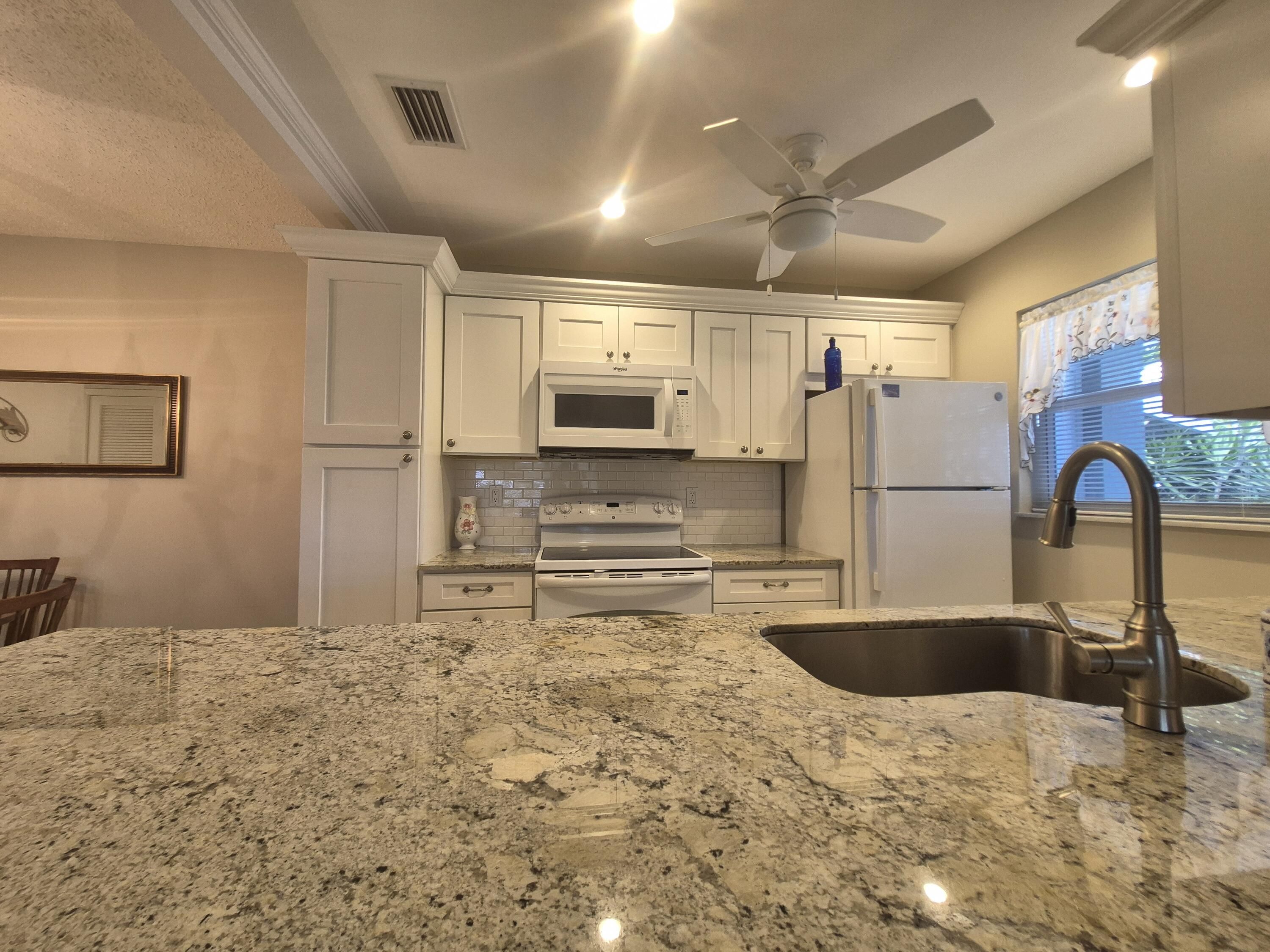 :Beautifully updated 2-bedroom, 2-bath corner villa in the 55+ community of High Point Delray. This light-filled home features an open and inviting layout, perfect for entertaining. The remodeled open kitchen includes shaker-style cabinets, granite countertops, modern finishes, ample counter space and lots of drawers for the at home chef. Both bathrooms have been renovated, showcasing sleek tile work and glass-enclosed showers. Additional highlights include impact windows throughout for safety and efficiency, spacious bedrooms with great closet space, and a Florida sunroom ideal for lounging or a home office. Enjoy the quiet setting with a large yard. Positioned across the street to the Clubhouse and Pool. Located just minutes from downtown Delray, shopping, and beaches. Schedule today!!