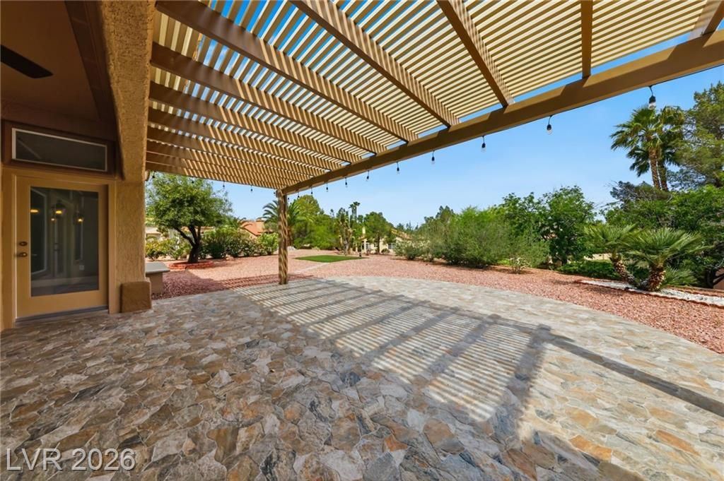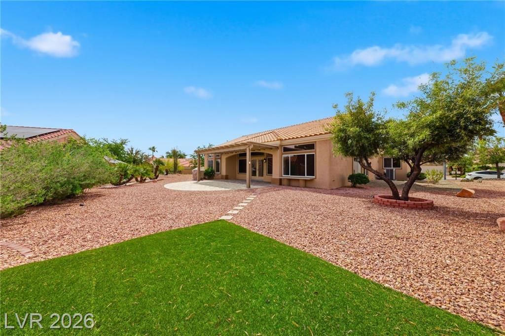 GREAT LOCATION ~ Walk to the Community Center and Swimming Pool. Remodeled Expanded Hancock Model 2,000 sq. ft. on a Rare ¼-Acre Corner Lot in Sun City Summerlin. Move-In Ready ~ 3 Bedrooms, 2 Baths, (3rd bedroom or an Office). Open-Concept Great Room Flows into Spacious Living and Dining Areas. Upgraded Kitchen features Stainless Steel Appliances, Granite Countertops, a Breakfast Bar, and a Nook. High-End Tile Flooring, Fresh Paint, and Updated Lighting Throughout. New A/C and Furnace, Security Doors, and a Beautiful Leaded Glass Door Entry. Private Backyard with Extended Patio. 774 sq. ft. 3-Car Garage with Epoxy Floors. Enjoy All the Sun City Summerlin 55+ Community Amenities ~ 4 Community Centers, 3 Golf Courses, 5 Swimming Pools (3 Outdoor and 2 Indoor Pools), 3 Exercise Facilities, Tennis Courts, Pickle Ball Courts, Senior Softball League, 312 Seat Starbright Theatre with Live Entertainment, Social Card Clubs, and More! ~ Insist On Enjoying Life ~ Live Like You Are on Vacation!