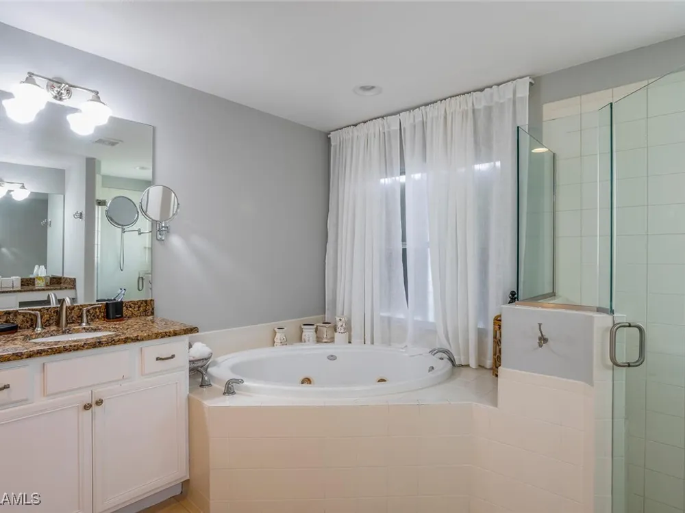 - Bathtub, Coffered Ceiling(s), Dual Sinks, Other, Separate Shower, Cable TV, Walk-In Closet(s), Window Treatments, High Speed Internet, Home Office