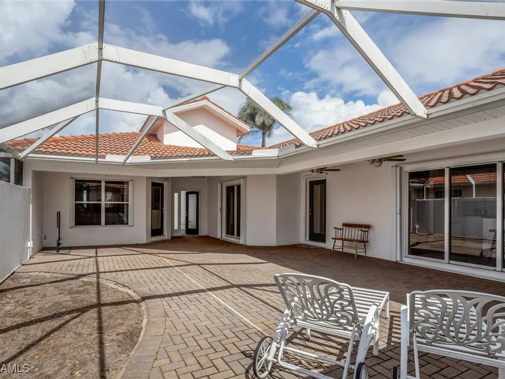 Beautifully maintained 3-bedroom, 3-bath “Villa Garcia” model featuring a gorgeous lake view and lush, upgraded landscaping on a premium southwest-facing lot in one of Estero’s most desirable gated communities. Built by Toll Brothers, this elegant courtyard home showcases numerous upgrades, newer appliances, and a layout that perfectly blends indoor and outdoor living. A separate guest cabana off the courtyard provides an ideal retreat for visitors — complete with a private bedroom, full bath, and small refrigerator. Offered completely furnished and ready for your immediate enjoyment, this home allows for an easy and seamless move-in experience. Enjoy peace of mind with impact-resistant windows in the dining area and primary suite, along with impact glass doors at the front and living room entries. The Reserve at Estero offers a vibrant resort-style lifestyle with an 8,000-sq.-ft. clubhouse, fitness and aerobics center, game and billiards rooms, resort-style pool and spa, tennis courts, sports court, and playground. Conveniently located near premier shopping, dining, golf courses, Southwest Florida International Airport, and the Gulf beaches, this home is ideal for anyone ready to make a smooth transition to life in SWFL.