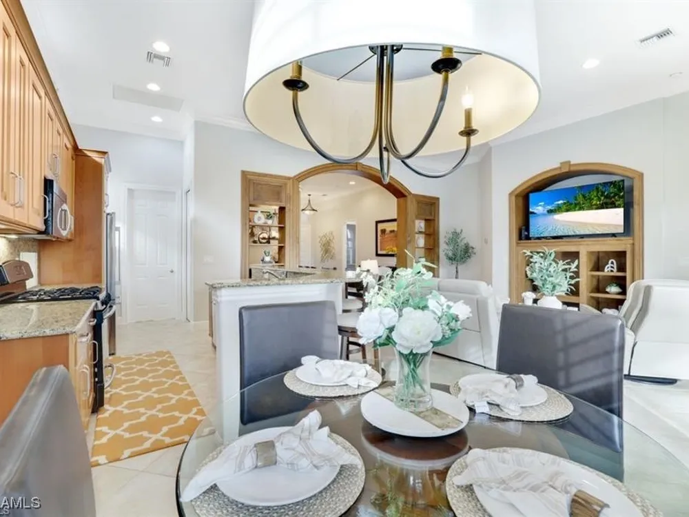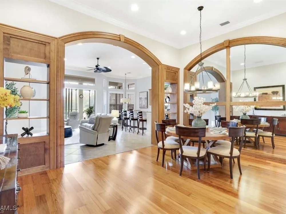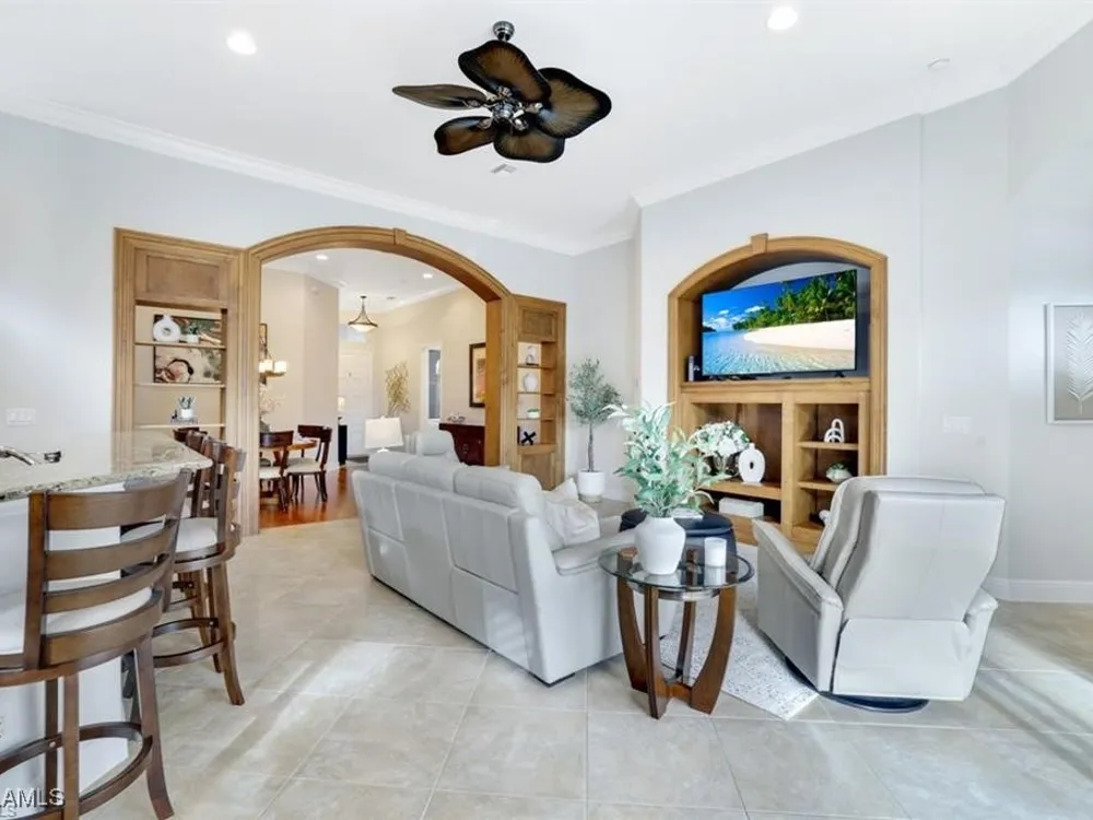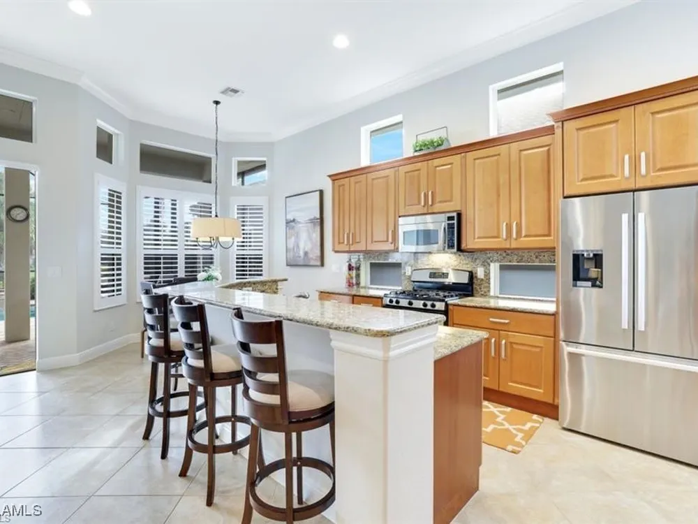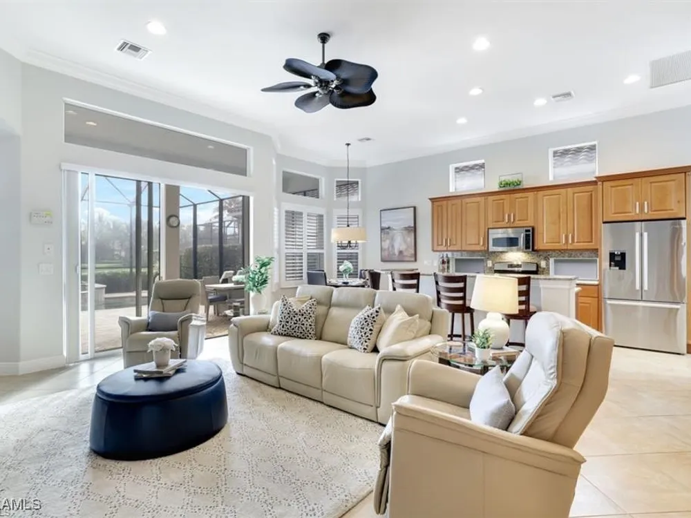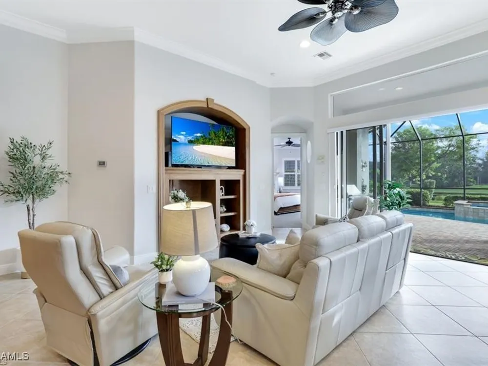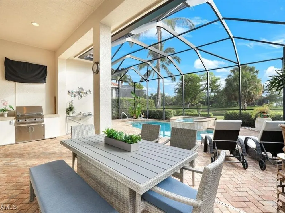 BEST VALUE IN FIDDLER’S CREEK! Over $250K in price improvements making this one of the most exceptional opportunities in this highly desirable resort-style community. Experience upscale living without the premium price tag in this beautifully furnished, professionally decorated, lakeside retreat. This elegant 3-bedroom, 2-bath home blends timeless design with modern comfort, offering breathtaking lake views and a private saltwater pool and spa for true resort-style living. Inside, the open floor plan showcases custom built-ins, crown molding, and rich woodwork, complemented by tile and wood flooring throughout. The chef-inspired kitchen features Italian cherry cabinetry, granite countertops, a breakfast bar, built-in desk, pantry, and top-tier stainless steel appliances—a perfect balance of form and function. The primary suite is a serene sanctuary with dual sinks, soaking tub, and walk-in shower, while the screened lanai invites you to unwind or entertain with a full outdoor kitchen, sparkling pool, and soothing spa, all set against tranquil lake vistas. Additional features include plantation shutters, a whole-house 22KW generator, and an air-conditioned garage. Within the prestigious Fiddler’s Creek community, enjoy world-class amenities including a fitness center, tennis, pickleball, bocce, spa services, sauna, steam room, fine dining, and a resort-style pool. Optional golf, beach, and marina memberships enhance the lifestyle. Conveniently located near Marco Island and downtown Naples, this home delivers the ultimate in Florida luxury living—at an unbeatable value.