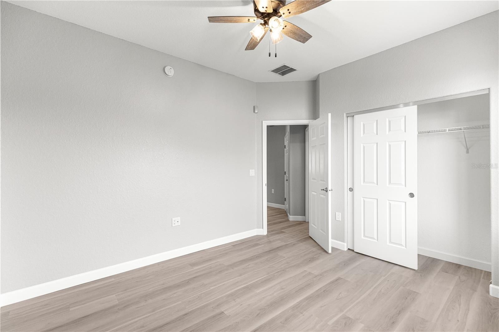 - Ceiling Fan(s), Eat-in Kitchen, High Ceilings, In-Wall Pest Control, Living/Dining Room, Open Floorplan, Main Level Primary, Solid Surface Counters, Thermostat, Walk-In Closet(s), Window Treatments