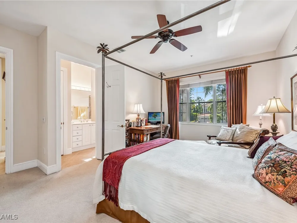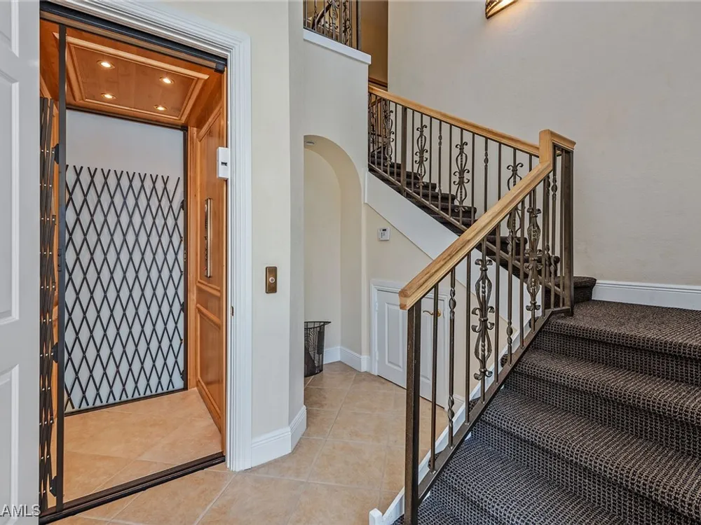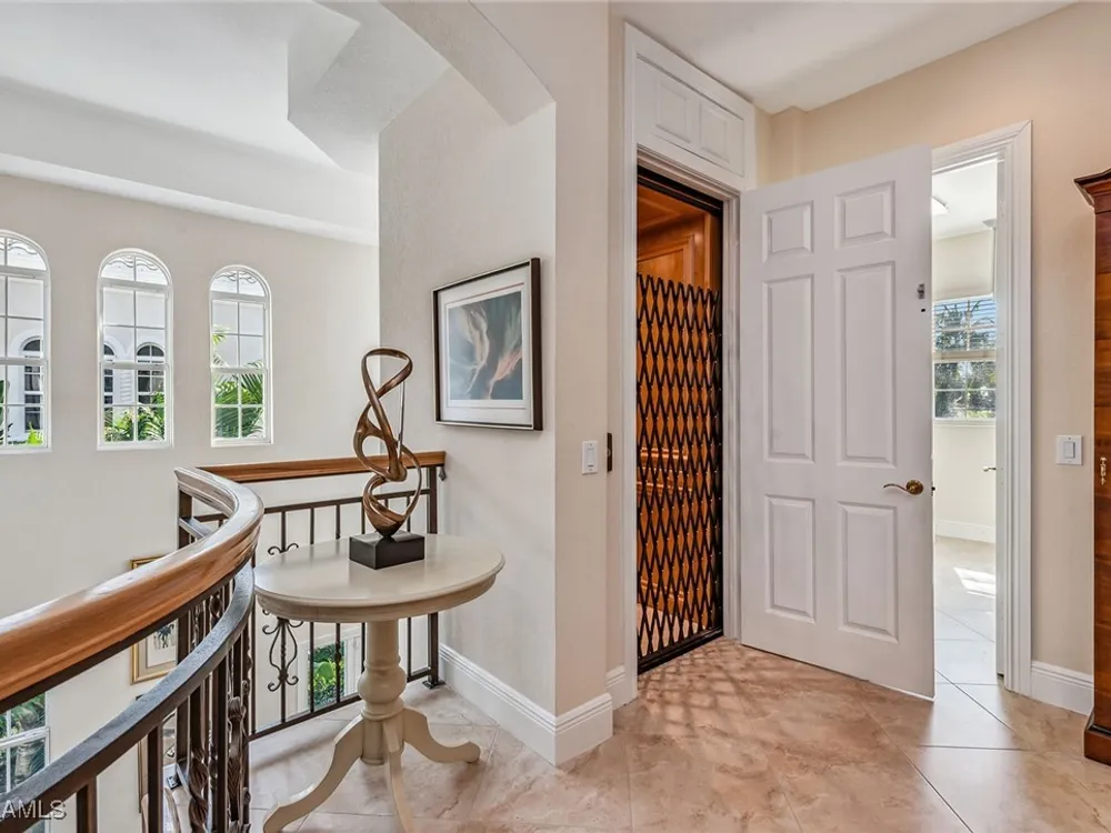 Discover refined luxury in this exquisite second-floor end residence located within the highly sought-after double-gated enclave of Cascada in Fiddler’s Creek. Offering 3,010 square feet of beautifully designed living space with soaring 10-foot ceilings, this exceptional coach home lives like a single-family residence while providing the convenience of coach home living including a private, upgraded elevator and an attached two-car garage with an extended driveway for guests. The thoughtfully designed split-bedroom floor plan features three spacious en-suite bedrooms, a den with French doors ideal for a study or home office, three full baths, and a separate laundry room with utility sink, cabinetry, and Samsung appliances. The owner’s suite, accessed through double privacy doors, showcases plantation shutters, dual custom walk-in closets, and a luxurious bath with his-and-hers vanities, a soaking tub, private water closet, and a stone-tiled walk-in shower with frameless glass enclosure. The open kitchen is fitted with granite counters, quality wood cabinets, a built-in pantry, and stainless appliances under extended warranties, including a natural gas cooktop, French door refrigerator with ice/water dispenser, microwave, and a newer dishwasher. The guest rooms are large, with one easily utilized as a secondary primary suite. The expansive wraparound screened lanai, accessible from the owner’s suite and multiple living areas through three sets of sliding glass doors, provides sweeping golf course and lake views. Complete with tile floors and electric storm shutters, this outdoor retreat is ideal for morning coffee, family dinners, evening cocktails, or colorful sunsets. Additional highlights include 3M film on windows for enhanced security and UV/weather protection, gorgeous landscaping and a community pool exclusive to Cascada residents. Fiddler’s Creek offers world-class amenities, including an impressive clubhouse, state-of-the-art fitness center, resort-style pools, a vibrant pickleball and tennis program with 6 Har-Tru courts and 10 new pickleball courts, bocce, spa services, sauna, steam room, hot tub, and both casual and fine dining venues. The active social calendar features extensive clubs, classes, and events for all interests. Golf memberships are available with no wait and include a newly renovated course and spectacular new clubhouse, while optional Tarpon Club memberships offer beach and marina privileges. Miles of scenic sidewalks invite walking, running, and cycling. The CDD is fully paid, and this residence has been meticulously maintained by its original owners. Perfectly located between downtown Naples and Marco Island, this exceptional home is minutes from the executive airport, bird sanctuaries, kayaking, shopping, restaurants, and all of SWFL’s best attractions. Just outside the gates, you will find Publix, hair and nail salons, a dentist, urgent care, and a health café, adding to the easy, luxurious lifestyle.
