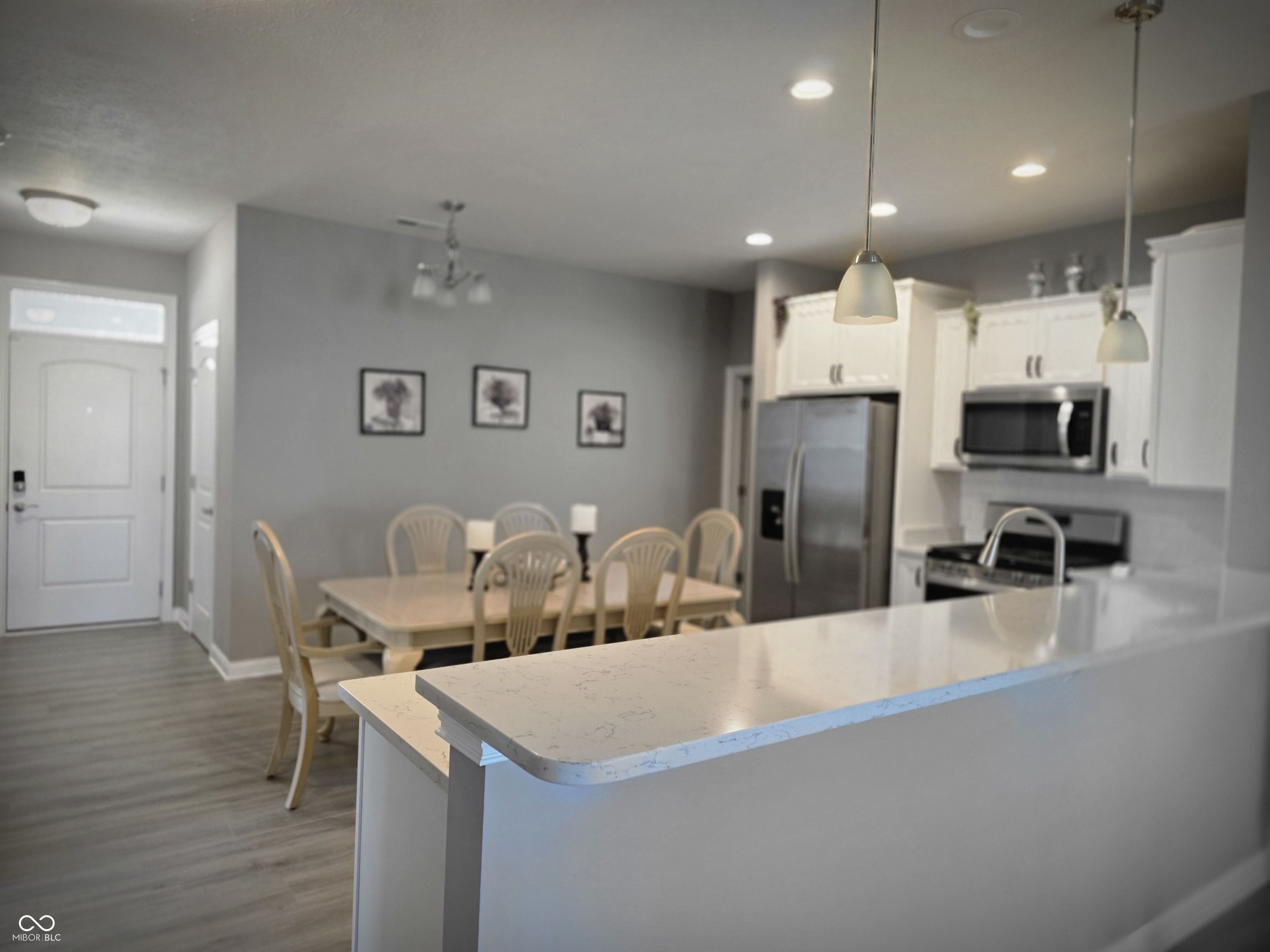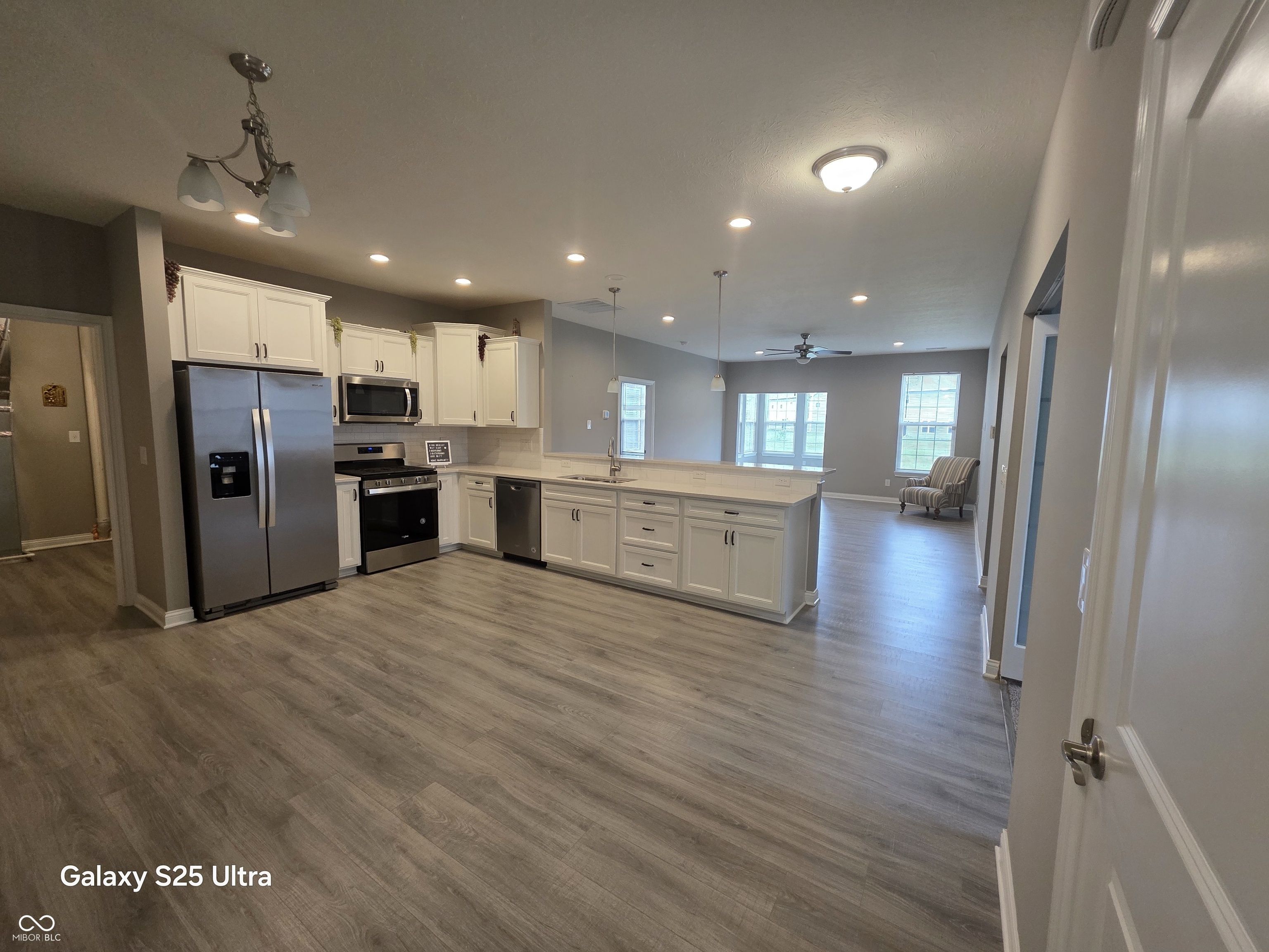 Welcome to this move-in ready 3 bedroom, 2-bath ranch located in Regency Reserve, a quiet 55+ community in Avon. The HOA fees include lawn care and snow removal. This low-maintenance paired patio home has over 1800 square feet. The split floor plan provides privacy, with the primary bedroom offering a full bath, double vanity with granite countertops, walk-in shower with bench and a spacious walk-in closet. The house also includes a great room-perfect for both daily living and entertaining, den/office/flex room, laundry room, covered porch, open patio and an oversized 2 car garage. The bright 4-seasons sunroom adds extra living space year round. Other features include a kitchen with staggered cabinets, quartz countertop, pantry, breakfast bar with seating for 4, large eat-in kitchen, stainless steel appliances, washer and dryer, an additional refrigerator in the garage, a walk-in closets in each bedroom and ceiling fans. The property is conveniently located near shopping, restaurants, Costco, Walmart, Target, Hobby Lobby and IU Health Avon. Located approximately 20 minutes from the following locations - Indianapolis International Airport, Indiana University/Purdue University Indianapolis campus, Indianapolis Motor Speedway and Eagle Creek Park and Golf Course. This property is NOT located in a flood plain and DOES NOT require flood insurance.