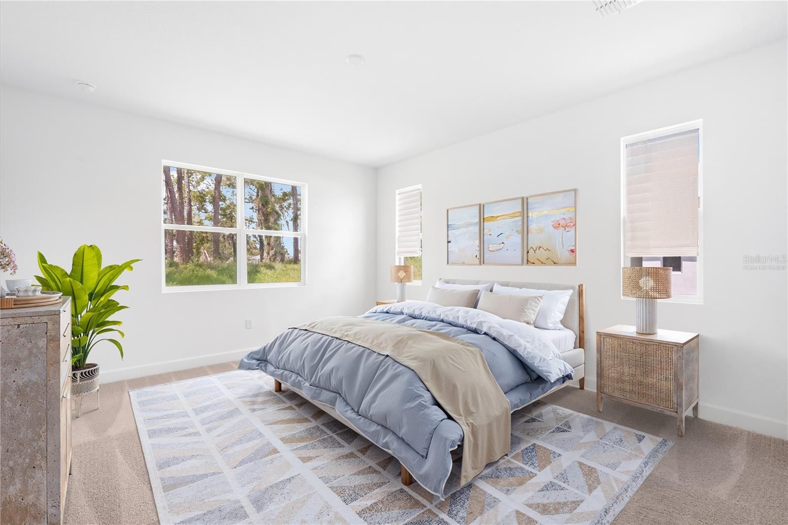 - High Ceilings, Open Floorplan, Other, Solid Surface Counters, Split Bedrooms, Walk-In Closet(s)