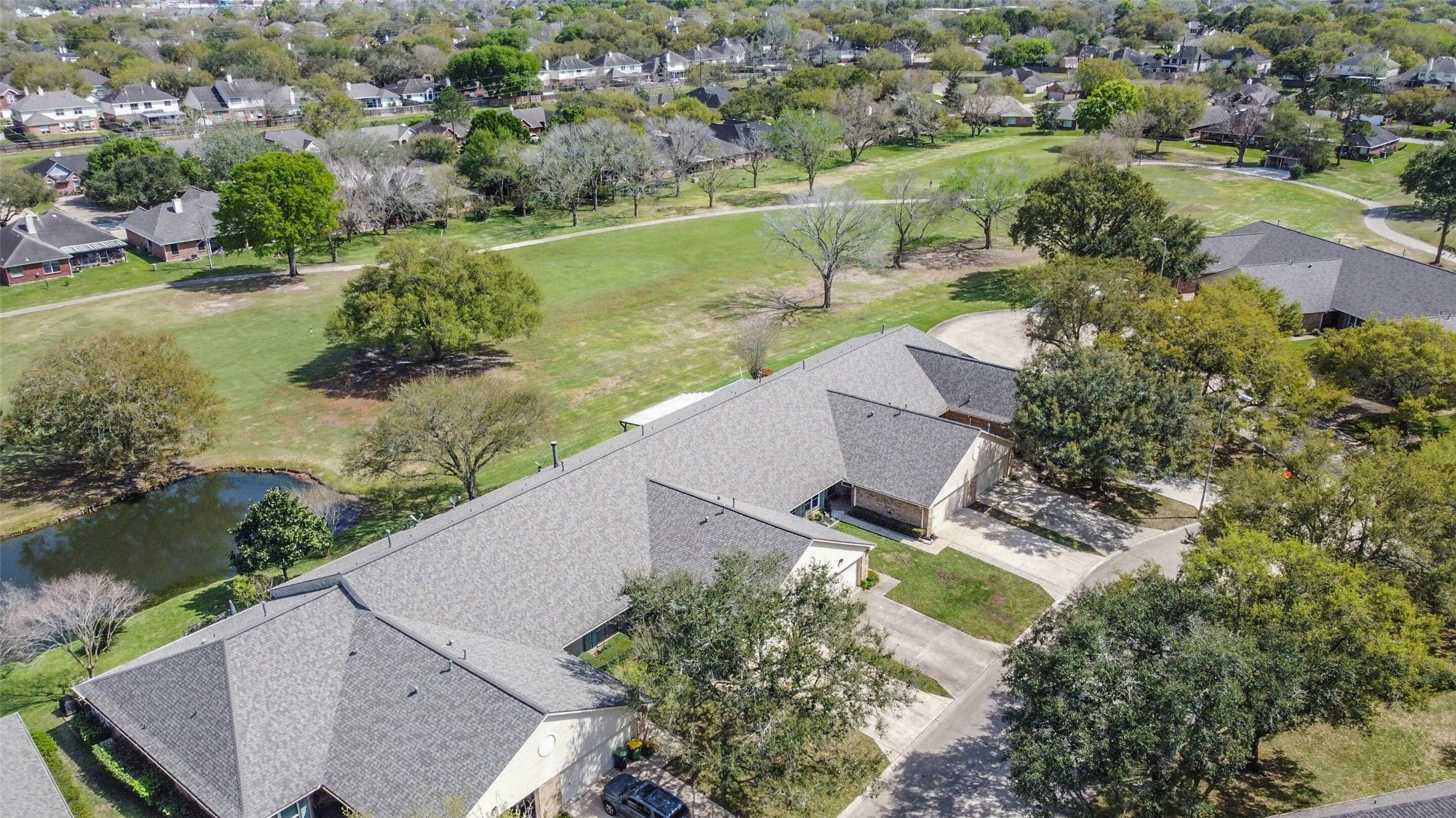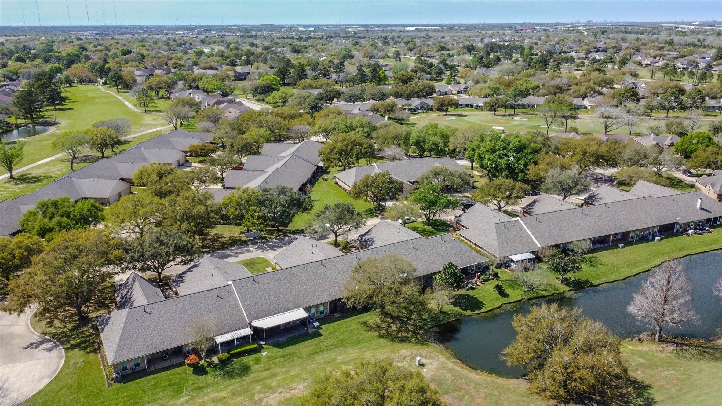This one-story townhome overlooks the serene pond and golf course . This home is in the 55+, gated community of Country Place in Pearland. This cozy townhome features 2 spacious bedrooms and 2 baths, a walk-in shower with soaking tub in primary bathroom and a covered patio in the back overlooking the golf course that's perfect for relaxing. This townhome has a corner fireplace and custom shelving in living room. It is approximately 10 minutes from Pearland Town Center, HEB, restaurants, shopping, and entertainment and is close to the Pearland and Houston Medical Center. The community itself offers lots of planned amenities such as a pool & sauna, tennis courts, pickle ball court, gym and various activities/social events at the Carriage House. You don't want to miss this one!!