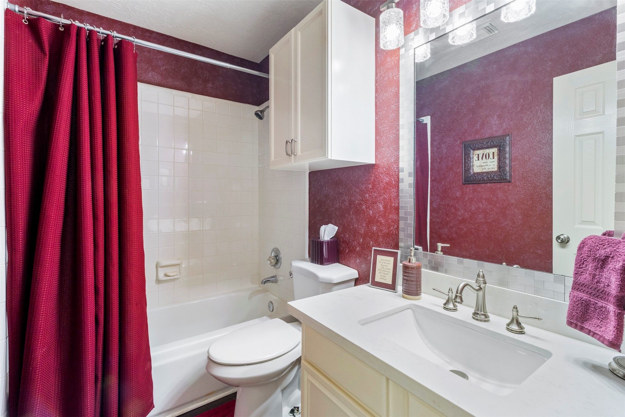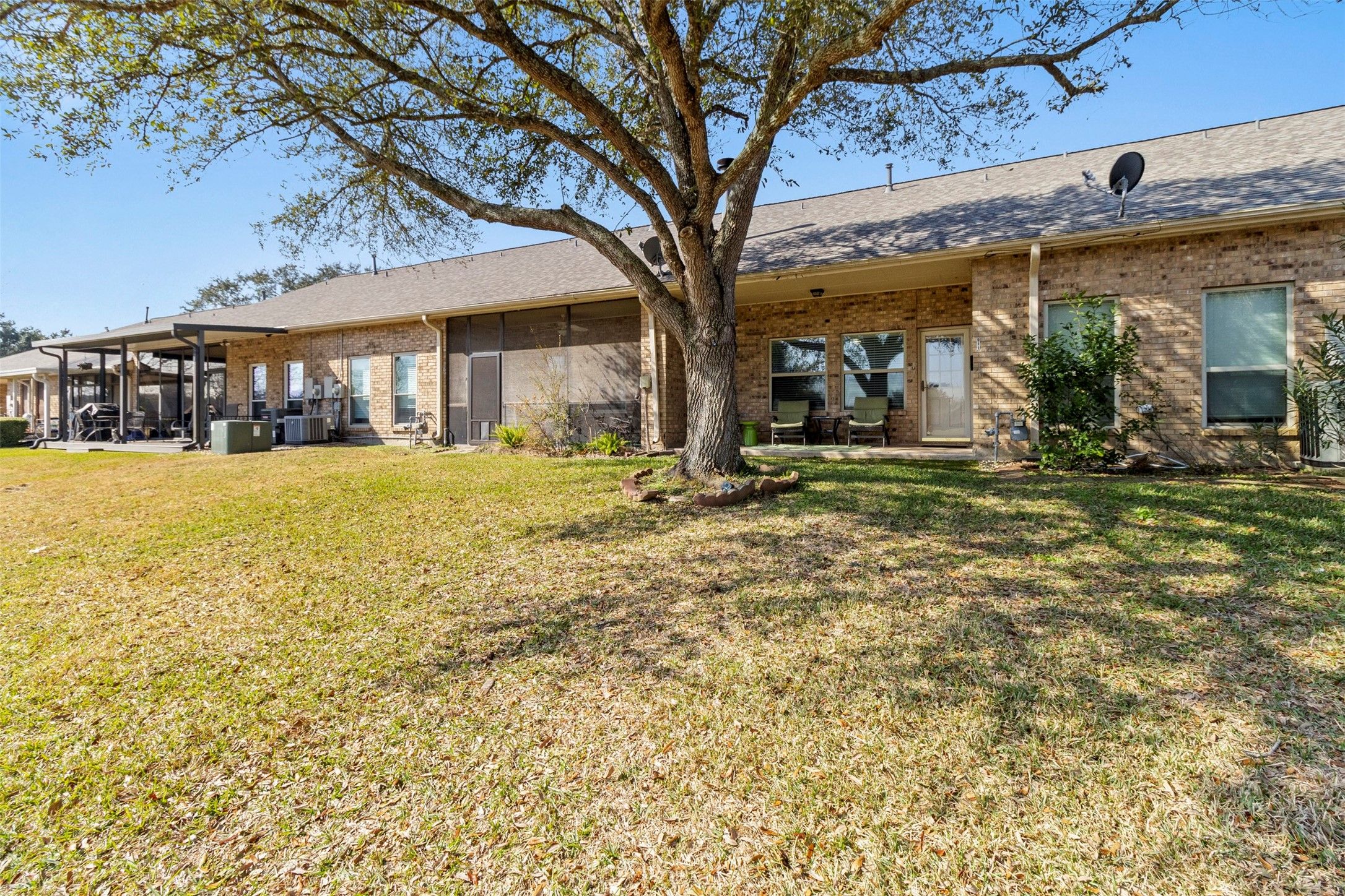 This one-story townhome overlooks the golf course and lake in the desirable 55+ gated community of Country Place in Pearland. It features 2 spacious bedrooms and 2 full baths, including a custom walk-in handicap-accessible shower in the primary suite. The updated kitchen offers quartz countertops, breakfast bar, stainless steel appliances, and ample cabinet space. The large family room with corner fireplace opens to a covered patio with beautiful golf course views. Updates include PEX re-piping, new water heater, new garage door opener, new attic access door, fresh interior paint, new light fixtures, laminated wood flooring in main areas, and updated carpet in bedrooms. Enjoy community amenities including pool, tennis courts, clubhouse, gym, and social events. Convenient to Pearland Town Center, HEB, dining, and the Medical Center. Schedule your showing today