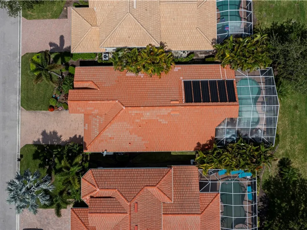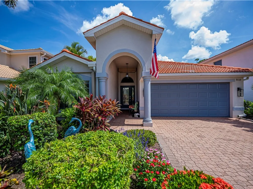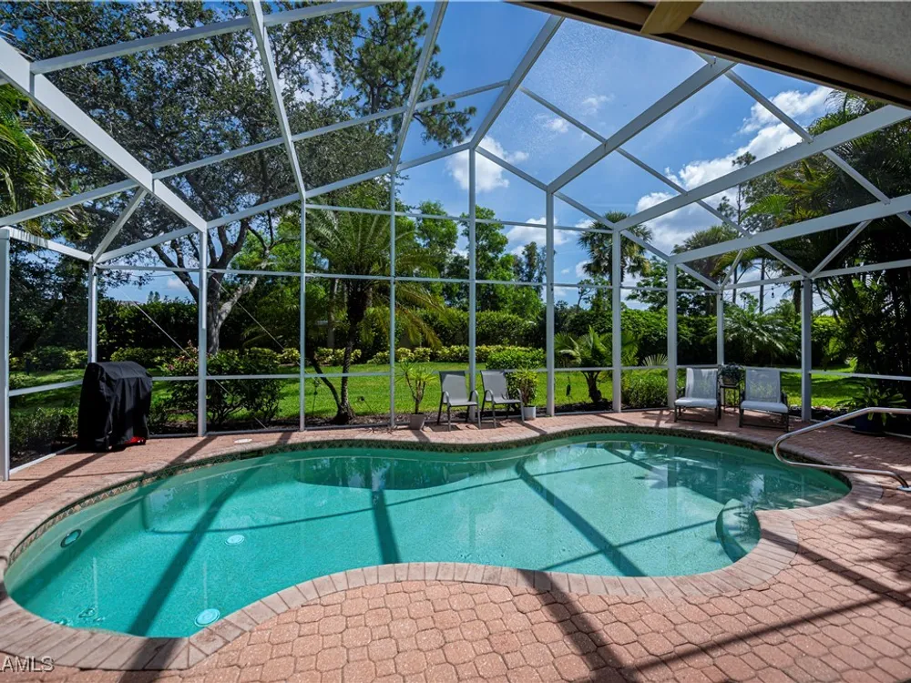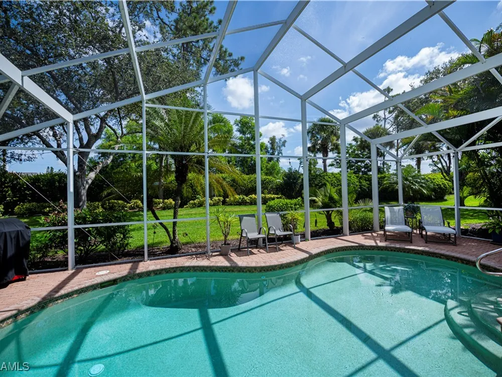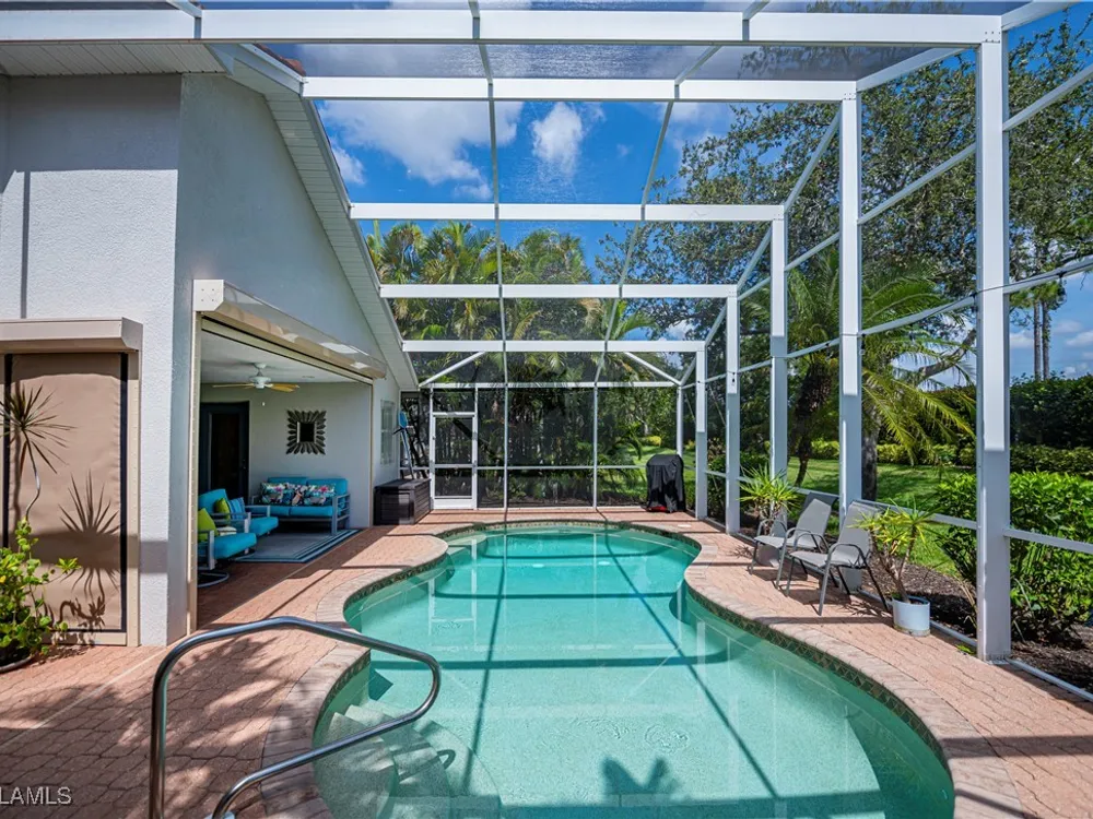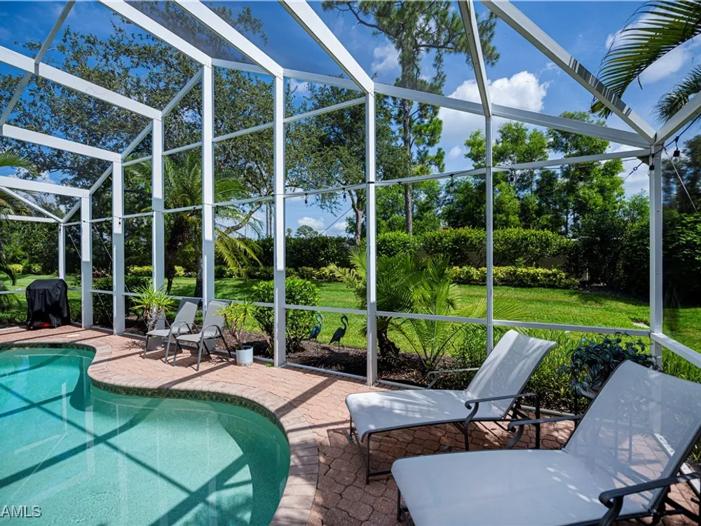 SELLER IS OFFERING TO PAY THE FIRST 6 MONTHS WORTH OF HOA FEES FOR THE NEW OWNERS. Welcome to this meticulous well maintained 2- bedroom plus den home that offers the flexibility of a third bedroom option and 2 1/2 baths. Perfectly located in one of Estero's sought-after gated communities. This residence combines comfort security and a vibrant Florida lifestyle. Inside, you'll find a thoughtfully designed San Rio floor plan with spacious living areas & abundance of natural light. The versatile den can easily serve as a home office, 3rd bedroom, or hobby room. THE HOME FEATURES A 22 KW WHOLE HOUSE GENERATOR INSTALLED in 2023. This home has it all! ELECTRIC HURRICANE SCREENS at the front entrance and back lanai area, 2 additional roll down screens on the back lanai, and accordion shutters on the rest of the home providing year-round storm protection and peace of mind. Step outside to your spacious private screened lanai with brick pavers featuring a solar-heated pool enhanced with a supplemental electric heat pump added in 2023. There is also a dedicated POOL BATH, ideal for outdoor entertaining and convenience. The kitchen features granite counter tops, custom cabinetry, gas stove, stainless steel appliances. Master bedroom has granite countertops, custom cabinetry, separate soaking tub and shower. The Reserve of Estero is a natural gas community and offers an array of amenities, including a club house, community pool/spa, tennis courts, pickleball courts, and a fitness center to name a few all with reasonable HOA fees. Whether you're seeking a full-time residence or a seasonal retreat, this home offers a perfect blend of lifestyle value, and security in one of Estero's most desirable communities. Come make 9110 Astonia way your new home. Furniture is negotiable, allowing you to move in with ease. A list is available on request.