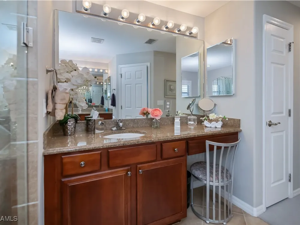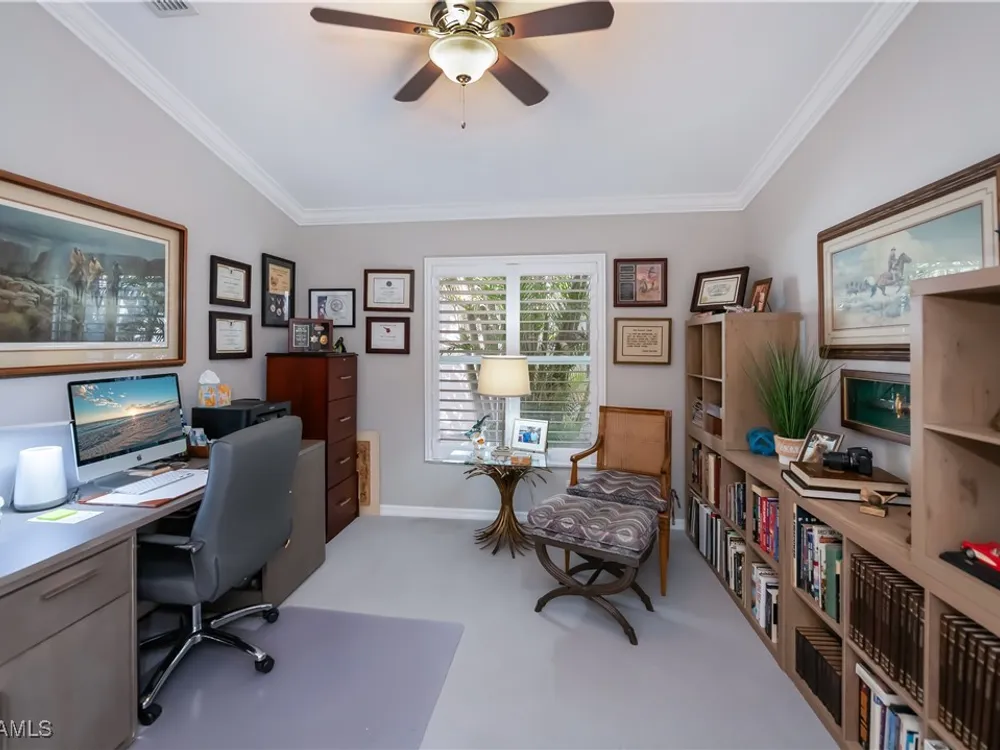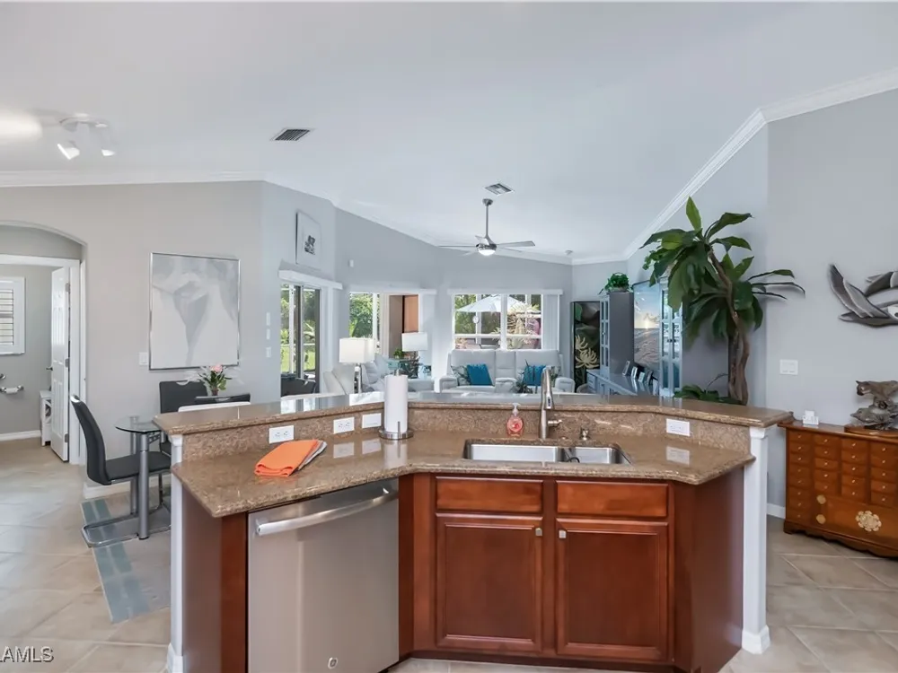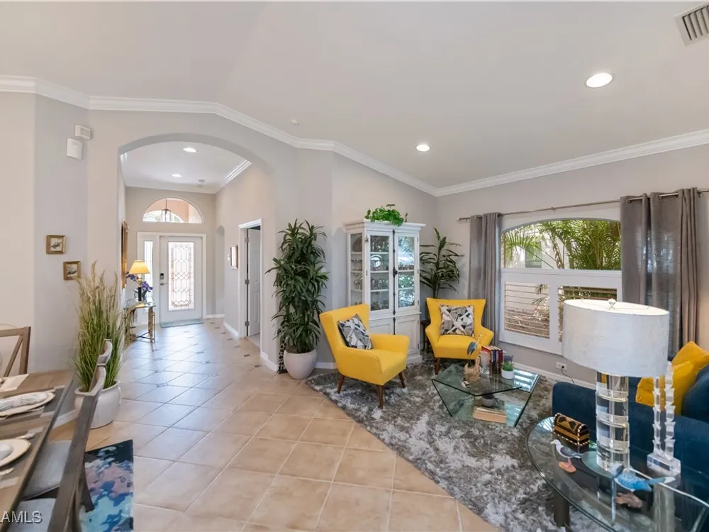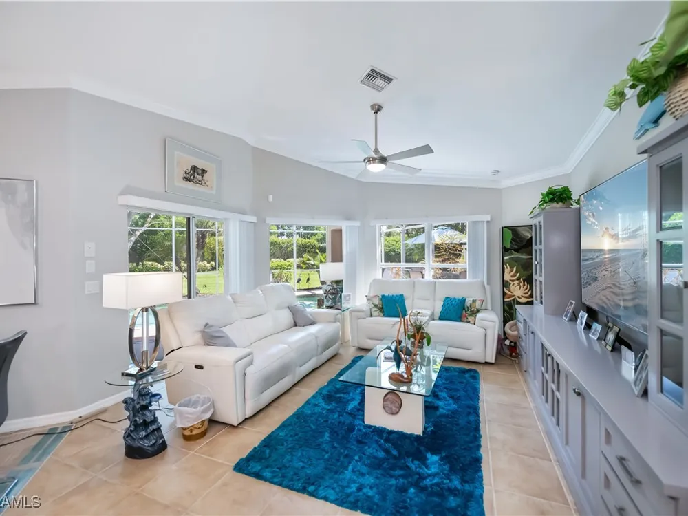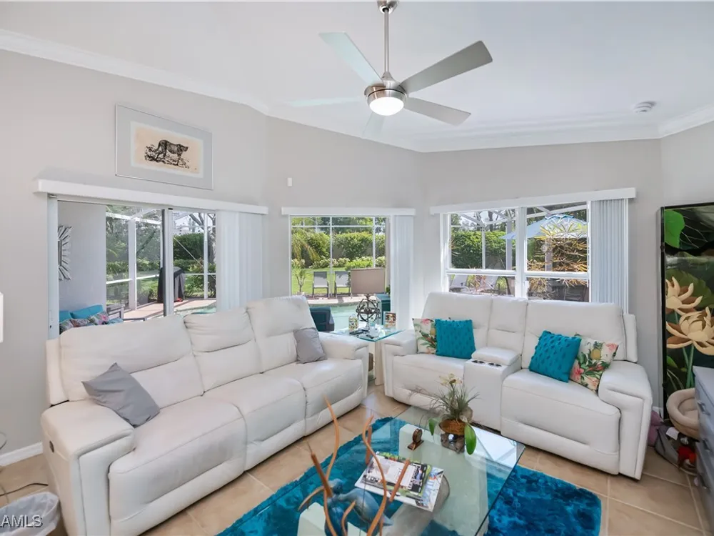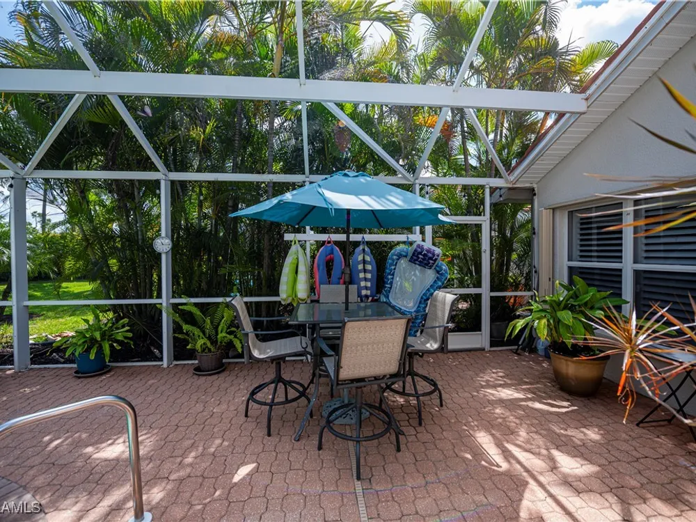 SELLER IS OFFERING TO PAY THE FIRST 6 MONTHS WORTH OF HOA FEES FOR THE NEW OWNERS. Welcome to this meticulous well maintained 2- bedroom plus den home that offers the flexibility of a third bedroom option and 2 1/2 baths. Perfectly located in one of Estero's sought-after gated communities. This residence combines comfort security and a vibrant Florida lifestyle. Inside, you'll find a thoughtfully designed San Rio floor plan with spacious living areas & abundance of natural light. The versatile den can easily serve as a home office, 3rd bedroom, or hobby room. THE HOME FEATURES A 22 KW WHOLE HOUSE GENERATOR INSTALLED in 2023. This home has it all! ELECTRIC HURRICANE SCREENS at the front entrance and back lanai area, 2 additional roll down screens on the back lanai, and accordion shutters on the rest of the home providing year-round storm protection and peace of mind. Step outside to your spacious private screened lanai with brick pavers featuring a solar-heated pool enhanced with a supplemental electric heat pump added in 2023. There is also a dedicated POOL BATH, ideal for outdoor entertaining and convenience. The kitchen features granite counter tops, custom cabinetry, gas stove, stainless steel appliances. Master bedroom has granite countertops, custom cabinetry, separate soaking tub and shower. The Reserve of Estero is a natural gas community and offers an array of amenities, including a club house, community pool/spa, tennis courts, pickleball courts, and a fitness center to name a few all with reasonable HOA fees. Whether you're seeking a full-time residence or a seasonal retreat, this home offers a perfect blend of lifestyle value, and security in one of Estero's most desirable communities. Come make 9110 Astonia way your new home. Furniture is negotiable, allowing you to move in with ease. A list is available on request.