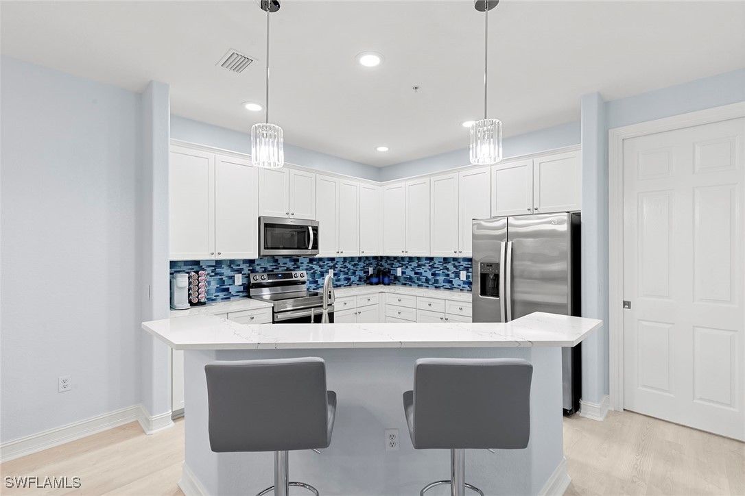 Welcome home to effortless coastal living — where every detail has already been perfected, and all that’s left to do is move in and start enjoying the Florida lifestyle you’ve been dreaming of. Set within the sought-after community of Ole, this beautifully remodeled San Pablo residence combines timeless design with a relaxed, beach-inspired aesthetic. Every inch has been thoughtfully updated — from the new flooring and lighting to the custom tilework and fresh, airy finishes that bring a true sense of calm to the space. Offered turnkey furnished, it’s a rare opportunity to step directly into a professionally designed home without the hassle of sourcing contractors or waiting on renovations. The desirable layout places all three bedrooms and two full baths on the upper level, creating a true retreat above the bustle of everyday life. On the ground floor, the spacious entryway and two-car garage serve as the perfect “landing zone” for the clutter of daily living — pool bags, sandy flip-flops, golf gear — all neatly tucked away before you step upstairs to your private sanctuary. The primary suite feels like a boutique escape, while the guest wing — complete with a pocket door for added privacy — offers a separate haven for family and visitors. The kitchen is a highlight, with crisp white cabinetry, quartz countertops, and a subtle blue backsplash that ties into the tranquil coastal palette. Life at Ole is defined by resort-style indulgence: lounge by the sparkling pool with poolside dining, grab a cone from the community ice cream parlor, or enjoy movie nights at the private theater. With lighted tennis and pickleball courts, a fitness center, and a vibrant calendar of community events, every day feels like vacation. Ideally positioned between Marco Island and downtown Naples, this home offers the best of both worlds — easy access to pristine beaches, fine dining, and endless Gulfside adventure. Professionally remodeled, thoughtfully furnished, and ready for your next chapter in paradise.