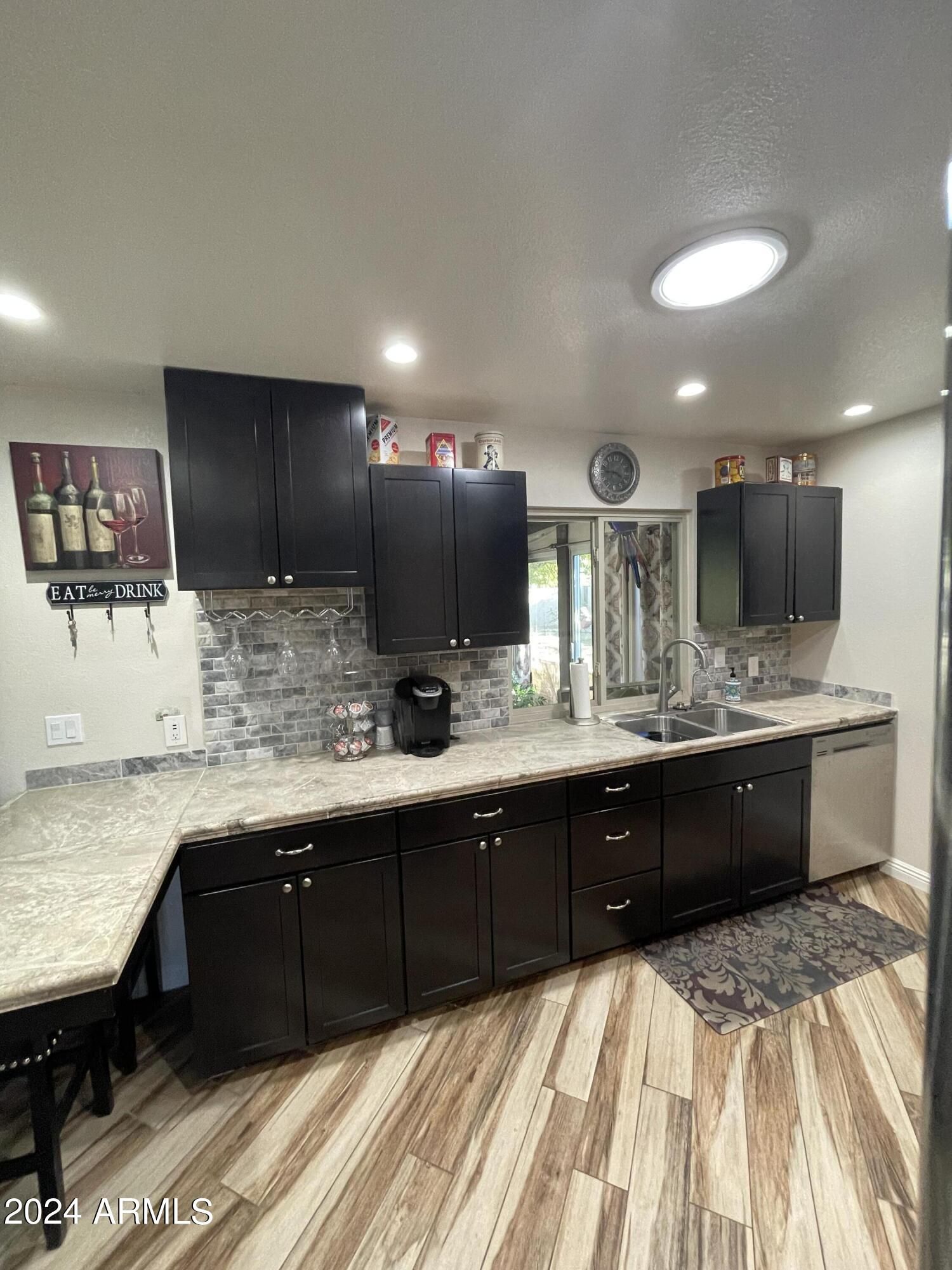 A Short Walk to Palmbrook Golf Course This 3 Bedroom 2 Bath Fiesta model which has been Remodeled & Updated with Inside Laundry has a Open Floor Plan with 10' Ceiling in Living Room - No Popcorn Ceilings or those Old Tub/Shower Combos, Tiled Wood Floors, Vinyl Double Hung Windows, Stainless Steel Appliances, Walk-In Shower, Soaker Tub in Guest Bath, Wood Laminate in Bedrooms, 3 year Old AC, AZ Room on Large Landscaped Lot . Backyard fully Block Wall with Man Gate & Entry Gate - Close to Restaurants, Bars, Golf Courses and Shopping Centers. Excellent Area, Surrounded by Nice Homes.