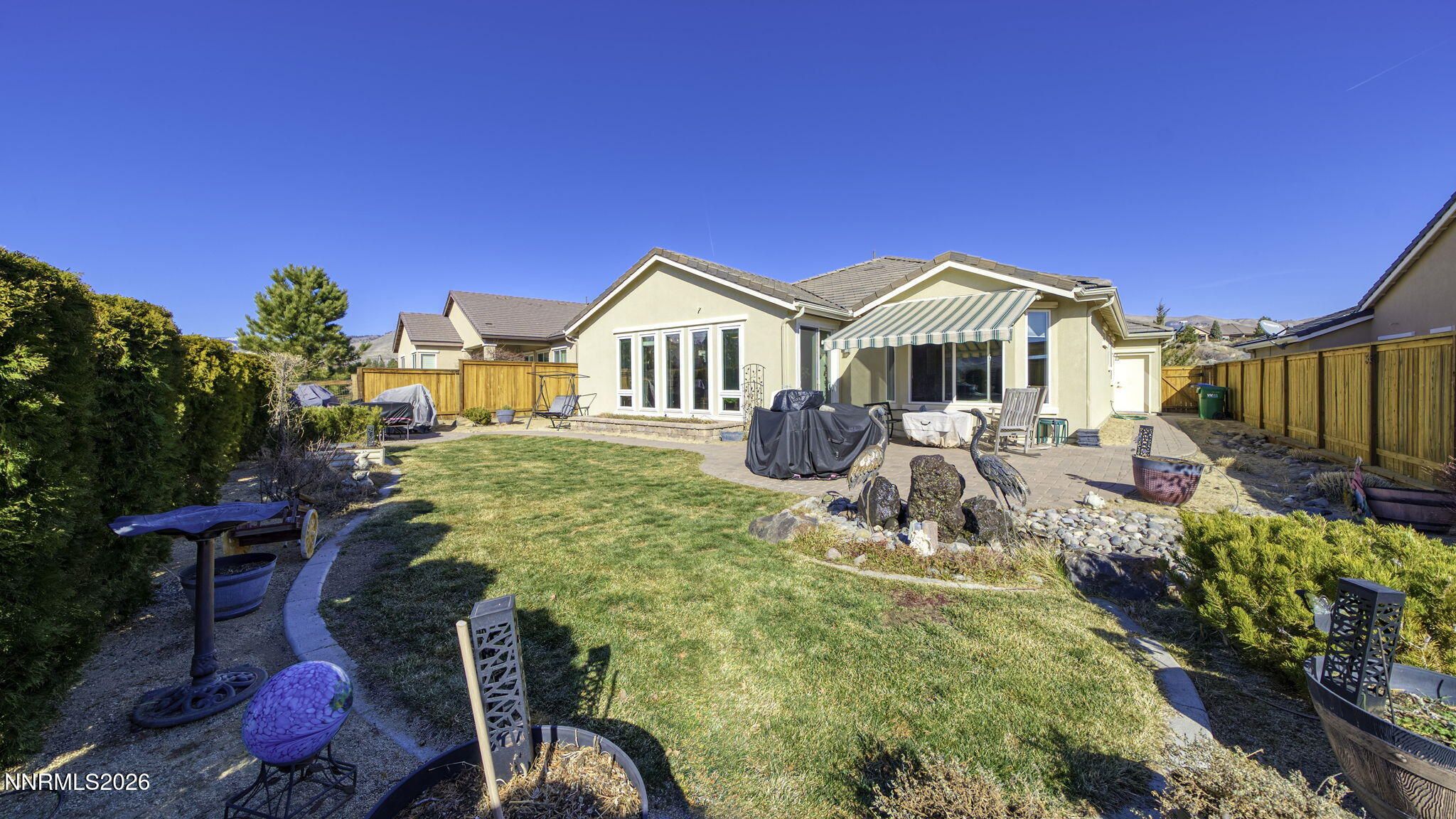 Desirable Full 3 Bedroom Northstar w/ premium view lot! Views of snowcapped mountains, great sunsets, no rear neighbors, open green belts. Great Rm w Hearth extension & Gas fireplace upgraded Anderson floor to ceiling windows in great rm, w/2 that now open. Upgraded Anderson Sliding Door. Master Bedroom w/ Mt. Views, custom closets w/ extra storage, shoe closet, built in hamper plus upgrade 2nd entry to laundry rm & hall. A step saving feature! 2nd bdrm w/ custom closet extra storage. Front bdrm with views of Peavine. All bedrooms w/ laminate flooring. Driveway extended w/ pavers. Paver patio w/ Sunsetter retractable shade over master bedrm window & patio. Patio offers extensive flower beds, raised garden/flower beds, water feature, 2nd patio area & mountain views. Laundry Rm w/ custom closets, vacuum/broom closet, storage to ceiling, utility sink. Desirable Del Webb 55+ Community offers activities, 27 miles of walking trails, golf available w/fee, fitness center, indoor pool, additional Somersett memberships available for fee. Enjoy the Del Webb lifestyle and beautiful Sierra Mountains. Easy access to downtown, restaurants, and casinos.