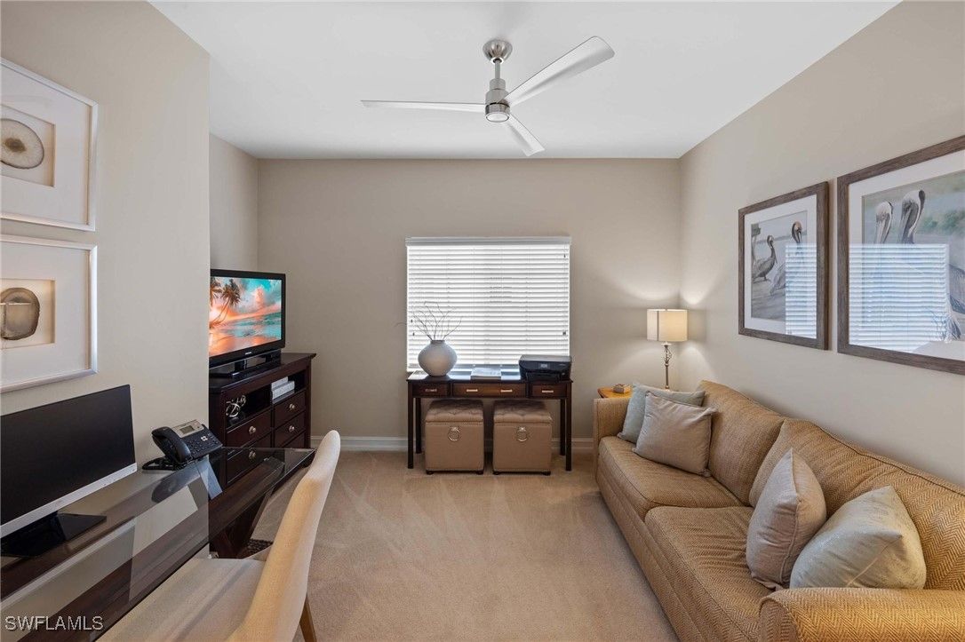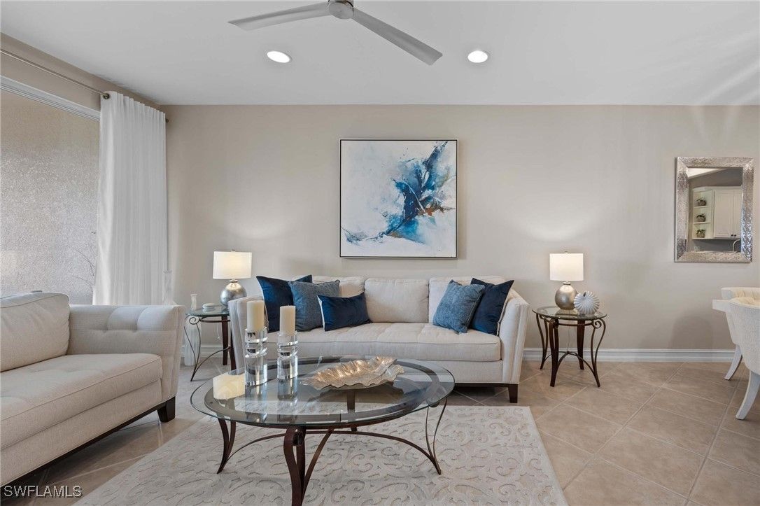 Rarely available and impeccably upgraded second floor, golf course view, end unit in beautiful Sunstone at Lely Resort. No waiting for The Players Club and Spa lifestyle – deeded access. Immaculate three bedrooms, two baths, complete with a new appliance package. The third bedroom is a large den/office space/ or bedroom. Numerous extras, furniture negotiable. Private community pool in addition to The Players Club and Spa membership with all the amenities which include; 3 pools, hot tub, gym with instructors, fitness area, full spa, bocce courts, award winning tennis and pickleball center, 2 restaurants, dog park, 2 public golf courses and the expanded tiki bar.
