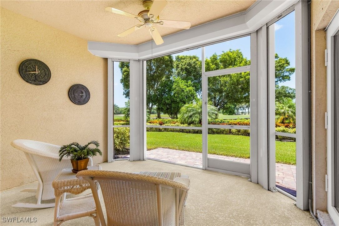 Fantastic opportunity in beautiful Lely Resort! This nicely appointed, fully furnished 2-bedroom plus den first-floor condo offers exceptional value and comes with a spacious one-car detached garage. Immaculate and move-in ready, the home features neutral colors throughout, along with thoughtful updates, including newer carpeting, newer appliances, storm shutters on the lanai, and a bright eat-in kitchen. From the private screened-in lanai, enjoy stunning golf course views, creating the perfect setting to relax and unwind. Located in Sunstone, residents enjoy the community’s largest pool with an expansive sun deck, perfect for soaking up the Florida sunshine. Membership to The Players Club & Spa is included, providing access to three resort-style pools, indoor and outdoor dining, tennis courts, a fitness center, spa services, and a full calendar of social activities. Golf enthusiasts also have access to three world-class courses within Lely Resort—two public and one private. All of this is just minutes from Naples’ renowned 5th Avenue, with its vibrant restaurants, boutique shopping, pristine beaches, and more. Simply bring your suitcase—this immaculate, first-floor condo with golf course views is ready for you to move right in!