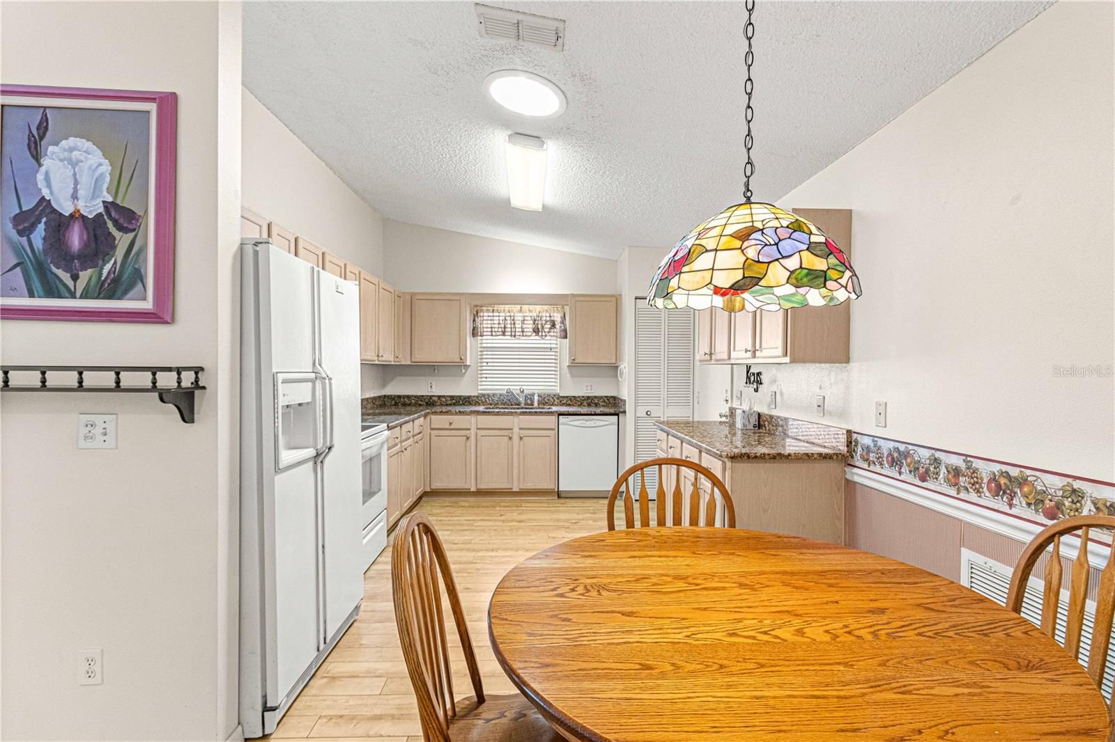 - Attic Ventilator, Cathedral Ceiling(s), Ceiling Fan(s), Eat-in Kitchen, Open Floorplan, Main Level Primary, Split Bedrooms, Walk-In Closet(s), Window Treatments