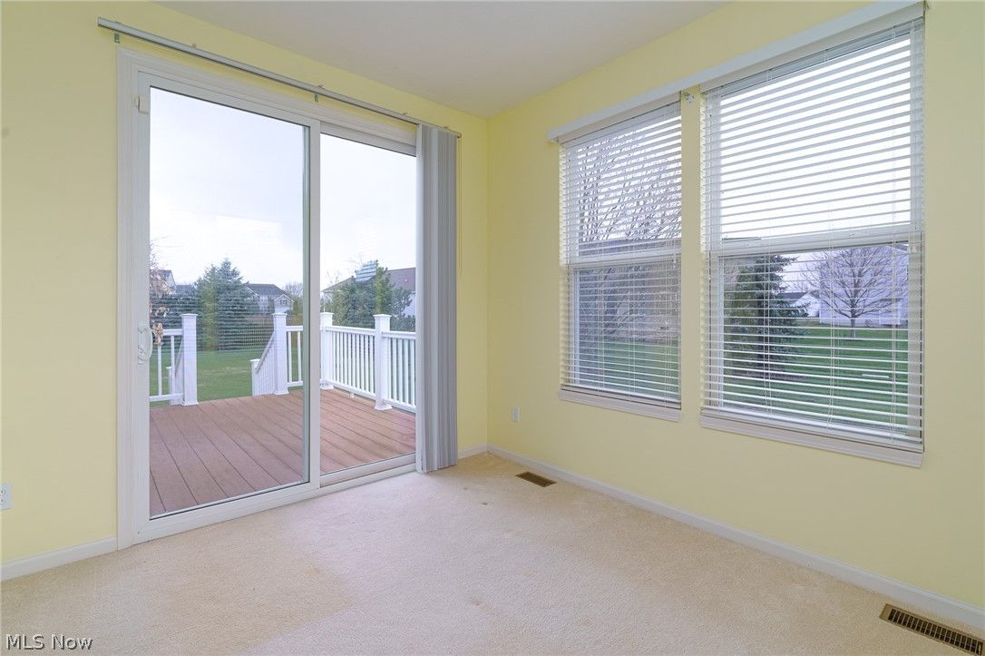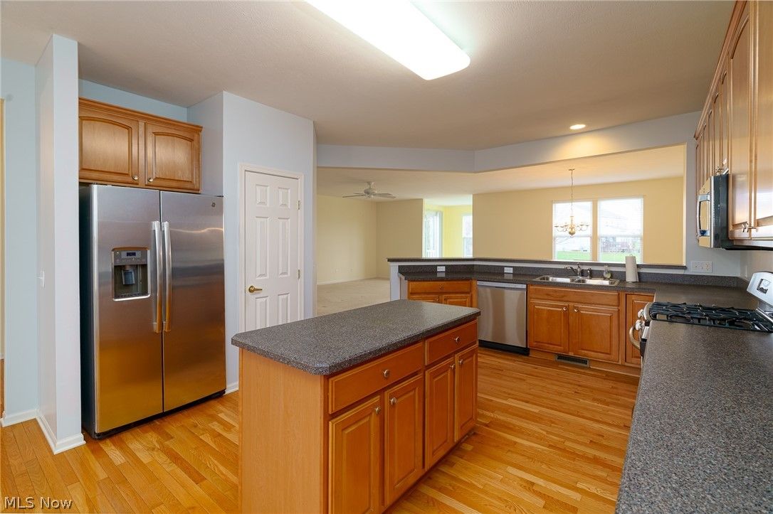 Welcome to North Ridgeville’s premier active adult Del Webb community! This highly sought-after Danbury model features a rare full basement and is ideally situated at the end of a quiet cul-de-sac, offering a private backyard with open green space and peaceful views. Inside, you’ll find an open-concept floor plan with an expansive eat-in kitchen featuring hardwood floors, abundant cabinetry, a center island, pantry, and newer stainless steel appliances. Just off the entryway, a versatile room with double doors provides the perfect space for a home office, study, or private retreat. The bright family room flows seamlessly into a sun-filled sunroom, ideal for relaxing and enjoying the scenic backyard. The spacious owner’s suite offers a soaking tub, separate shower, linen closet, and two walk-in closets for ample storage. The guest bedroom with full bath is part of a split-bedroom design offering ultimate privacy for your guest. The full basement is a rare find and ready to be finished for additional living space. Pride of ownership is evident with major updates, including a new roof (2025), furnace (2024), hot water tank (2018), and a freshly painted garage with a new Polyaspartic floor. Enjoy a vibrant lifestyle at the clubhouse, featuring card games, mahjong, dominoes, social events, Indoor and Outdoor Pools, Pickleball courts, a Fitness center, and a full calendar of activities. Experience maintenance-free living with resort-style amenities, all conveniently located near highways, shopping, and dining. Schedule your private showing today!