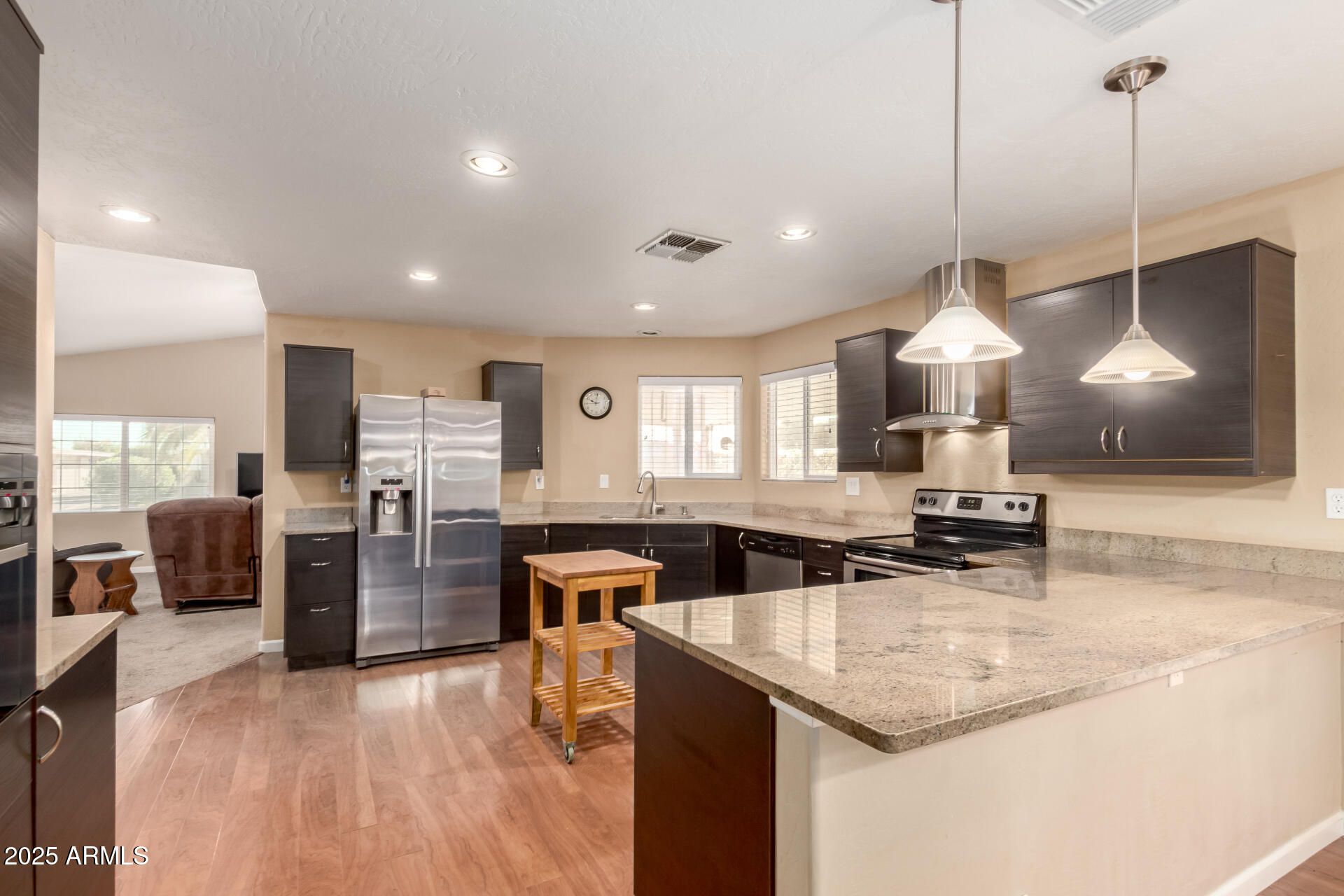 Beautifully remodeled home with spacious floor plan & modern finishes! Home features large rooms & vaulted ceilings in the living area. Newer dual pane windows & doors provide natural light throughout. Walls have been taped & textured. Newer flooring extends throughout the entire home. The updated Kitchen offers granite countertops, ample storage, pantry, S/S appliances & built-in microwave. The large primary suite includes an oversized walk-in closet & beautifully updated bathroom with walk-in tile shower, bench seat & dual vanities. Guest bath has been updated too! Spacious laundry room, Big storage room/workshop. Light & bright Arizona room. Enjoy outdoor living with a covered patios in front & paver patio in back, perfect for relaxing or entertaining! Don't miss out on this gem!