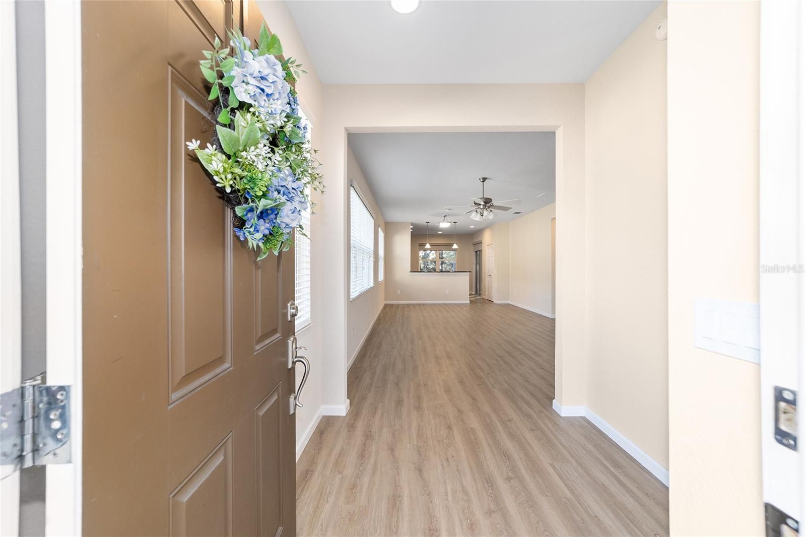 Welcome Home! This 2-bedroom, 2-bathroom gem with a flex room offers comfort, style, and thoughtful upgrades in the highly desirable Del Webb Stone Creek community. Step inside and fall in love with the open, airy feel, enhanced by luxury vinyl flooring throughout and a freshly painted interior. The kitchen is a chef’s dream, featuring granite countertops, stainless steel appliances, and plenty of space for cooking and entertaining. Thoughtful upgrades throughout the home include Nest smoke alarms for added safety, a water softener installed in 2023, and an Ecobee smart thermostat paired with a 2022 HVAC system, ensuring year-round comfort and efficiency. The solar panels and solar attic fan contribute to energy savings, while the floored attic provides extra storage space. For even more convenience, the home features power shades, upgraded medicine cabinets, and brand-new toilets in both bathrooms. The laundry room offers additional cabinet storage, making organization a breeze. The auto screen garage door allows for ventilation and privacy, adding to the home’s many functional enhancements. Step outside to your screened-in lanai with a newly roofed birdcage and pull-down shades, the perfect place to relax and enjoy Florida’s beautiful weather. Located in a vibrant 55+ community, this home offers access to resort-style amenities, including golf, pools, a fitness center, and endless social activities. Move-in ready and waiting for you—schedule your private tour today!