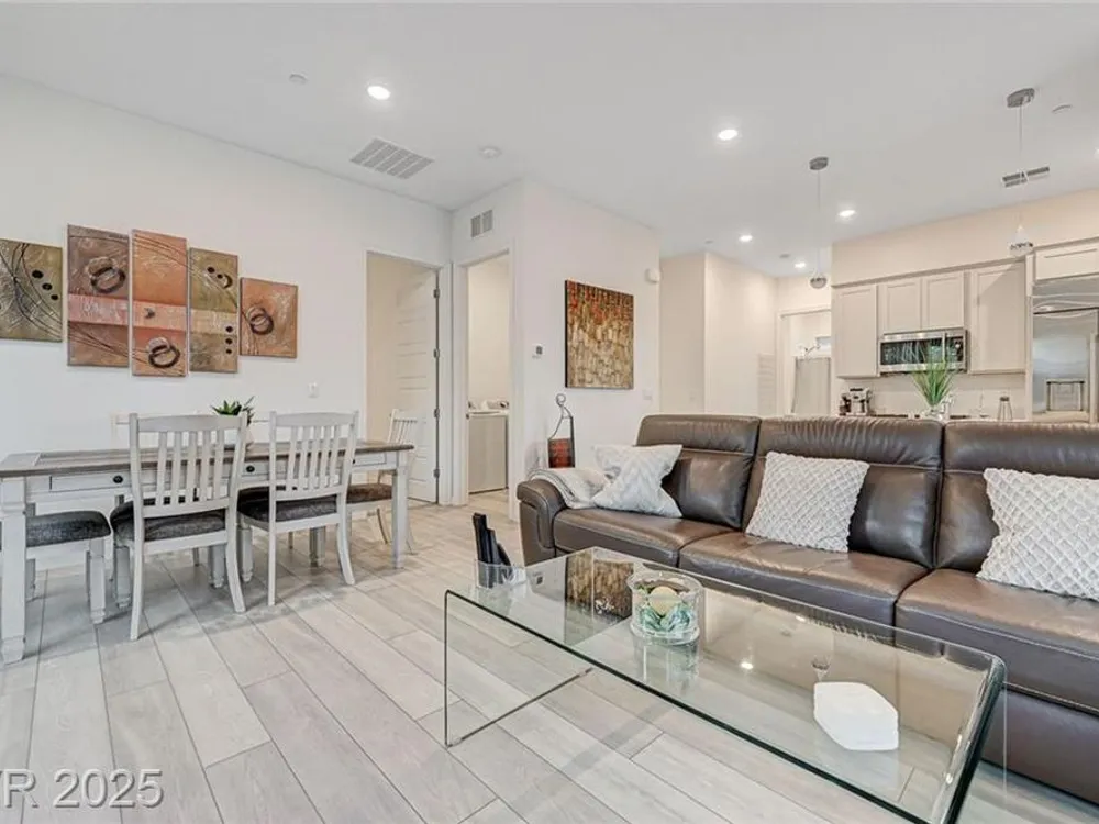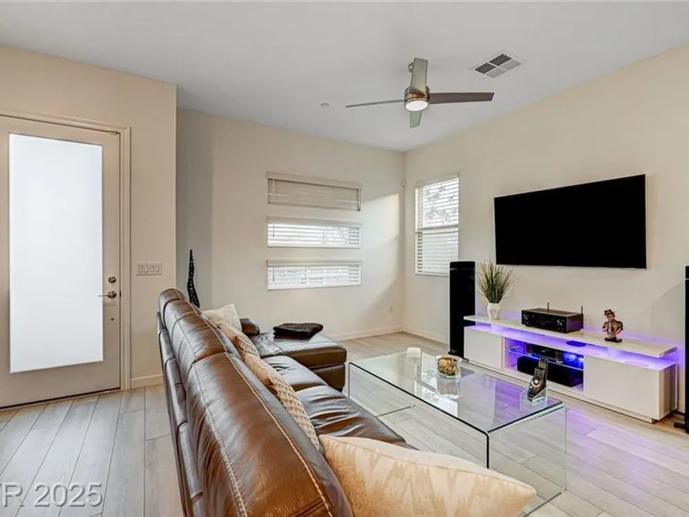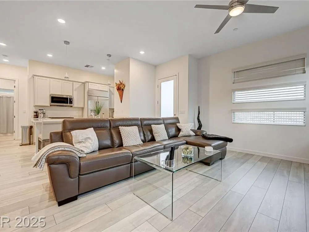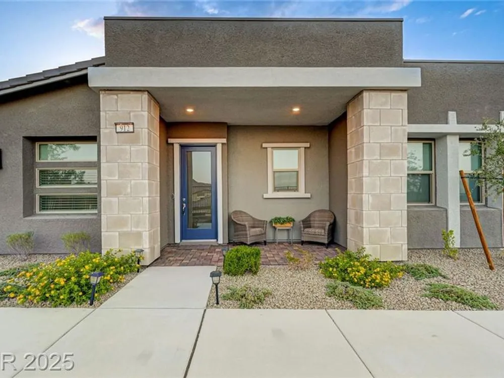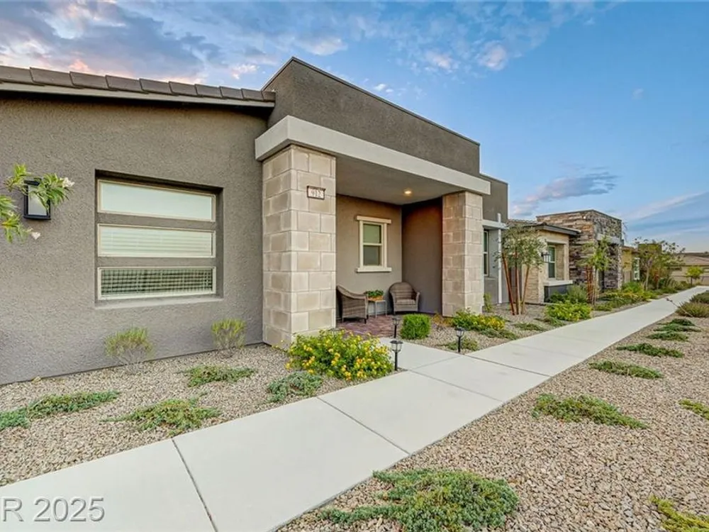 BEAUTIFULLY UPSCALE 55+ ACTIVE COMMUNITY AT HERITAGE AT STONEBRIDGE IN THE HEART OF THE SUMMERLIN IN A GUARD-GATED NEIGHBORHOOD. NEARLY 1300 SQ FT WITH 2 BEDROOMS AND 2 BATHS. ENJOY AN OPEN FLOOR PLAN WITH WOOD-LAMINATE FLOORING AND CARPET IN THE BEDROOMS, A LIVING ROOM WITH CEILING FAN AND RECESSED LIGHTING, AND A SUNNY KITCHEN FEATURING GRANITE COUNTERTOPS, CUSTOM CABINETRY, SLEEK UPGRADED STAINLESS STEEL APPLIANCES, AND A DOUBLE SINK.THE PRIMARY SUITE INCLUDES A LARGE WALK-IN CLOSET AND A BATHROOM WITH DOUBLE SINKS, A GLASS-ENCLOSED SHOWER, AND TILE FLOORING. THE SEPARATE LAUNDRY AREA OFFERS BUILT-IN CABINETS FOR ADDED STORAGE*LOW-MAINTENANCE LANDSCAPING, GARAGE WITH AN ELECTRIC CAR CHARGING STATION. ENJOY BREATHTAKING MOUNTAIN VIEWS.CONVENIENTLY LOCATED NEAR DOWNTOWN SUMMERLIN, PARKS, TRAILS, SCHOOLS, AND FREEWAY ACCESS—THIS HOME OFFERS THE PERFECT BLEND OF STYLE, COMFORT, AND LOCATION. A MUST-SEE!