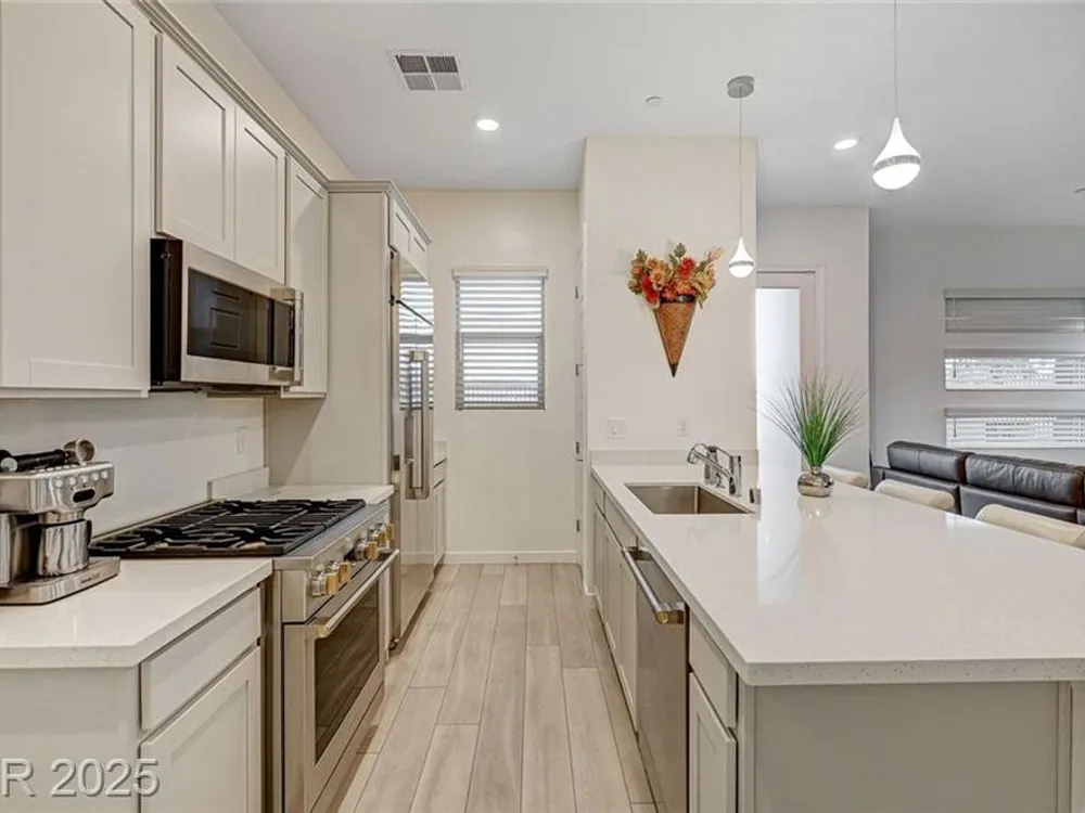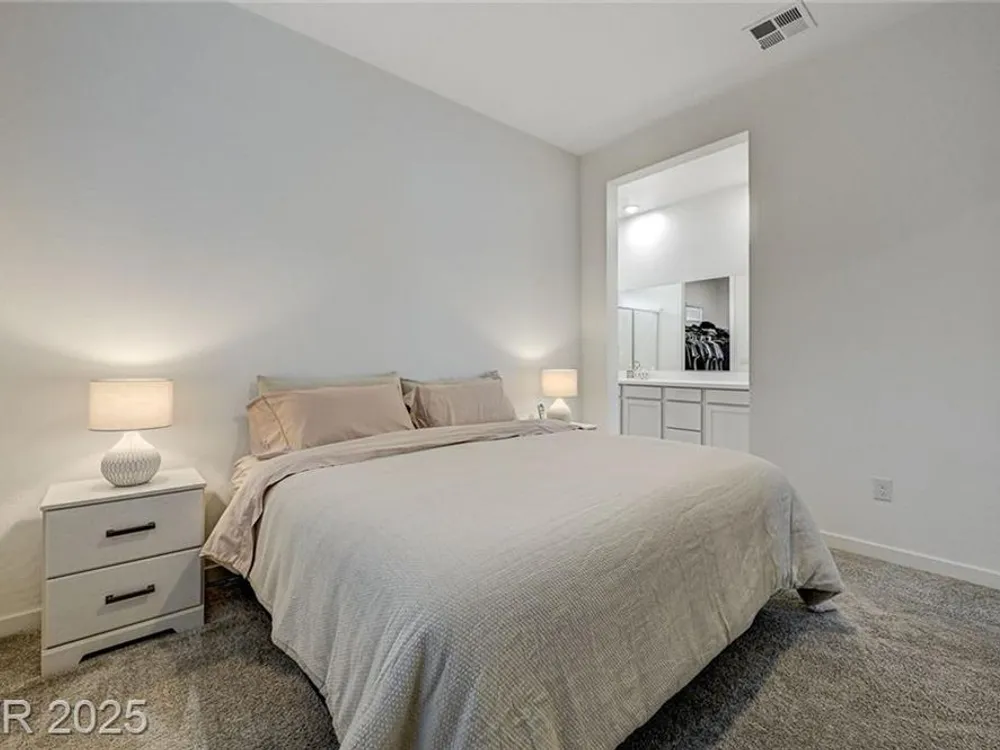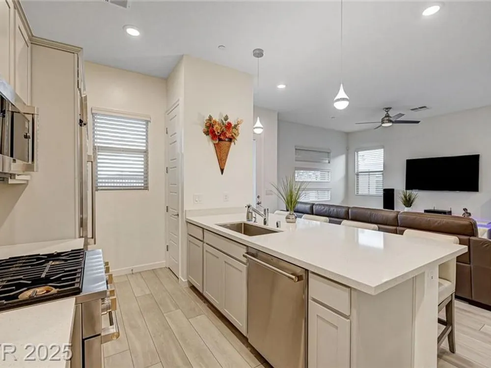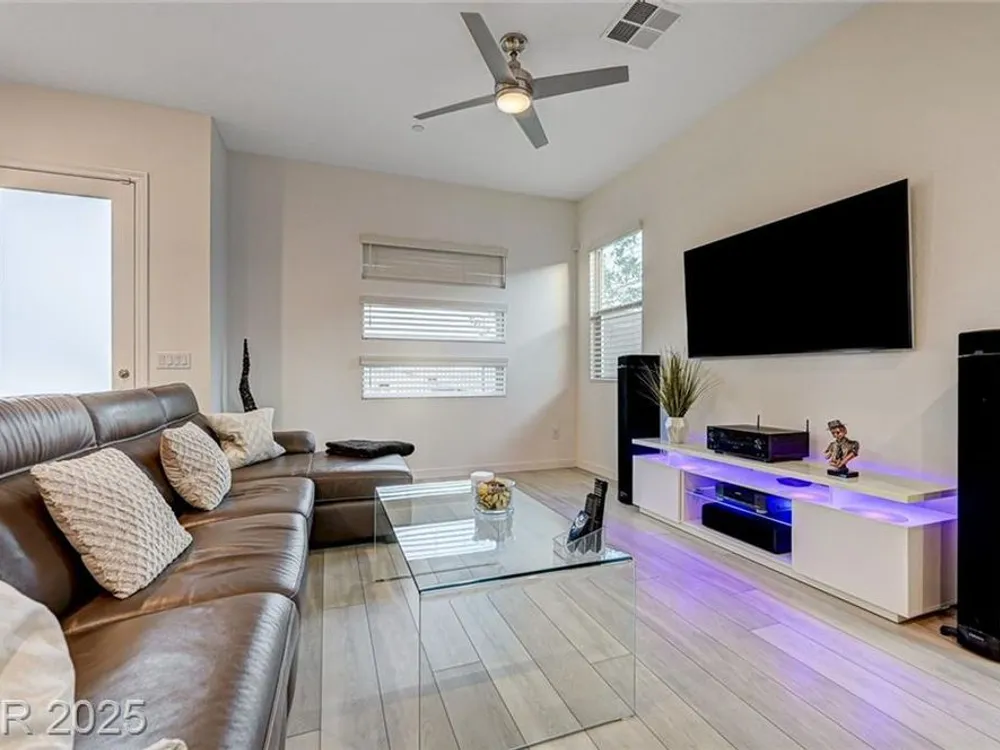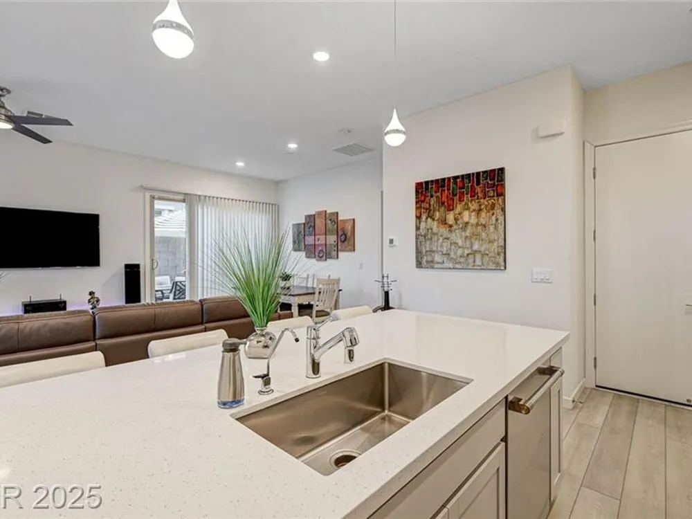 BEAUTIFULLY UPSCALE 55+ ACTIVE COMMUNITY AT HERITAGE AT STONEBRIDGE IN THE HEART OF THE SUMMERLIN IN A GUARD-GATED NEIGHBORHOOD. NEARLY 1300 SQ FT WITH 2 BEDROOMS AND 2 BATHS. ENJOY AN OPEN FLOOR PLAN WITH WOOD-LAMINATE FLOORING AND CARPET IN THE BEDROOMS, A LIVING ROOM WITH CEILING FAN AND RECESSED LIGHTING, AND A SUNNY KITCHEN FEATURING GRANITE COUNTERTOPS, CUSTOM CABINETRY, SLEEK UPGRADED STAINLESS STEEL APPLIANCES, AND A DOUBLE SINK.THE PRIMARY SUITE INCLUDES A LARGE WALK-IN CLOSET AND A BATHROOM WITH DOUBLE SINKS, A GLASS-ENCLOSED SHOWER, AND TILE FLOORING. THE SEPARATE LAUNDRY AREA OFFERS BUILT-IN CABINETS FOR ADDED STORAGE*LOW-MAINTENANCE LANDSCAPING, GARAGE WITH AN ELECTRIC CAR CHARGING STATION. ENJOY BREATHTAKING MOUNTAIN VIEWS.CONVENIENTLY LOCATED NEAR DOWNTOWN SUMMERLIN, PARKS, TRAILS, SCHOOLS, AND FREEWAY ACCESS—THIS HOME OFFERS THE PERFECT BLEND OF STYLE, COMFORT, AND LOCATION. A MUST-SEE!