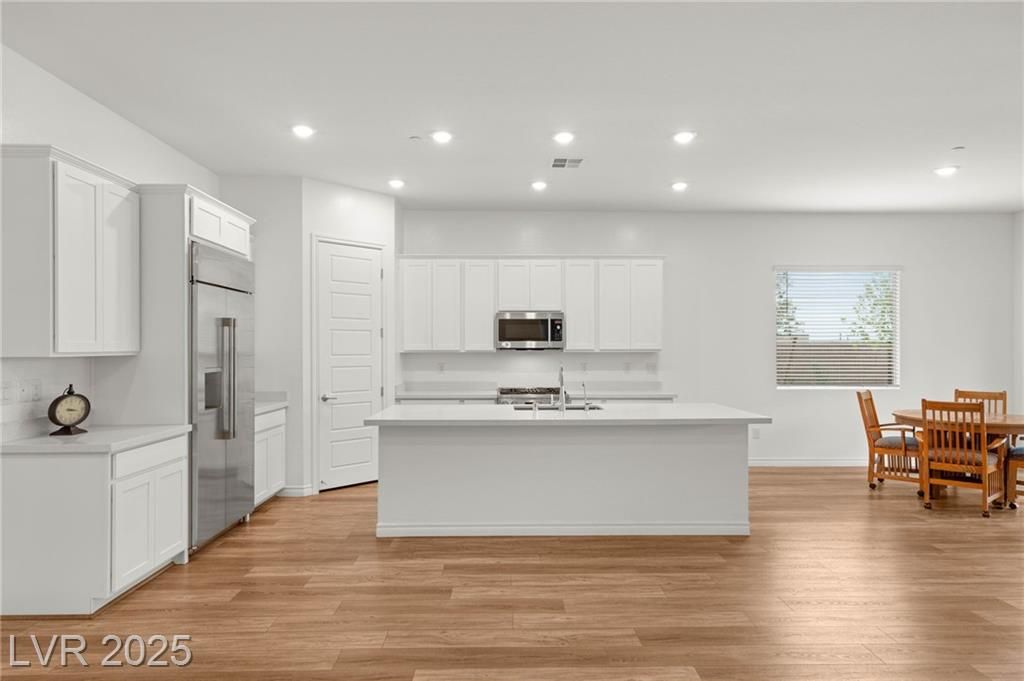 Rare opportunity to own in the incredible Guard Gated community of Heritage in Summerlin West! This corner homesite offers an abundance of privacy with stunning city sightlines! Upon entry you will love the massive open concept living w/10 ft. ceilings, low maintenance luxury plank flooring, kitchen w/slab quartz island, crisp white cabinetry, built in refrigerator and single basin sink. Primary bedroom has dual vanities, shower w/bench seat and direct access to the laundry room for convenience and overflow storage. Relax under your oversized covered loggia with mature trees and beautiful mountain/city scenery. State of the art clubhouse offers pool, spa, workout facility, event lawn, firepits and more. You are minutes from Red Rock National Park, Downtown Summerlin, Whole Foods, Shopping and 5-Diamond Resorts!