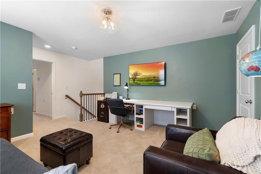 Better Than New in The Villas at Presley Lake – Move-In Ready and Ready to be seen! Sometimes words can’t capture the comfort and quality this stunning better-than-new home offers—come see it in person at the sought-after, gated Villas at Presley Lake in Woodstock before it’s gone. Enjoy main-level living with two bedrooms and two full baths on the first floor, a spacious family room with built-ins and gas fireplace, and a designer kitchen featuring solid wood soft-close cabinetry, quartz countertops, large island, gas range, Whirlpool appliances, and a walk-in pantry. A cozy sitting room and screened porch extend your everyday living space, perfect for entertaining or relaxing year-round. The luxurious primary suite offers true comfort with heated tile floors and an oversized zero-entry shower in the primary bath with a custom Container Store closet system in the primary walk in closet, that connects directly to the laundry room—complete with sink, newly updated tile flooring, and stacked washer and dryer that remain. Upstairs, a versatile loft or office with built-in desk, plus an additional bedroom and full bath, create the perfect setup for guests or remote work. Additional highlights include epoxy garage flooring, a Sonos speaker system, whole-house surge protector, expandable smart home automation system, sprinkler and alarm systems, keyless entry, motorized blinds, remote-control ceiling fans, USB outlets, fenced yard, and professional landscaping maintained by the HOA. Neighborhood amenities include a community pool, small lake, and top-rated schools, all just minutes from shopping, dining, and major conveniences. Homes in this gated neighborhood move quickly—schedule your private showing today before this one is gone!