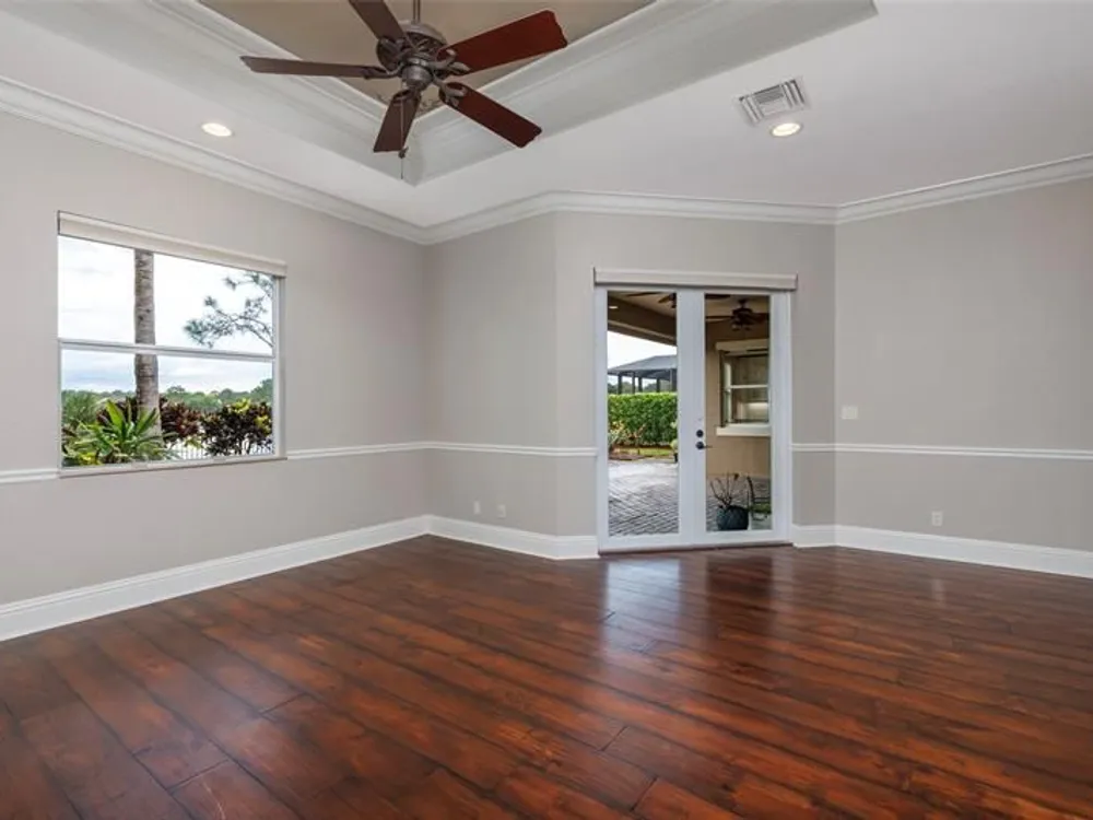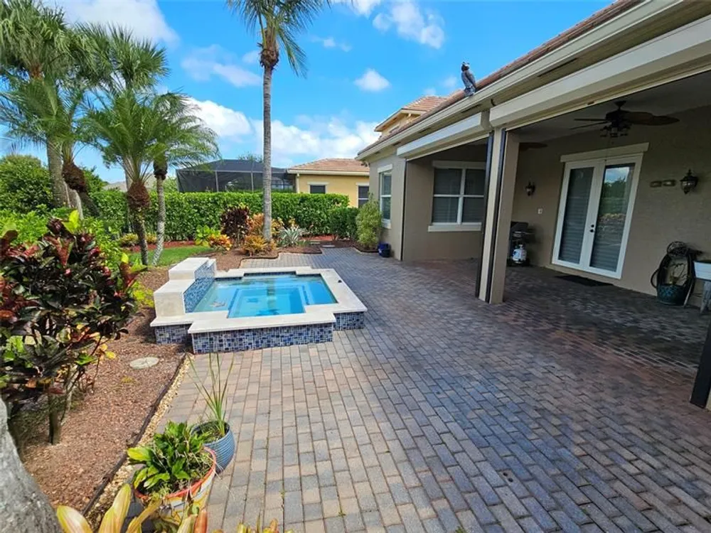 Lovely 3 bedroom 3 bath with Office/Flex Room, ranch home in the prestigious Copperleaf gated community, positioned to capture the most stunning lake sunsets. Complete with in-ground salt water jacuzzi with waterfall, heating system and a newly shuttered porch for peace of mind during storms and storage for outdoor furniture. Impact windows & doors, whole house water system, RO in kitchen renovation 2024 w/ Quartz countertops. New entrance doors, new paint, private office, crown molding & custom closets. Home has Security system & cameras. This is a great home in a great community with newly remodeled club house, playground, tennis and pickelball courts, basketball courts and heated community pool. Contact the listing agent and arrange for a private tour of this exceptional home today.