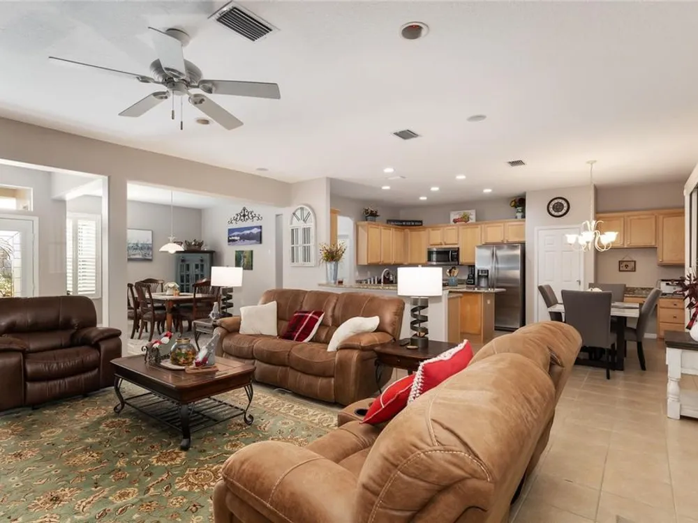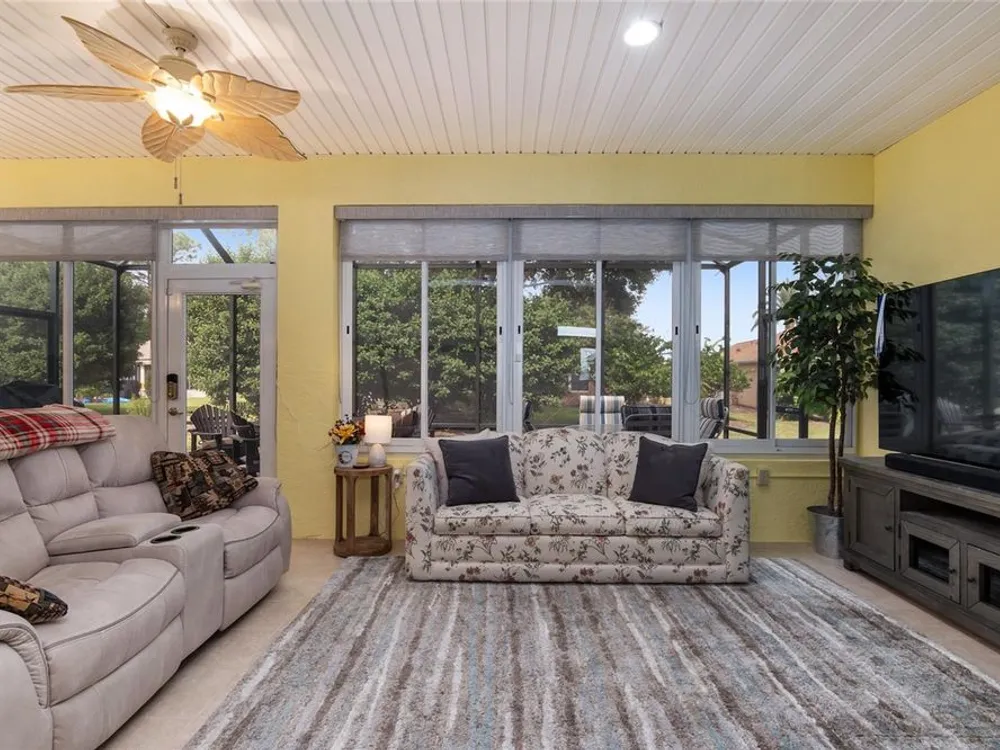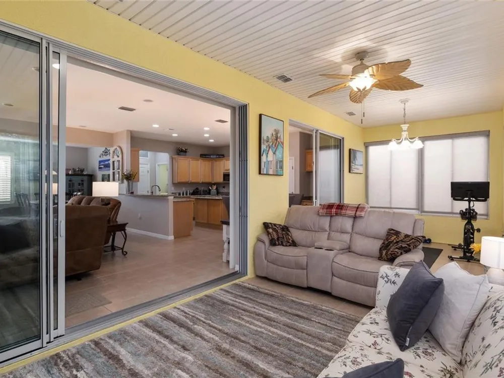 AN ABSOLUTE MUST SEE!!! IMPECCABLE HOME (FAIRMOUNT MODEL) IN DEL WEBB SPRUCE CREEK GOLF AND COUNTRY CLUB. 2 BEDROOMS, 2 BATHS, GOLF CART GARAGE, 2022 ROOF, 2022 NEW PHOTOVOLTAIC SOLAR PANELS (Photovoltaic panels are installed for the conversion of thermal energy into electricity, while solar panels convert solar radiation into heat), GRANITE COUNTERTOPS THROUGHOUT, PLANTATION SHUTTERS, NEWER STAINLESS APPLIANCES, NEWLY PAINTED INSIDE AND OUT. ENCLOSED PATIO WITH ABSOLOUTELY AMAZING - NEW SCREEN ROOM WITH PRIVACY THAT IS 30' X 12'. HOME HAS SO MANY UPDATES INCLUDING SOLATUBES AND SO MUCH MORE. PRIVATE GATED COMMUNITY WITH 24 HOUR SECURITY, 36 HOLE CHAMPIONSHIP GOLF COURSES, 3 POOLS (1 INDOOR), GYM, SOFTBALL, PICKLEBALL, TENNIS AND 100'S OF CLUBS. VERY ACTIVE COMMUNITY.