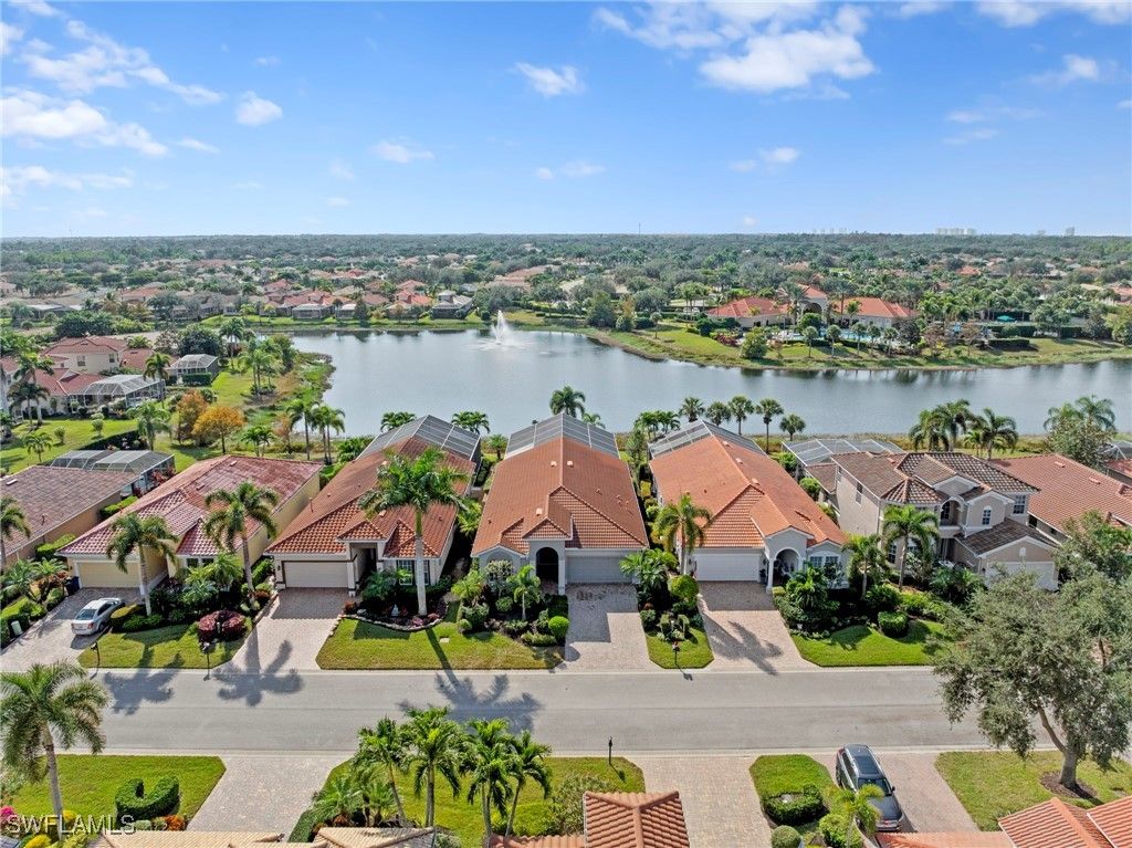 Experience refined Southwest Florida living at 9127 Astonia Way, a beautifully maintained Toll Brothers San Rio model, offering one of the most impressive lake views in The Reserve at Estero. Positioned on a premium homesite with southern rear exposure, the home captures expansive water views and exceptional natural light throughout the day. Notable upgrades include:impact-resistant windows, a new roof (2021), new A/C (2022), new pool pump (2019), new gas pool heater (2026), and new water heater (2019), offering comfort and peace of mind. Furnishings are negotiable for a potential turnkey purchase. The open-concept floor plan features high ceilings, vaulted living spaces, and seamless indoor-outdoor flow. Warm wood flooring runs throughout, creating a beautiful contrast to the light cabinetry and neutral paint palette. A flex room with French doors offers versatility as a home office or bedroom, while formal dining and additional living areas provide comfortable spaces for everyday living and entertaining. The island kitchen is well-appointed with upgraded cabinetry, granite countertops, tile backsplash, stainless steel appliances, pendant lighting, and a breakfast nook overlooking the lake. The primary suite offers direct lanai access and a well-designed bath with dual walk-in closets, dual vanities, a private water closet, and a fully tiled walk-in shower. The expanded covered lanai—one of the largest outdoor living spaces in The Reserve at Estero—is ideal for entertaining, dining outdoors, or enjoying the peaceful lakefront setting. The home also features natural gas, supporting efficient appliances and pool heating. Ideally located west of I-75 in Flood Zone X, The Reserve at Estero offers guard-gated security, a clubhouse, fitness center, resort-style pool and spa, tennis, pickleball, basketball courts, and an active social calendar—just minutes from Coconut Point, RSW Airport, and Gulf beaches.