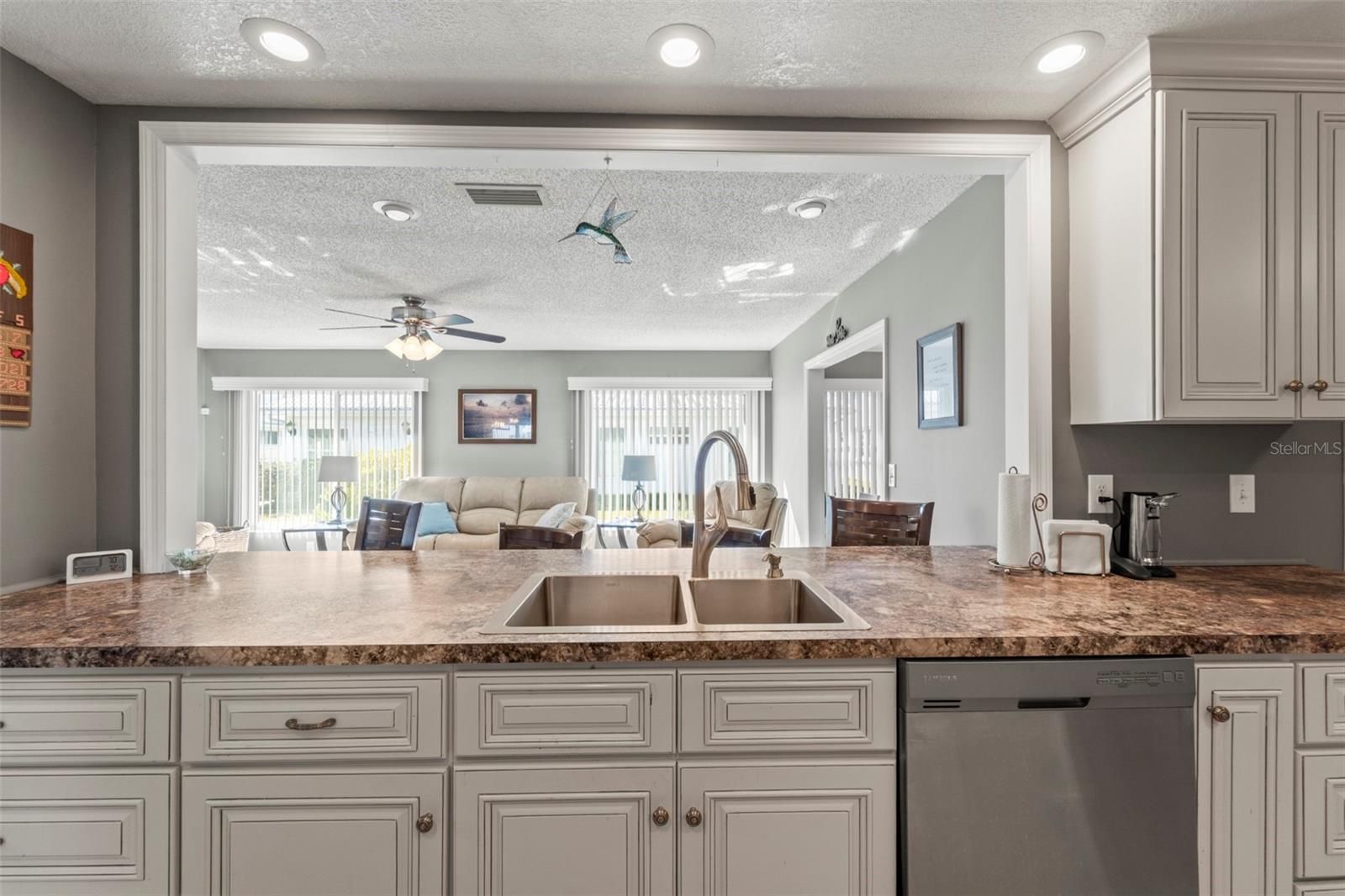 NEW PRICE: Beautifully updated 2BR/2BA/2CG Gormay model in the highly desirable 55+ Mainlands community. This spacious 1,776 sq ft home features an open floor plan with a remodeled chef’s kitchen offering soft-close cabinetry, new stainless steel double sink, recessed lighting, two oversized pantries, and a roll-out island with additional storage. The enlarged pass-through and counter bar create the perfect space for entertaining. Both bathrooms have been tastefully renovated with updated vanities, tile flooring, lighting, and fixtures. The primary suite includes a walk-in shower and large walk-in closet. Additional highlights include updated windows with hurricane protection, new window treatments, laminate flooring in main areas, and a versatile bonus room ideal for an office, craft room, or formal dining space. Recent Updates and Improvements Roof replaced (2004), A/C replaced (2018) – serviced annually (last service 10/2025), Hurricane-impact front windows, Hurricane-rated front & side doors, Reinforced/insulated garage door, Hurricane-rated fabric window covers (insurance discount), Garage side door hurricane reinforced, Termite tenting (12/2022) – annual inspection 11/2025, transferable warranty, Water softener (4/2025), Electric panel wired with generator lockout & outlet (2025), Washer & dryer (2022), New stove & microwave (2023), Filtered shower heads. The 2-car garage offers abundant storage, utility sink, and washer/dryer. Monthly maintenance of $415 includes lawn care, irrigation, exterior maintenance, water, sewer, trash, cable, wifi and internet. Located in a golf community with clubhouse, heated pool, shuffleboard, sidewalks, and pet-friendly policies (2 pets, no weight limit). Convenient to beaches, airports, shopping, and dining.
