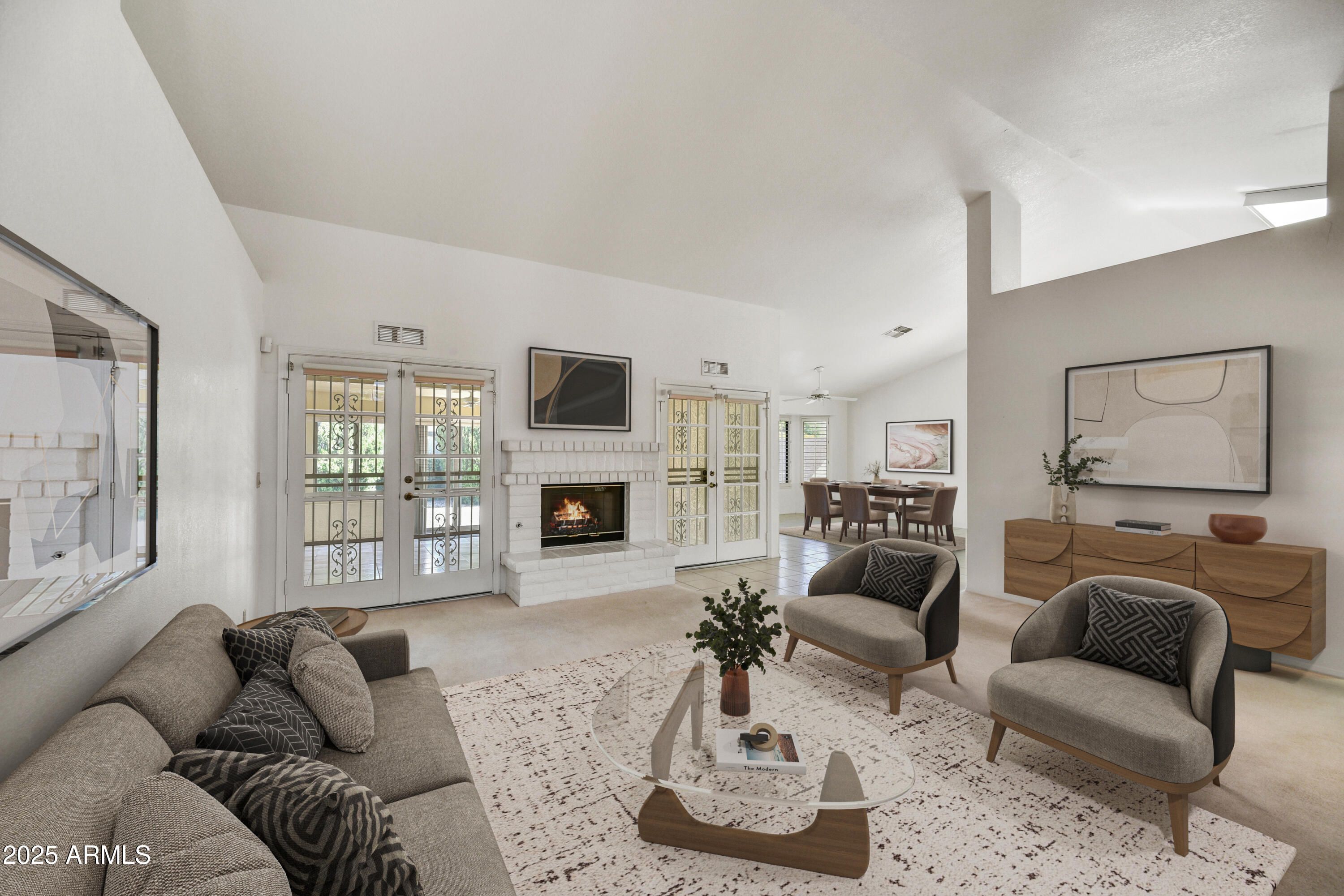 UPDATED WHERE IT MATTERS MOST! This Camelback model with vaulted ceilings and enclosed patio offers peace of mind with major systems updated: ROOF (2017) HVAC (2022), water heater and water softener (2023). It has an EXTENDED GARAGE with ROOM FOR 2 CARS PLUS your GOLF CART! The enclosed patio is heated and cooled and adds 240 square feet of extra living space! Shutters on all windows. Lovingly maintained by the same owners for 30 years, this home is a true gem in one of the Valley's most desirable active adult golf communities!